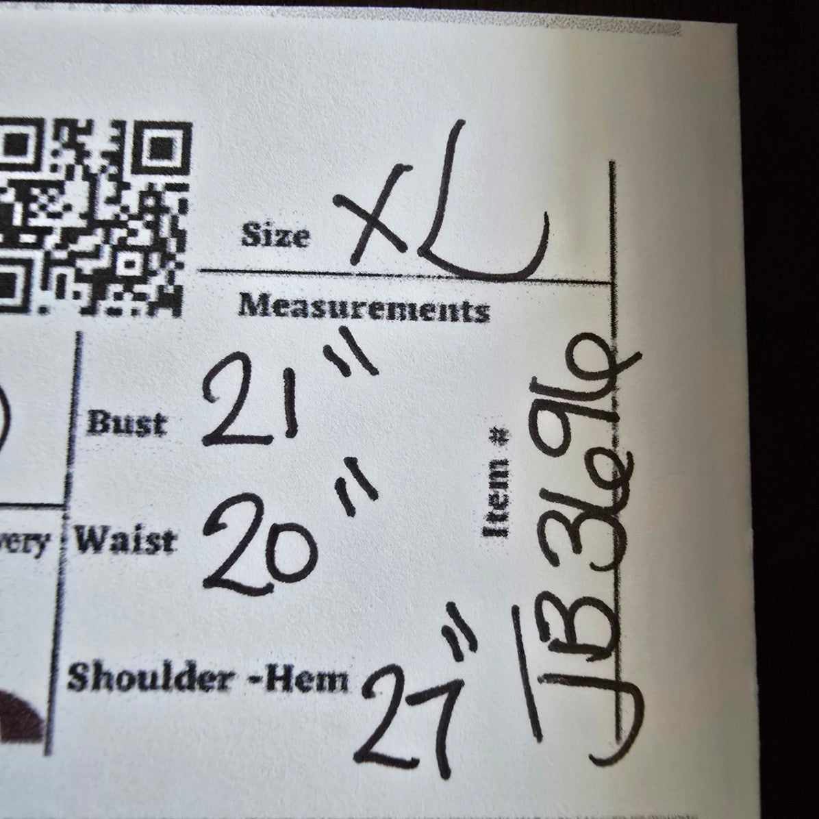 See last photos for fabric content and approximate FLAT measurements, compare our measurements to something in your closet to see if it will fit.