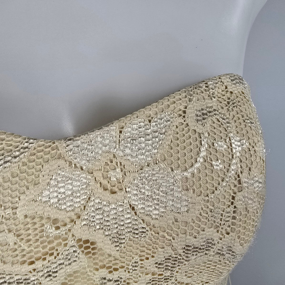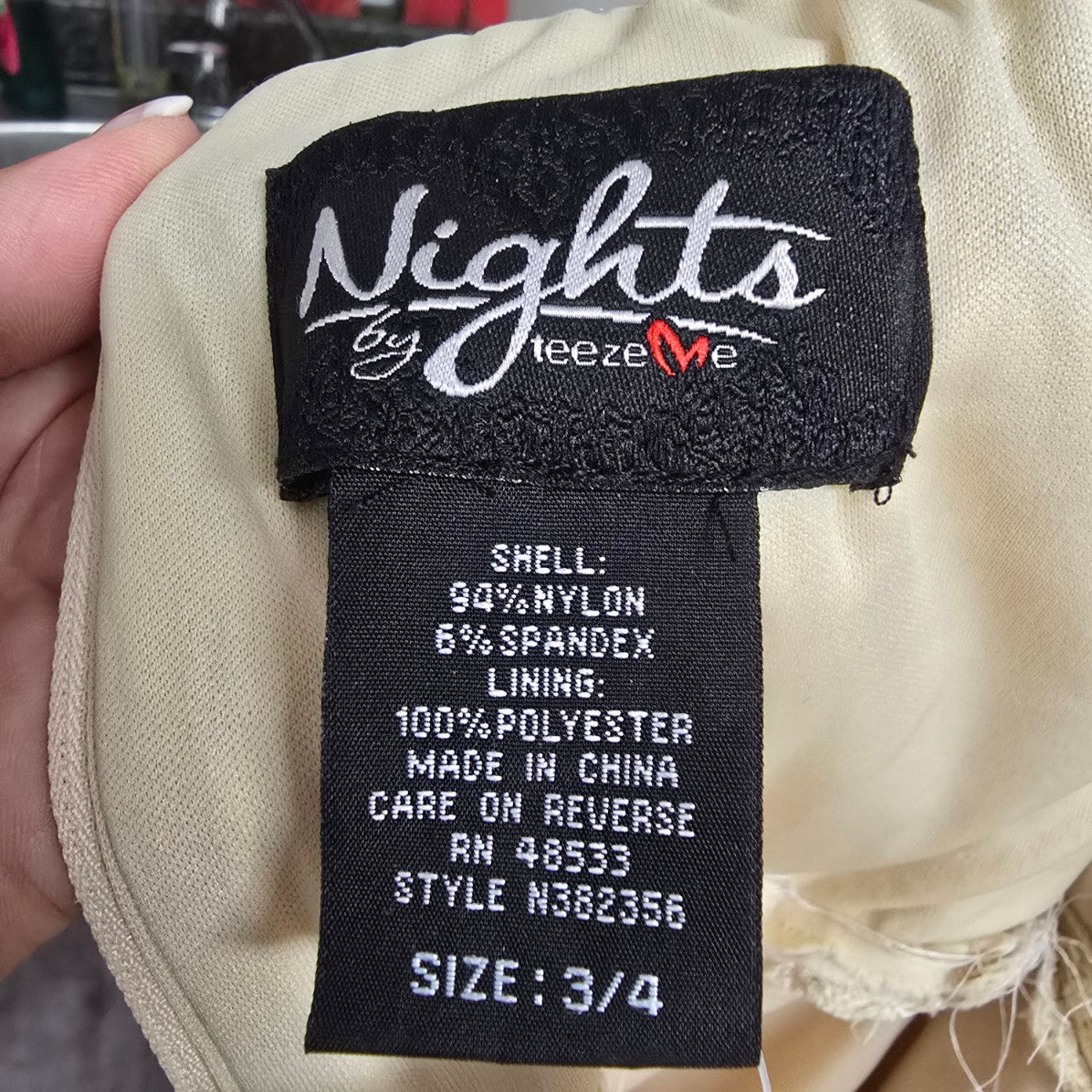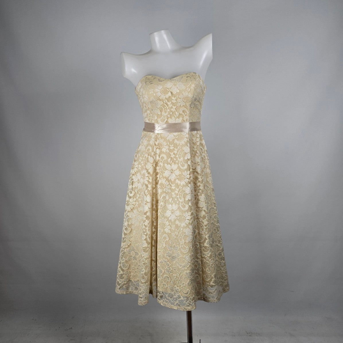 Nights By Teeze Me Cream Lace Satin Belted Fit & Flare Event Dress Size 3/4