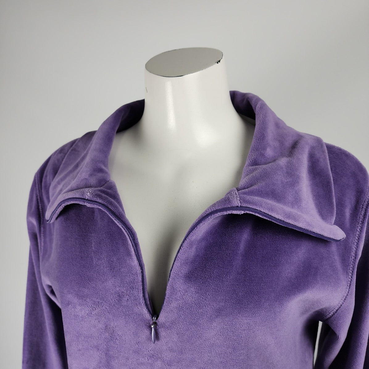 Northern Reflections Purple Velour 1/4 Zip Pullover Top Size S