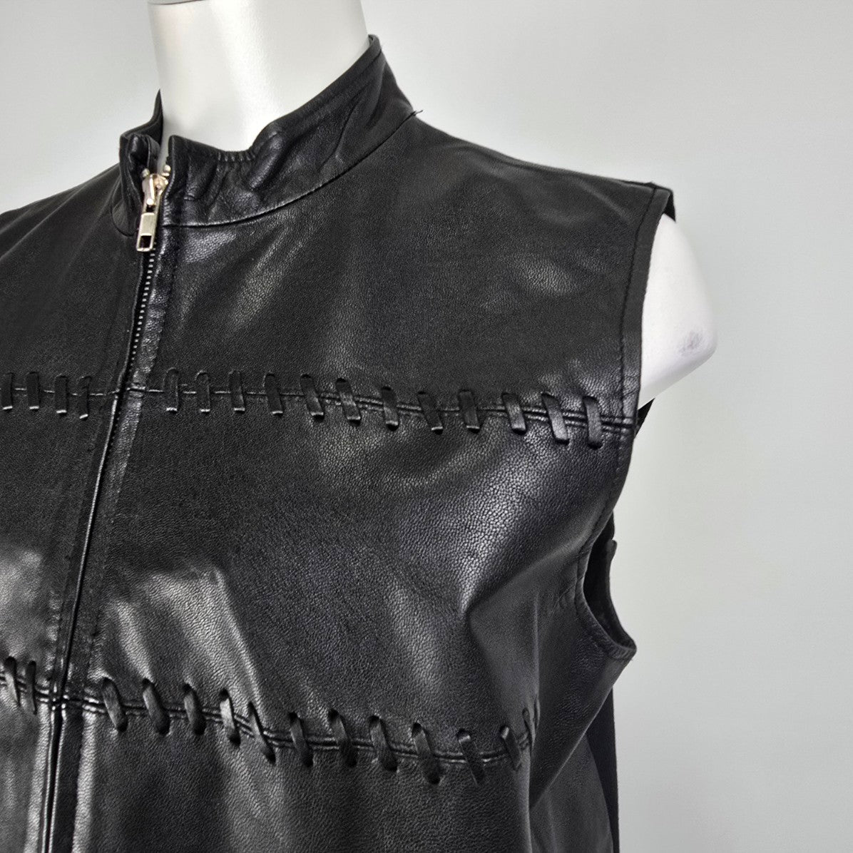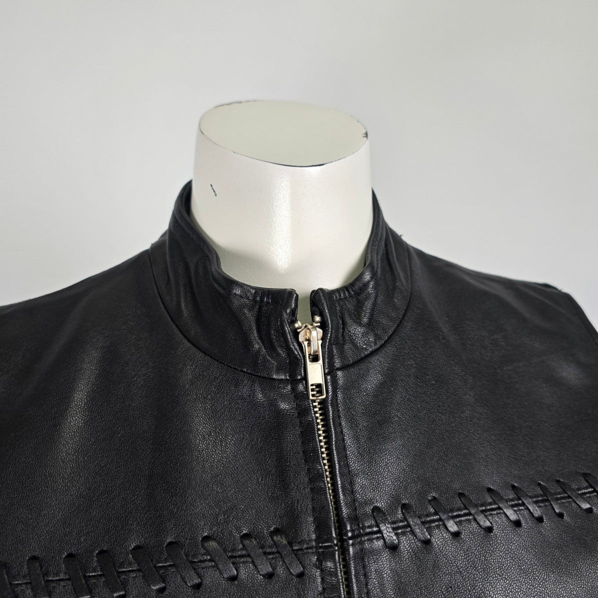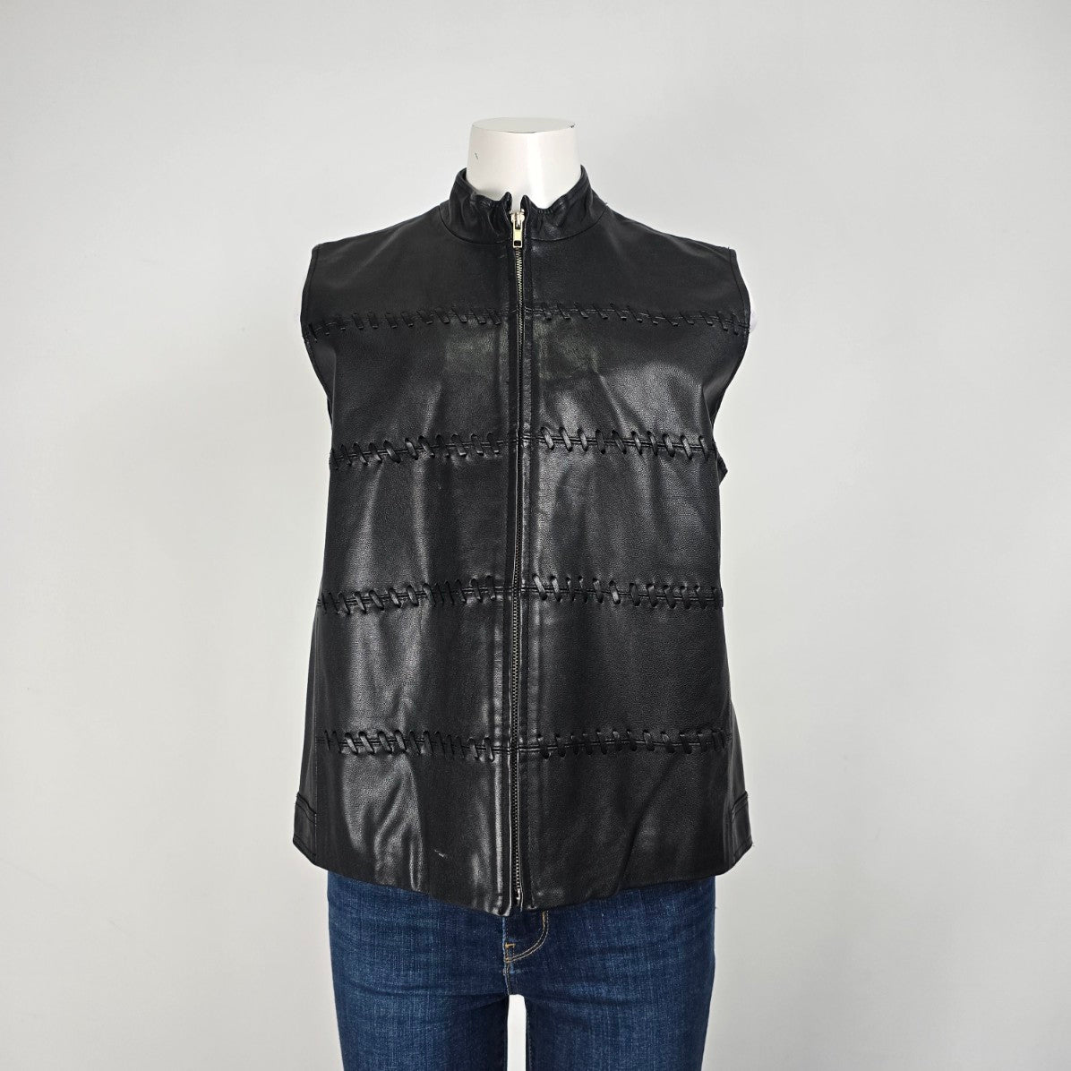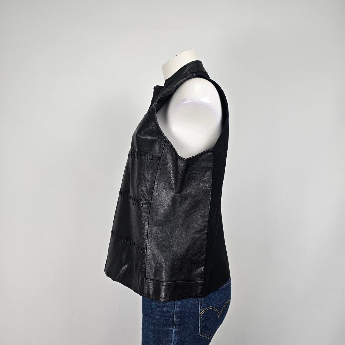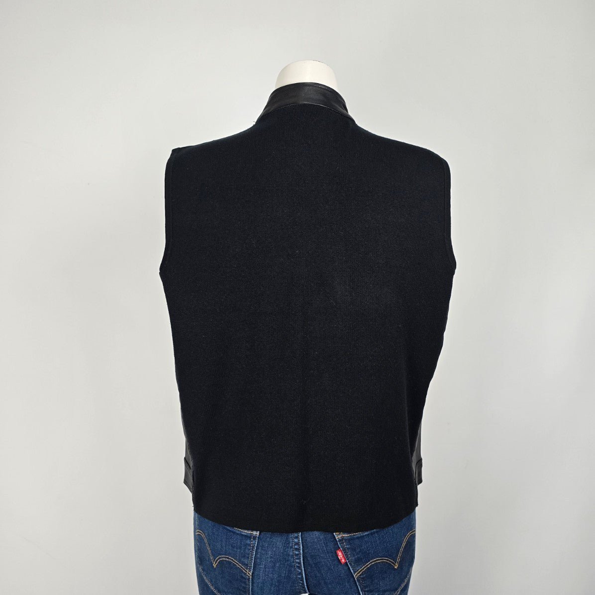 Nygard Black Leather & Silk Knit Zip Up Vest Size L