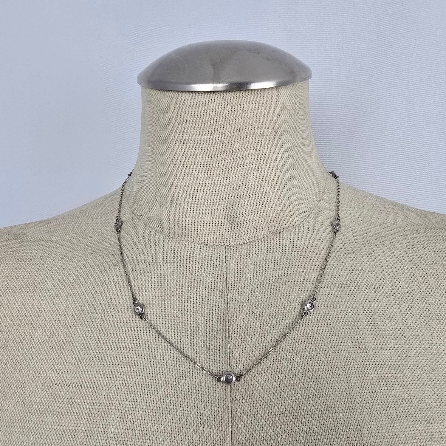 PAJ 925 Sterling Silver Bezel Set Crystal Chain Necklace