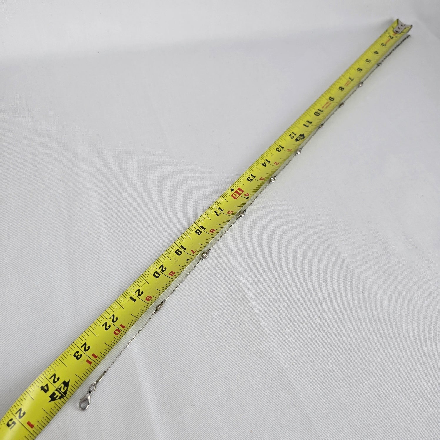 See last photo for length or size measurements, compare our measurements to something in your jewelry box to know if this piece will work for you.