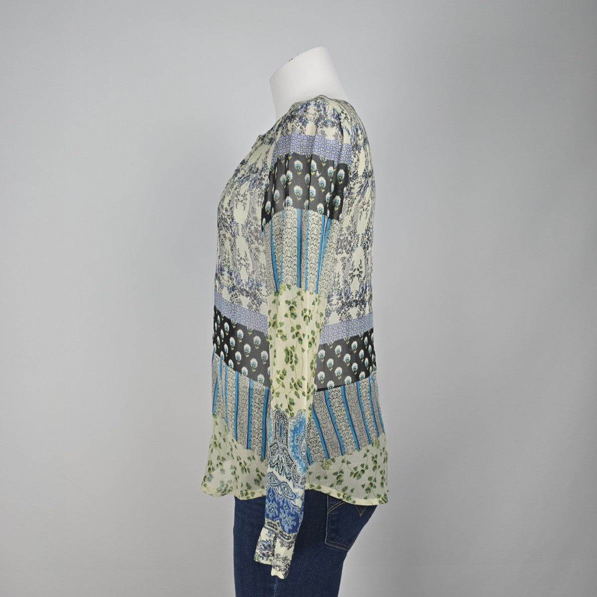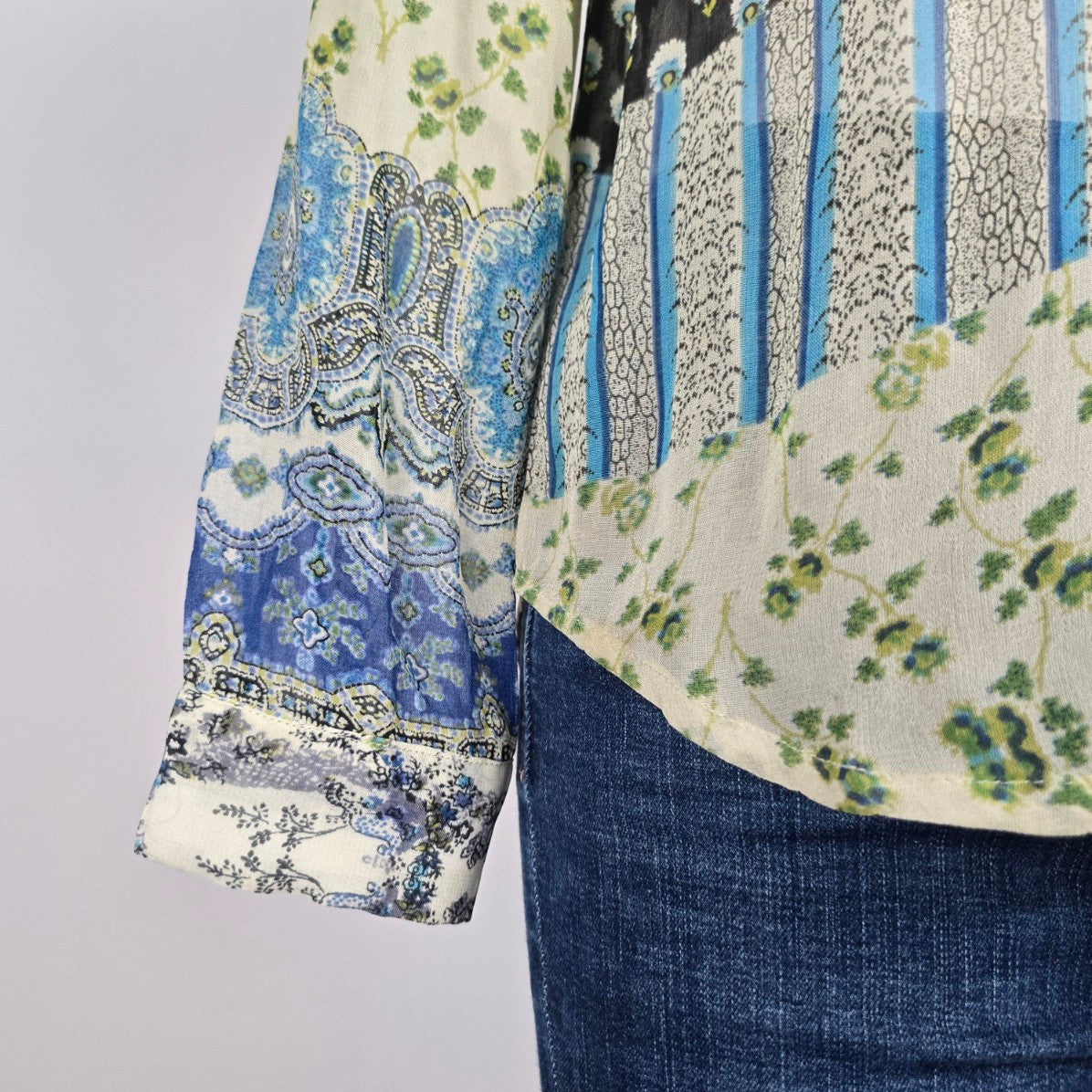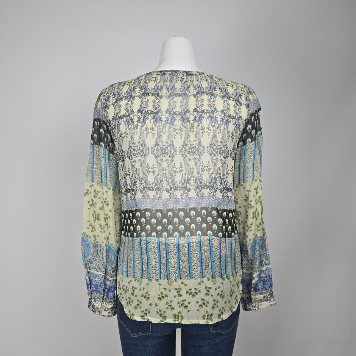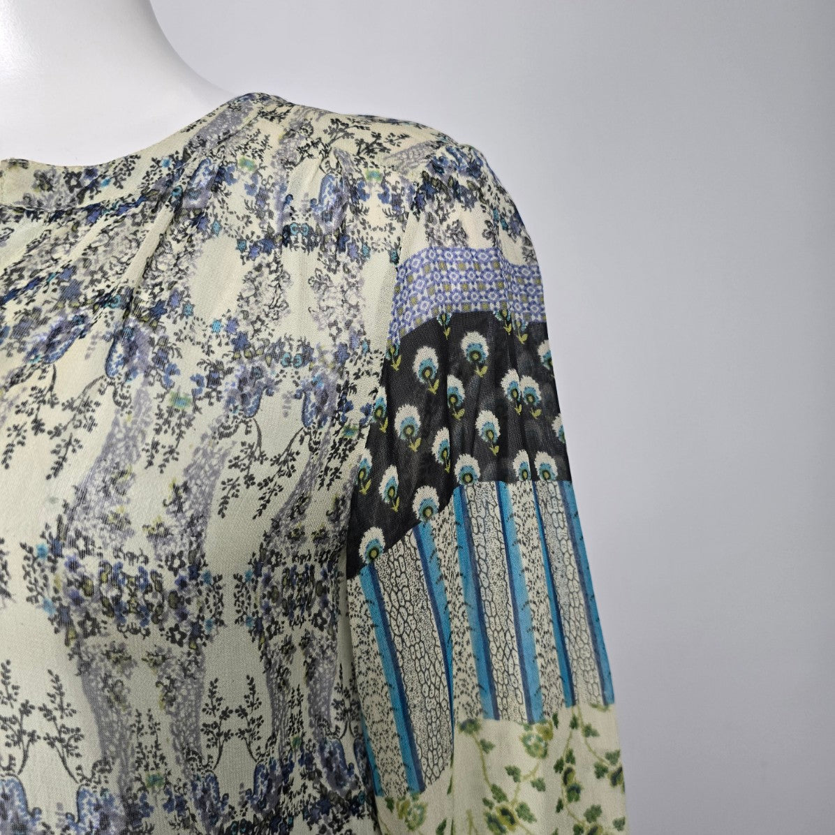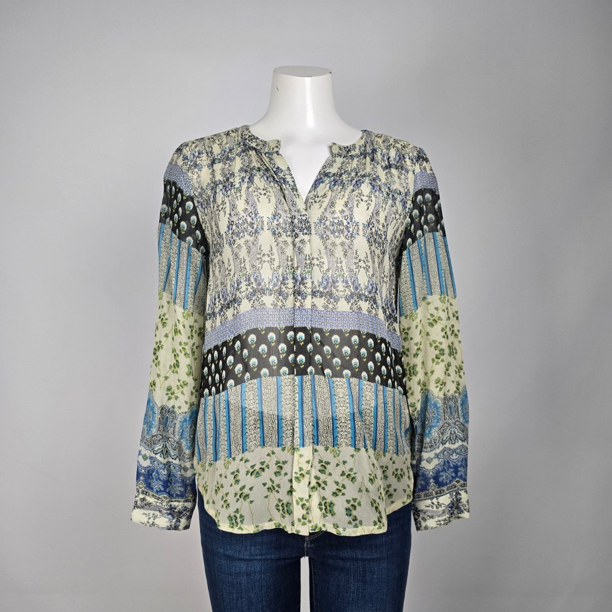 Patrons of Peace Blue Floral Blouse Top Size S