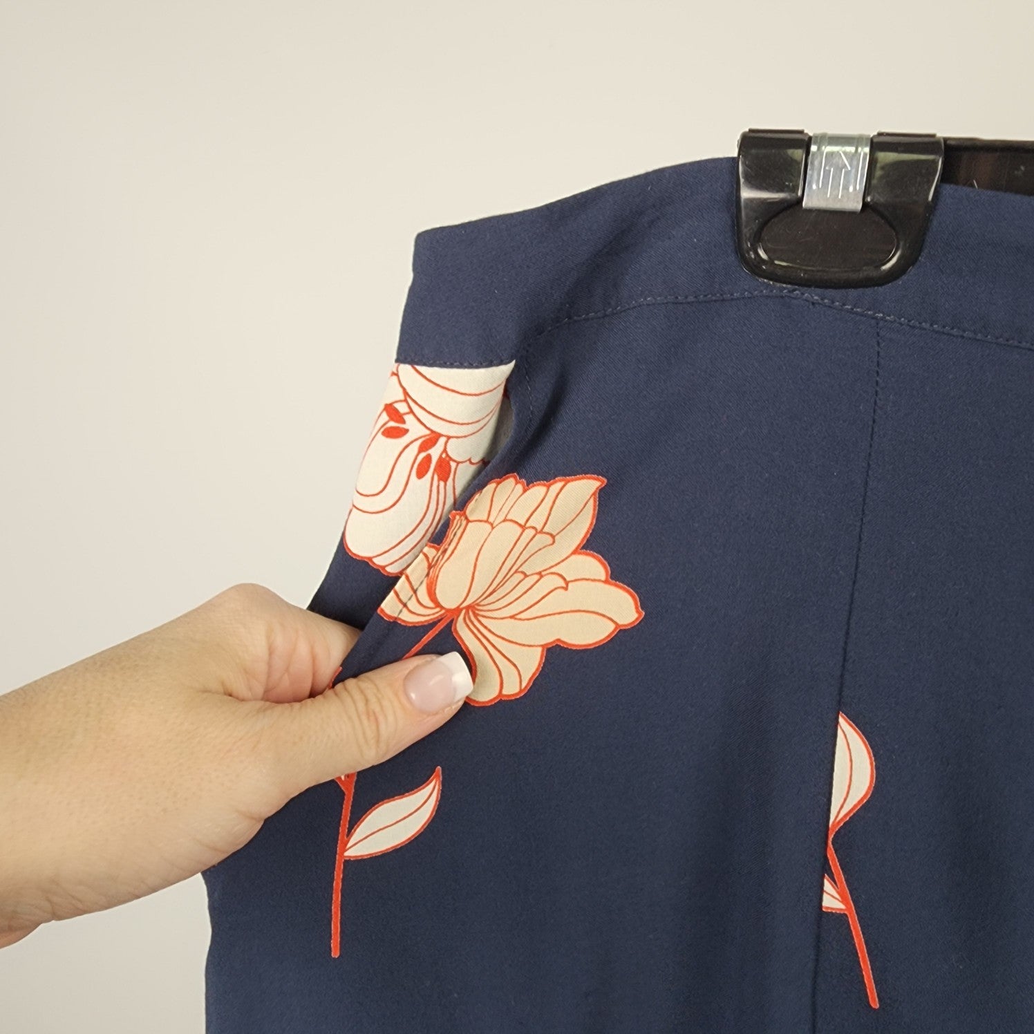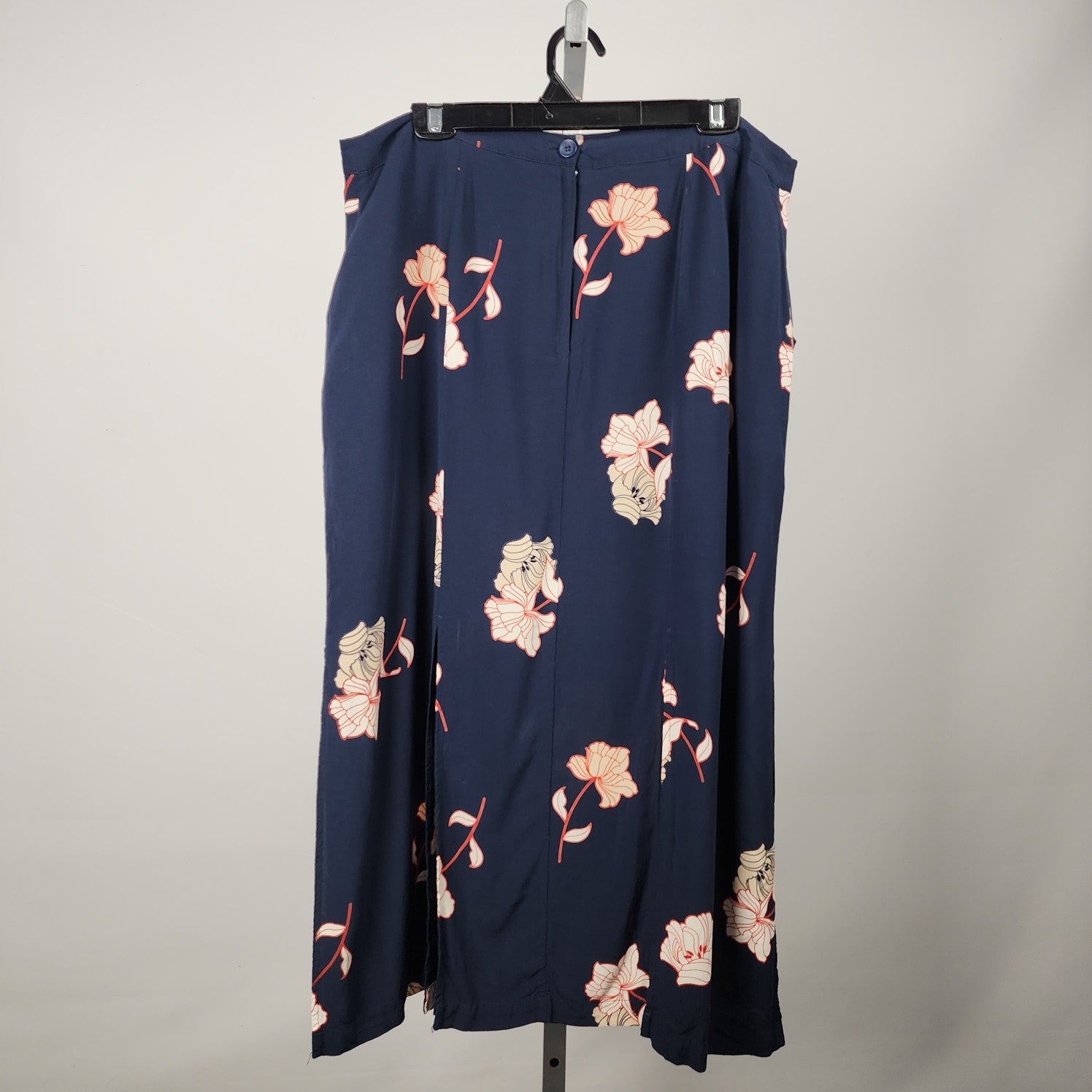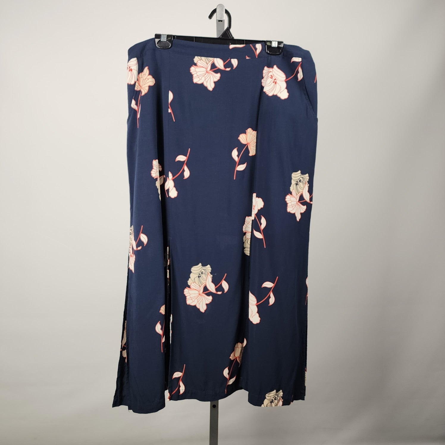 Pennintons Navy Blue Floral Midi Slit Skirt Size 18