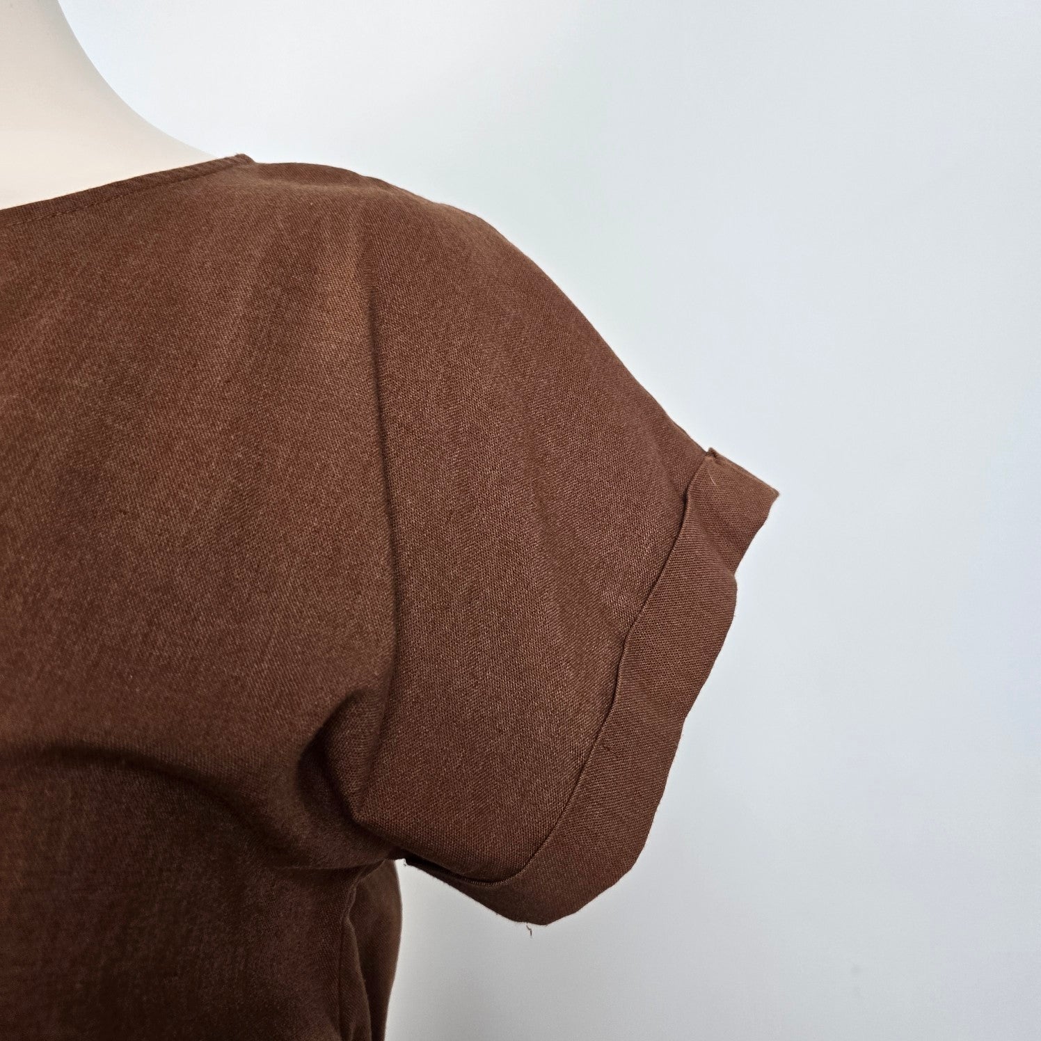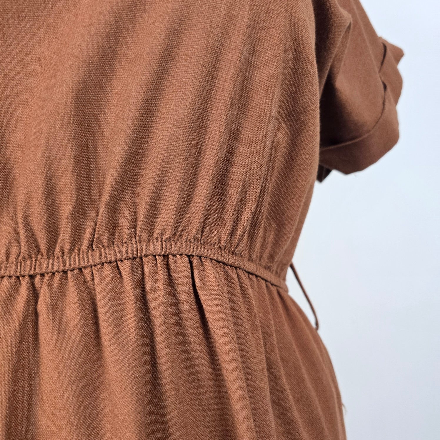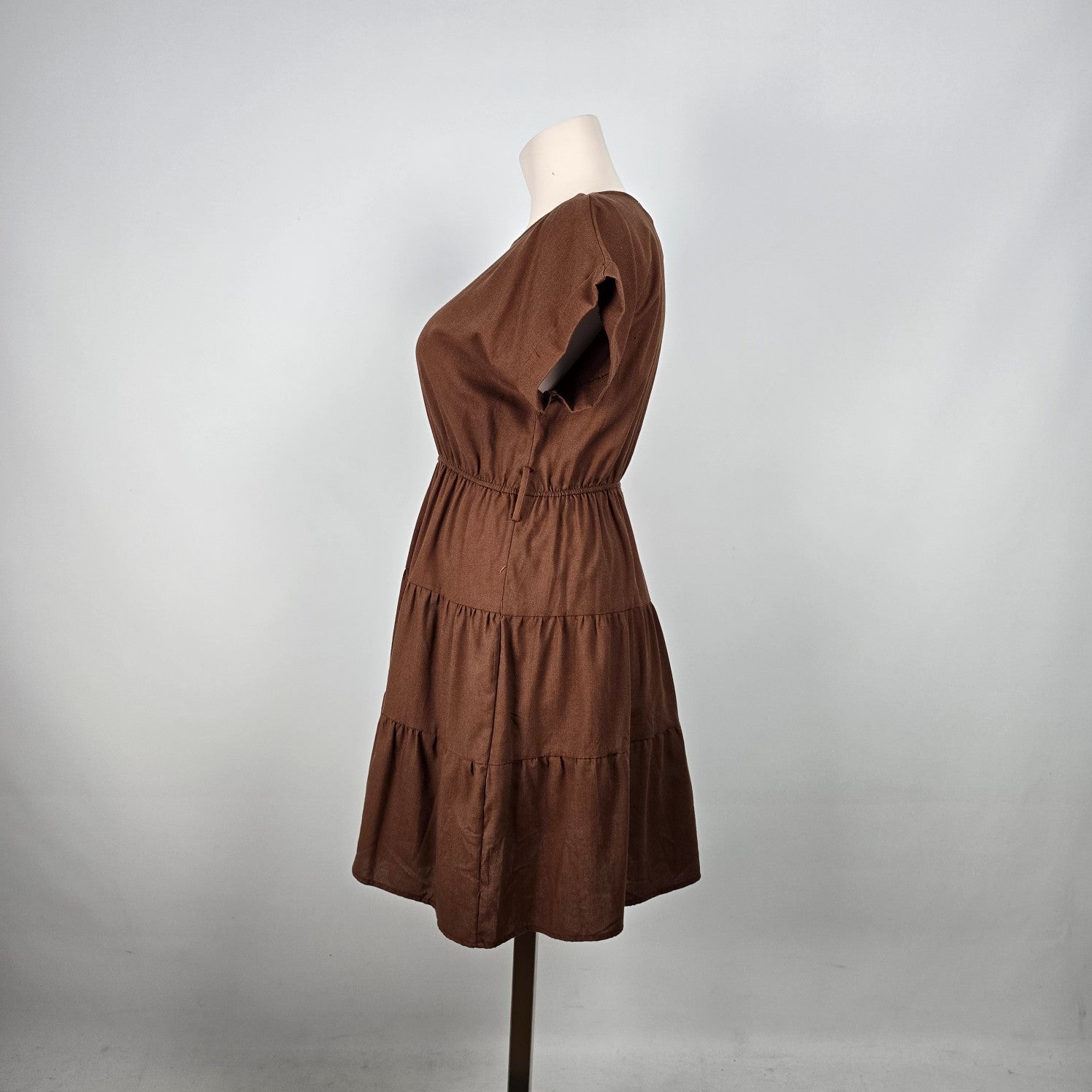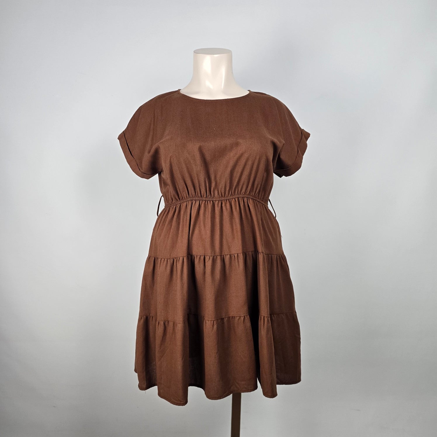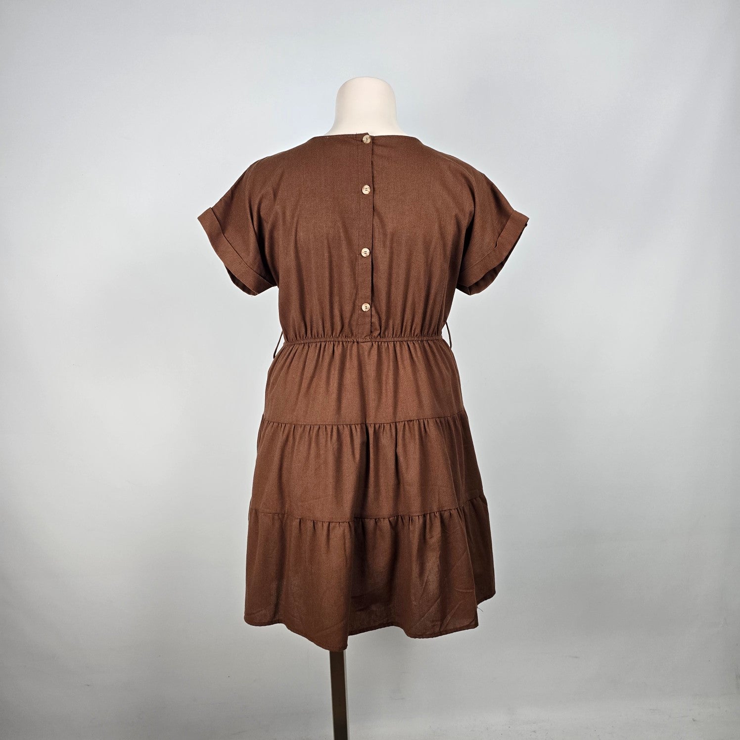 Perch Brown Linen Tiered Mini Dress Size 3XL