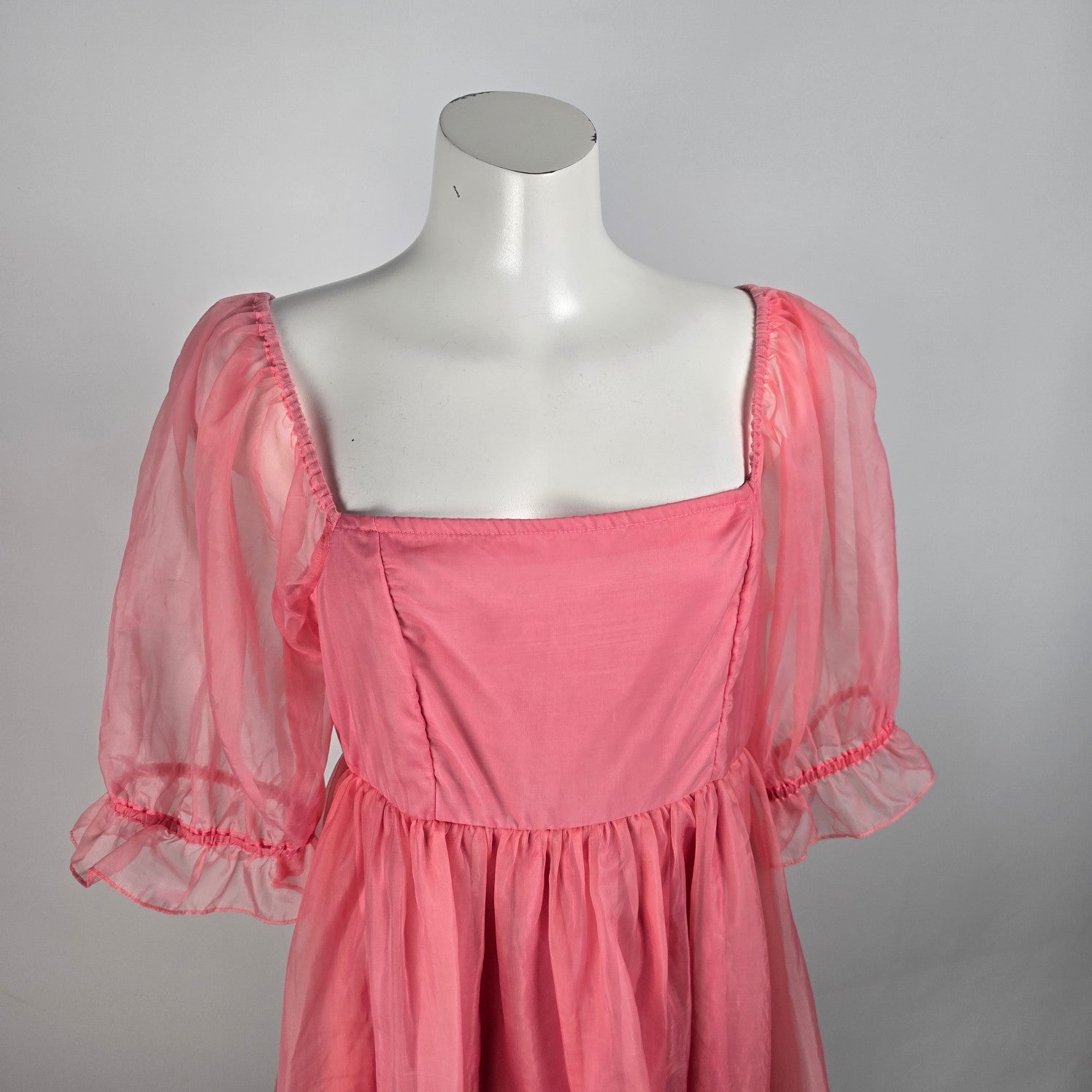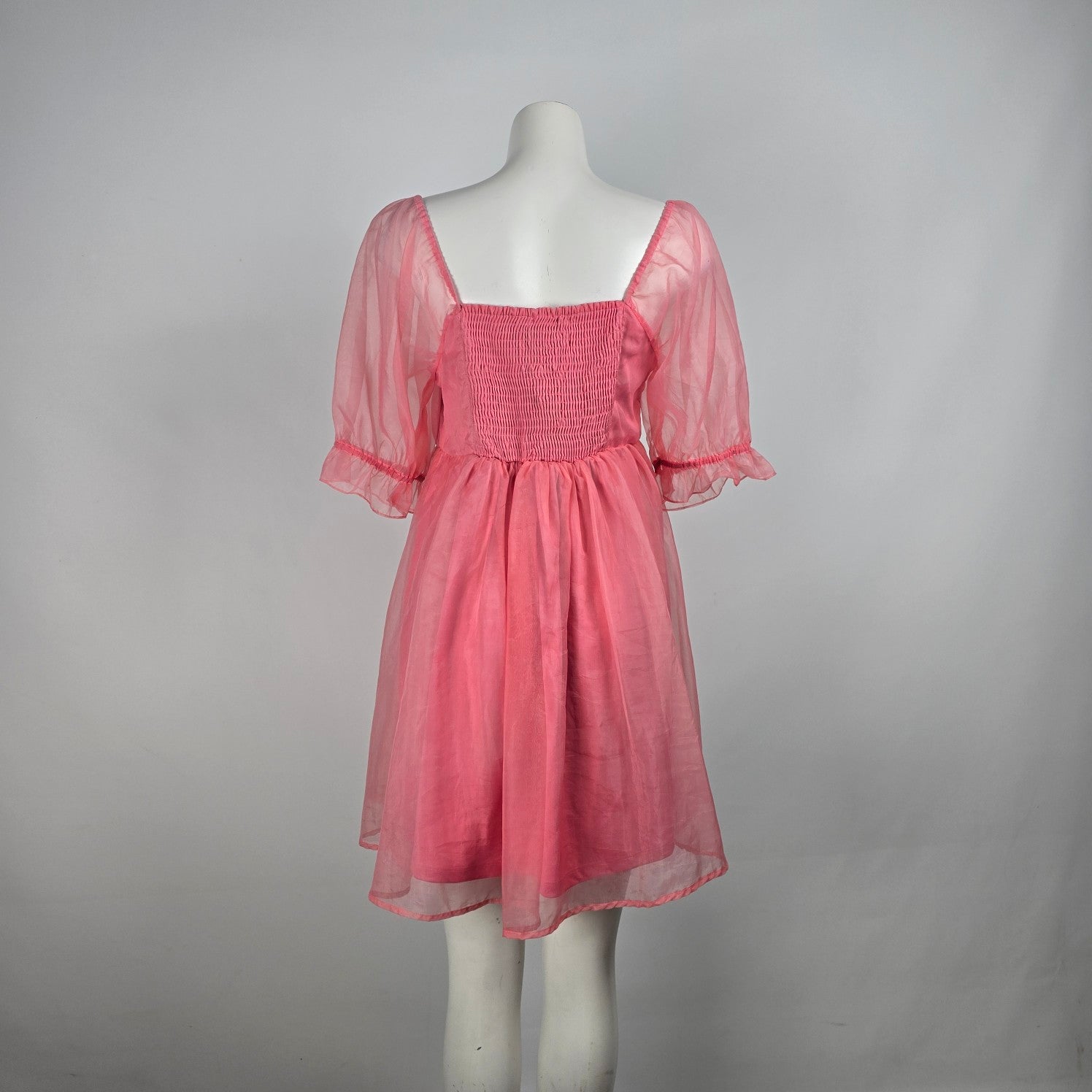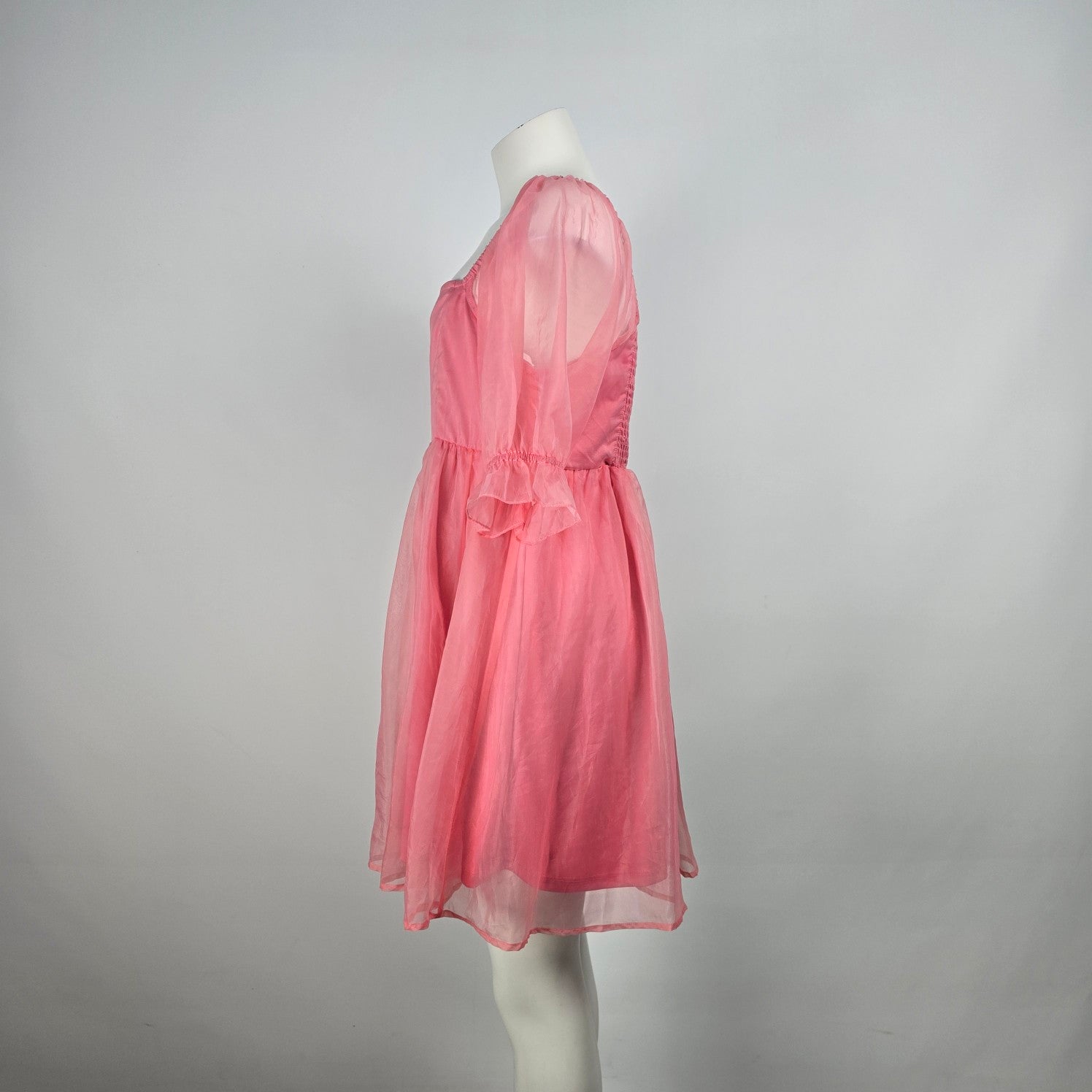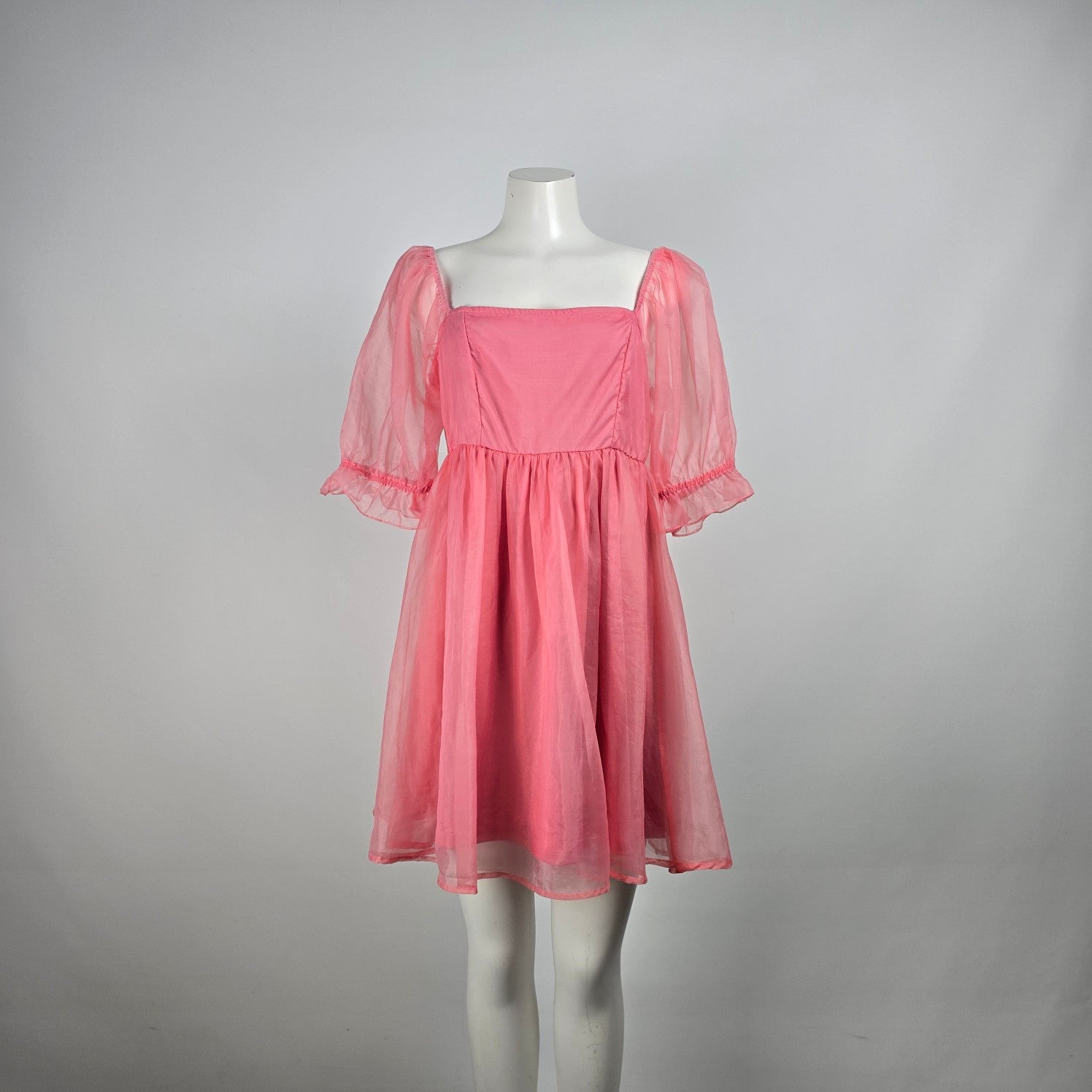 Pieces Pink Puff Sleeve Empire Waist Mini Dress Size M/L