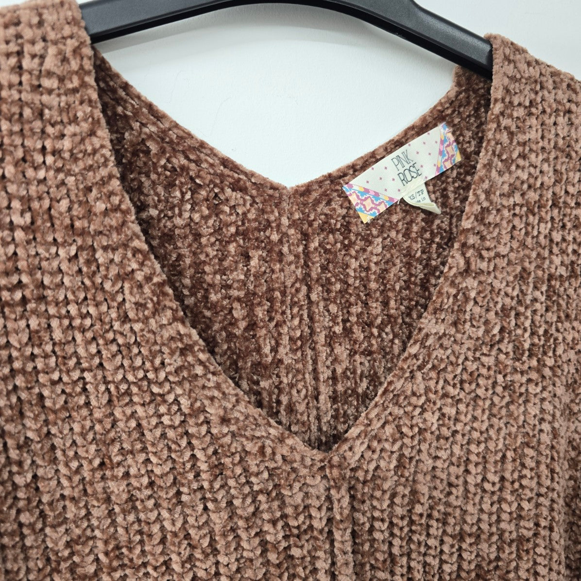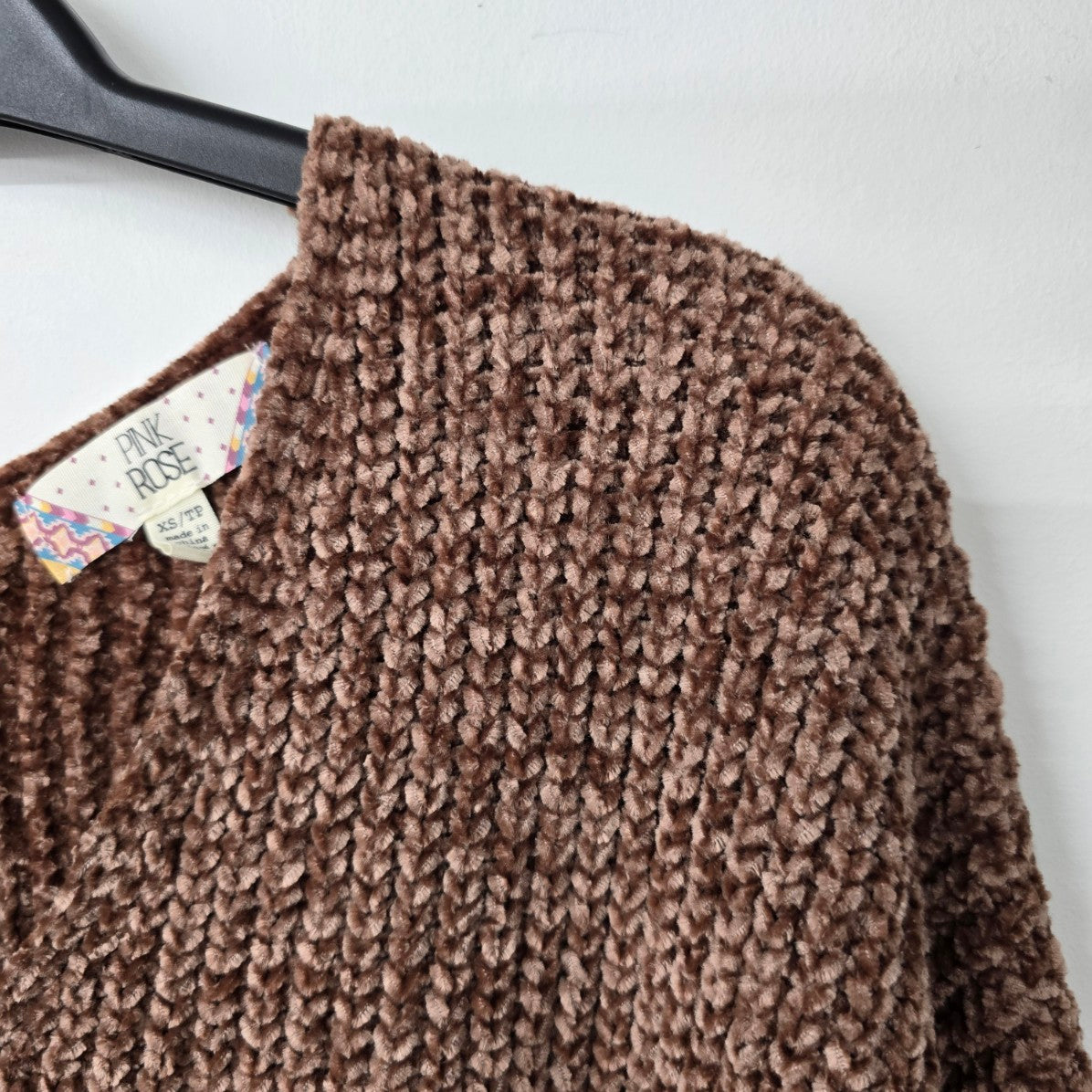 Pink Rose Brown Chenille Cropped Knit Sweater Size XS