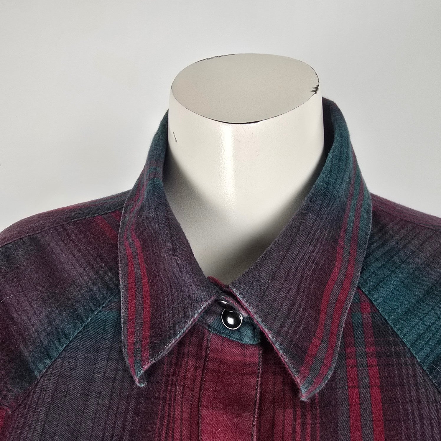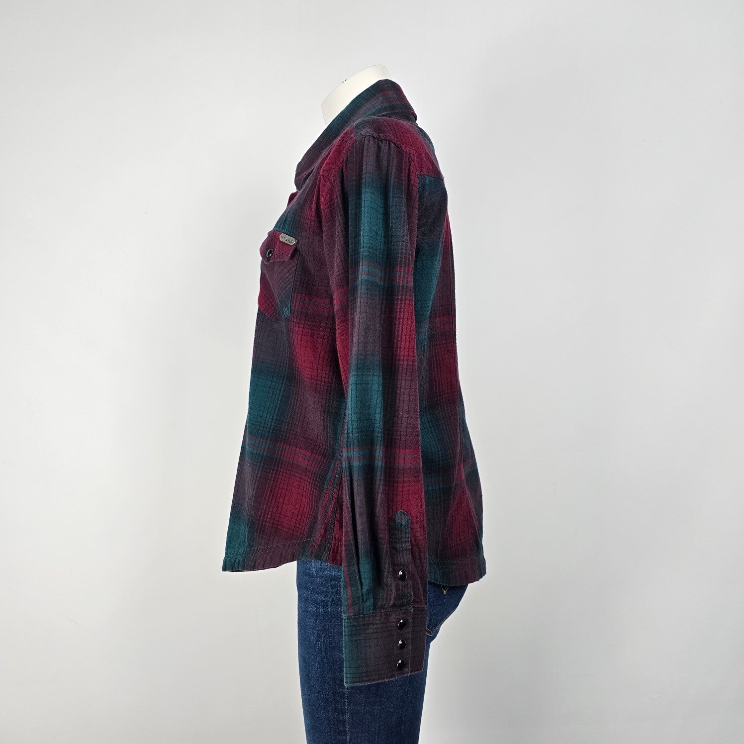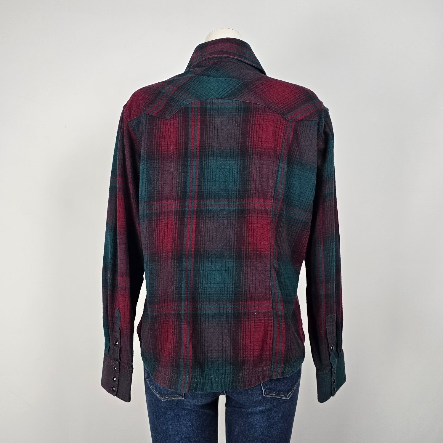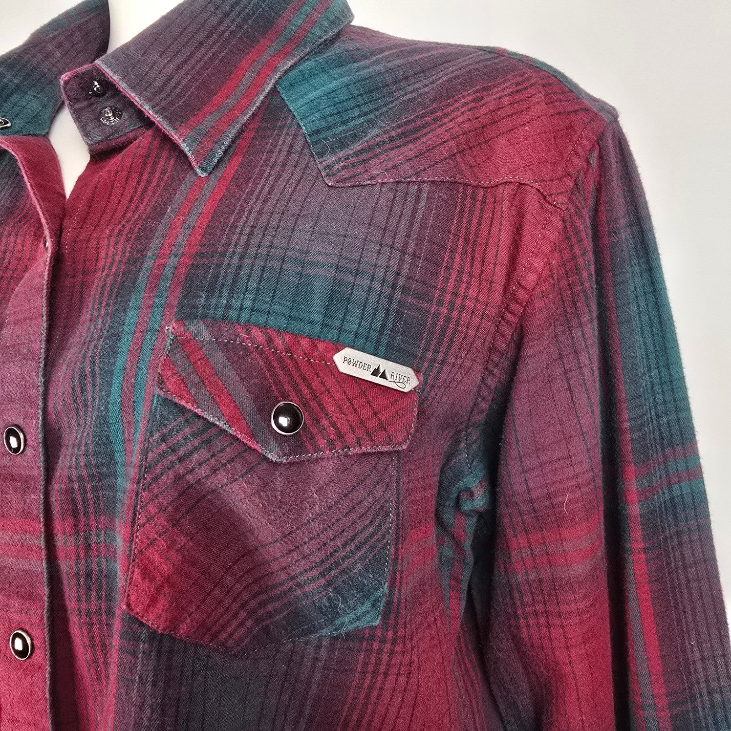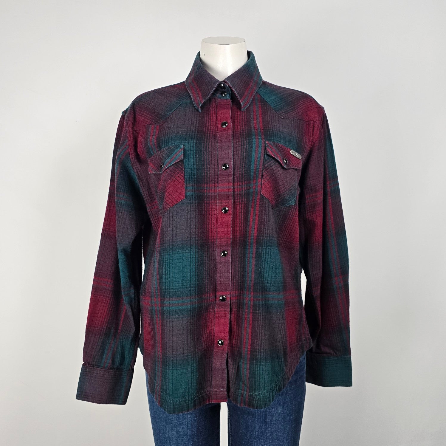 Powder River Outfitters Red Cotton Plaid Pearl Snap Western Top Size XL