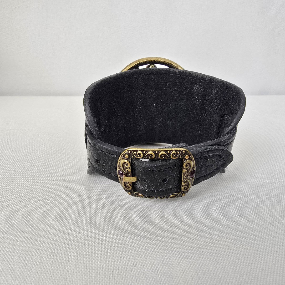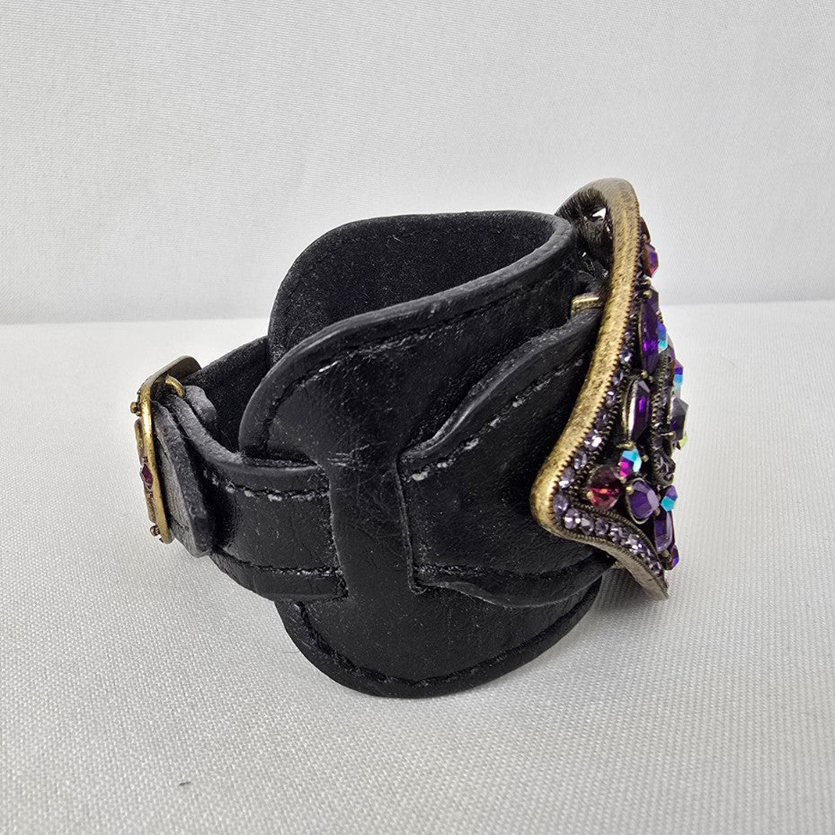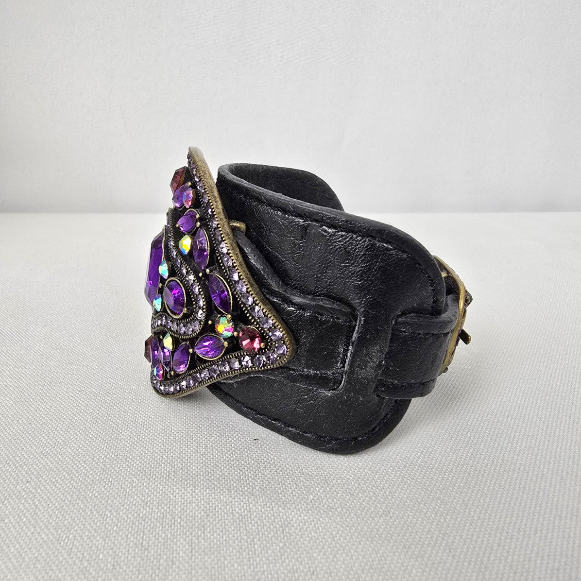 Purple Rhinestone Black Vegan Leather Cuff Bracelet