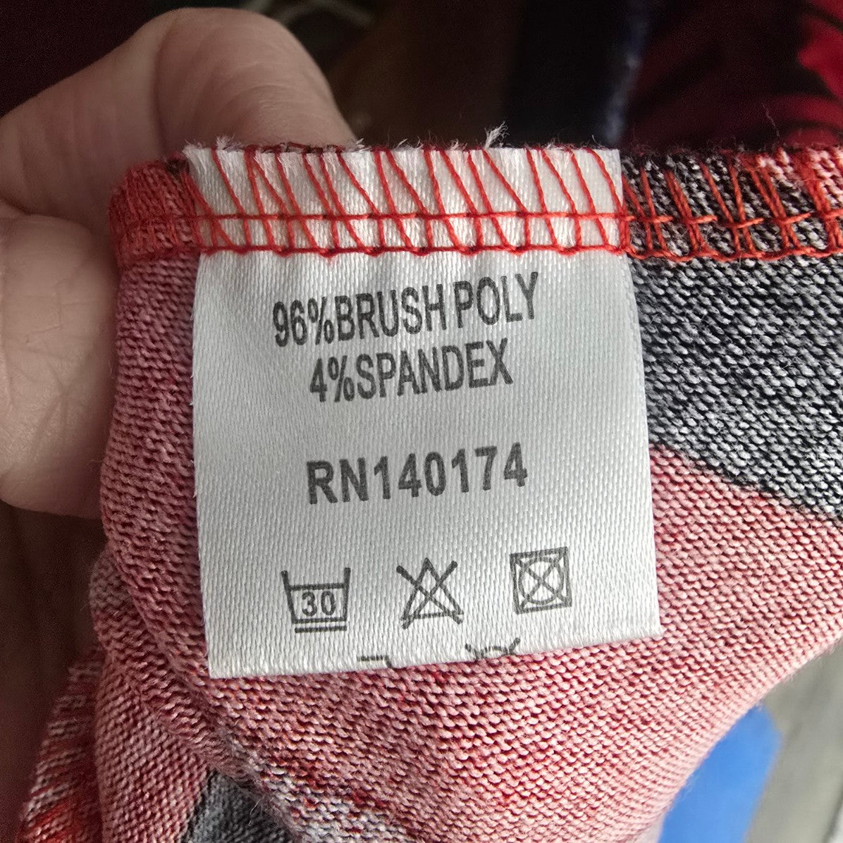 See last photos for fabric content and approximate FLAT measurements, compare our measurements to something in your closet to see if it will fit.