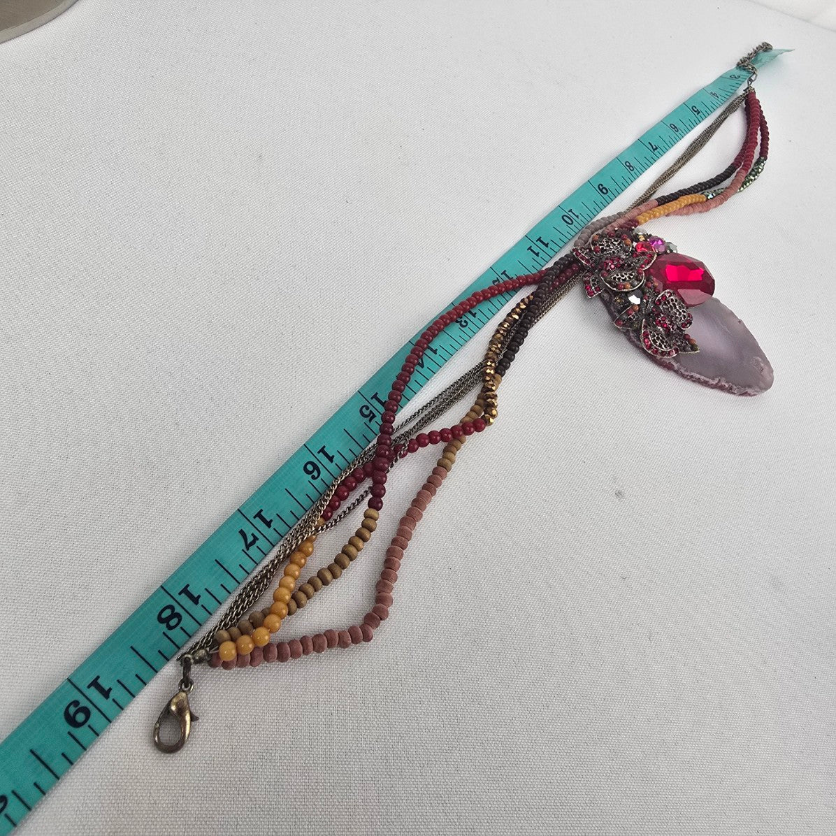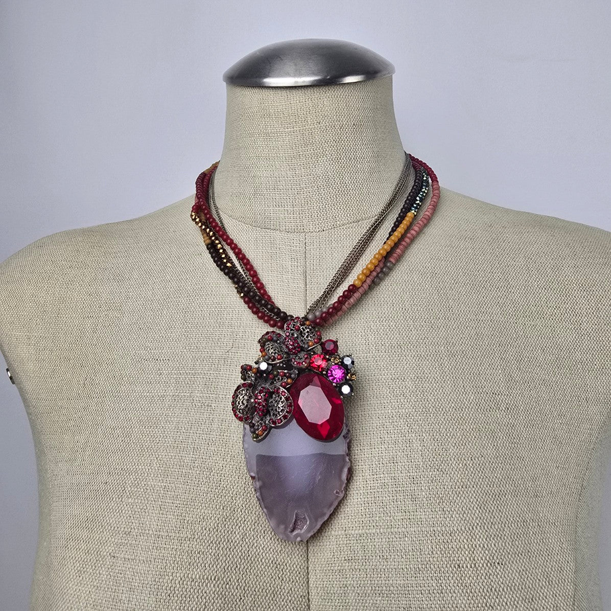 Red Rhinestone Floral Geode Pendant Beaded Statement Necklace