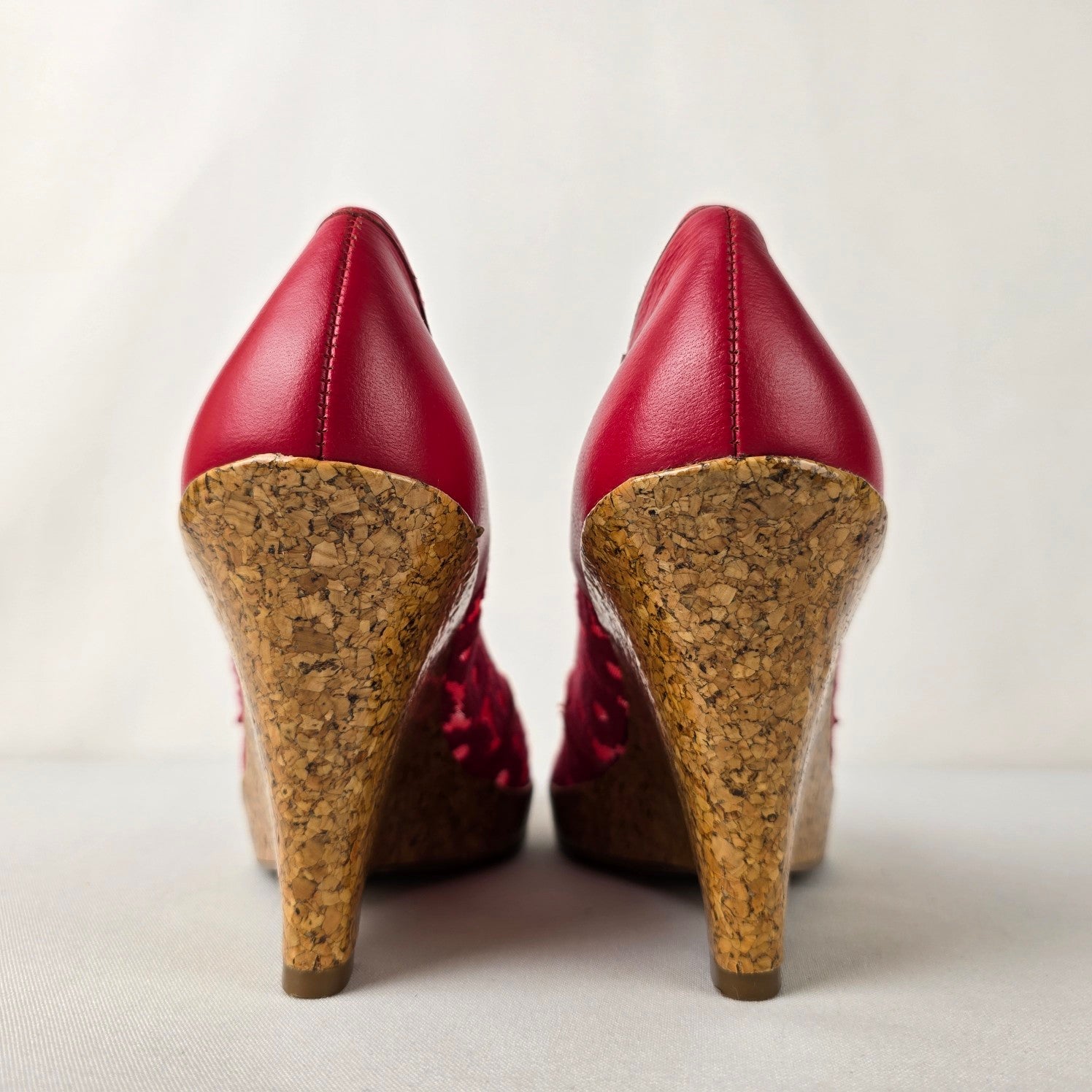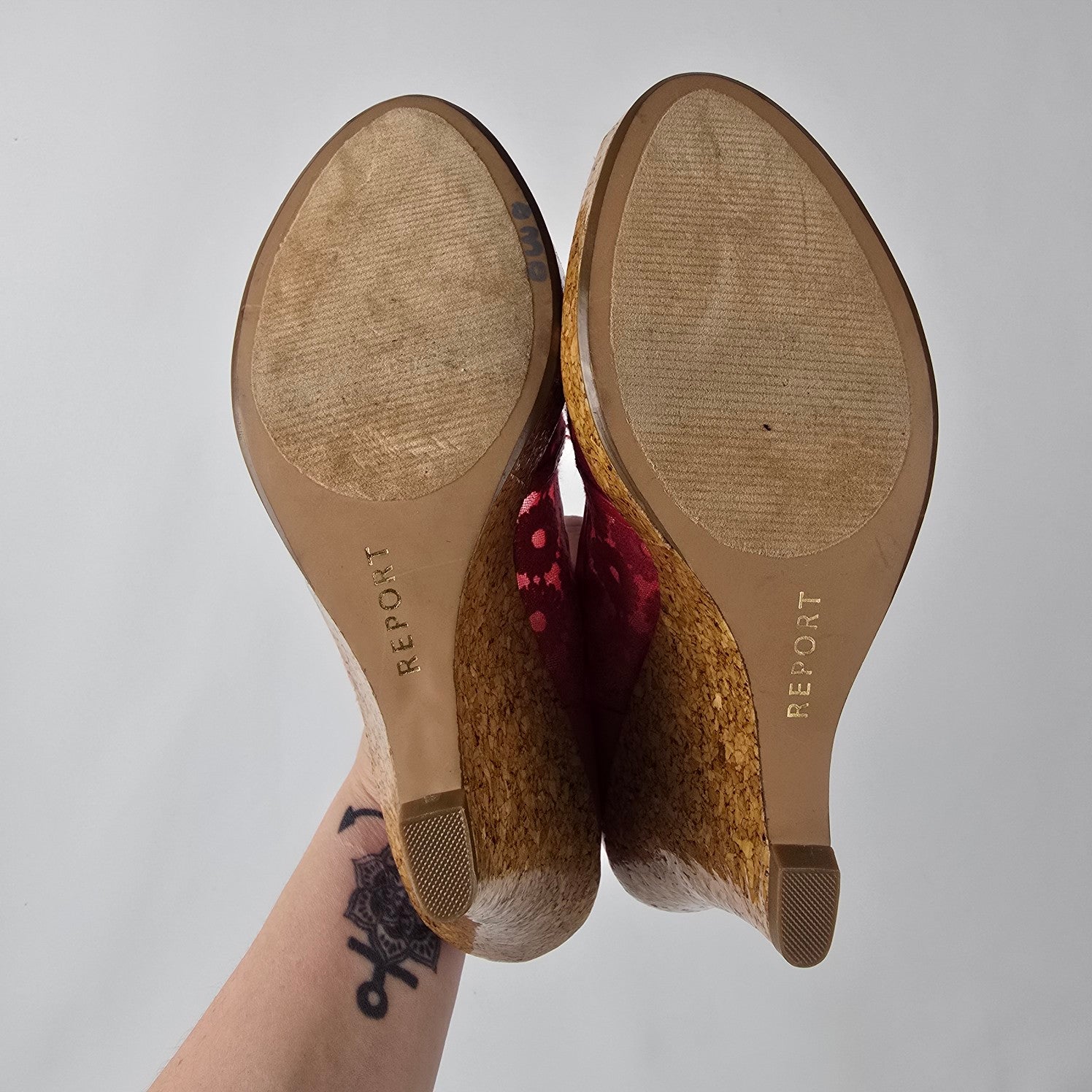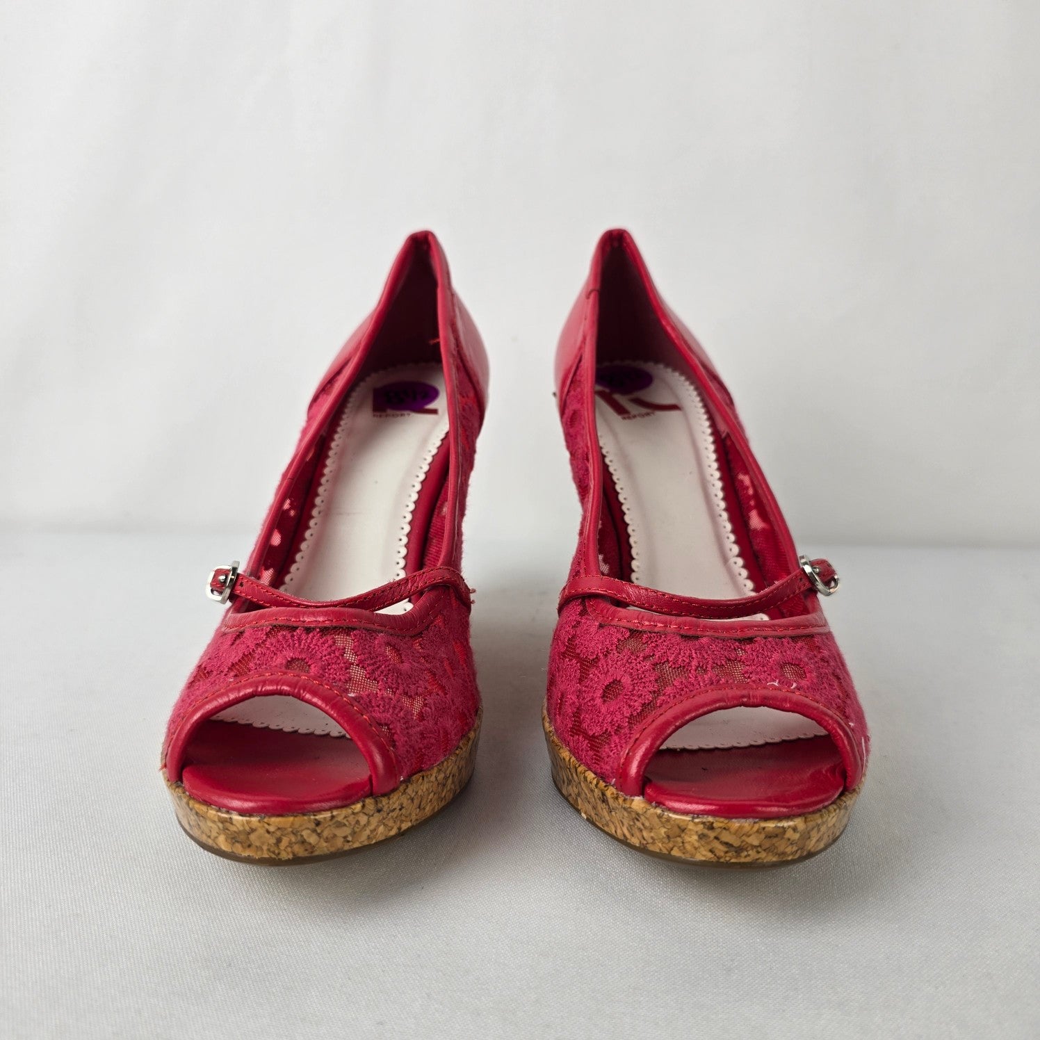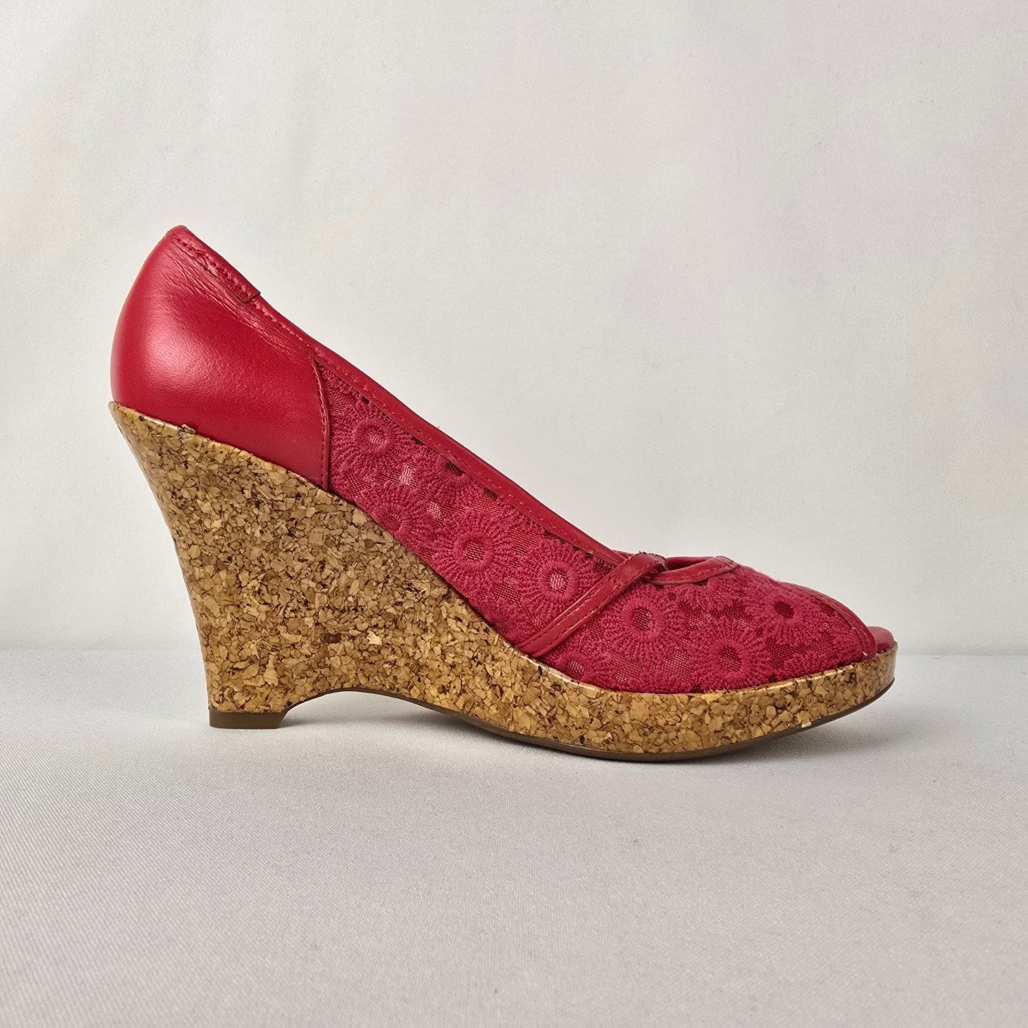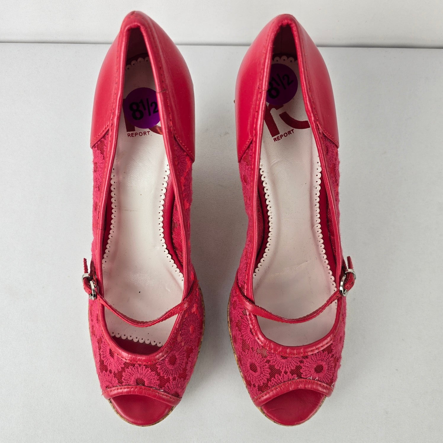 Report Red Flower Lace Peep Toe Wedge Heel Shoes Size 8.5