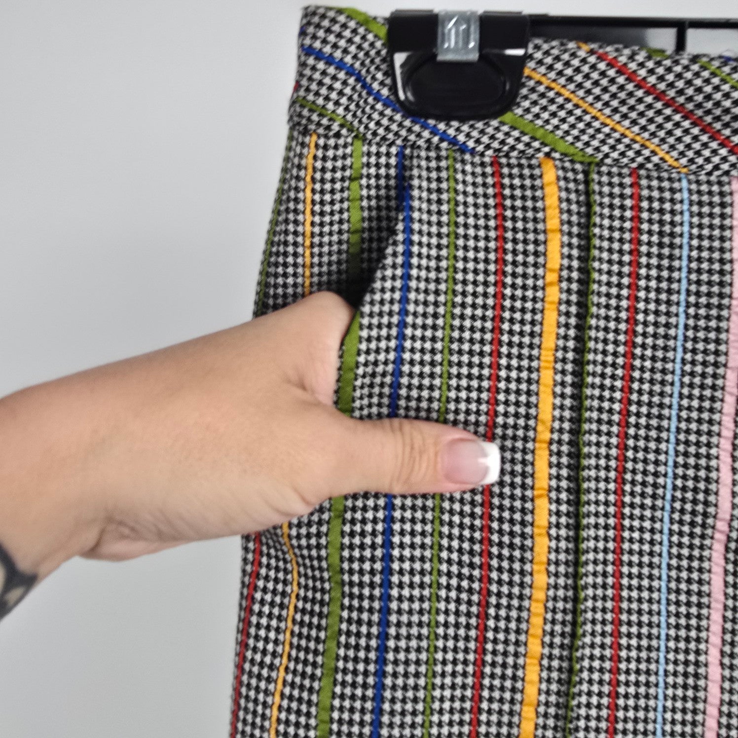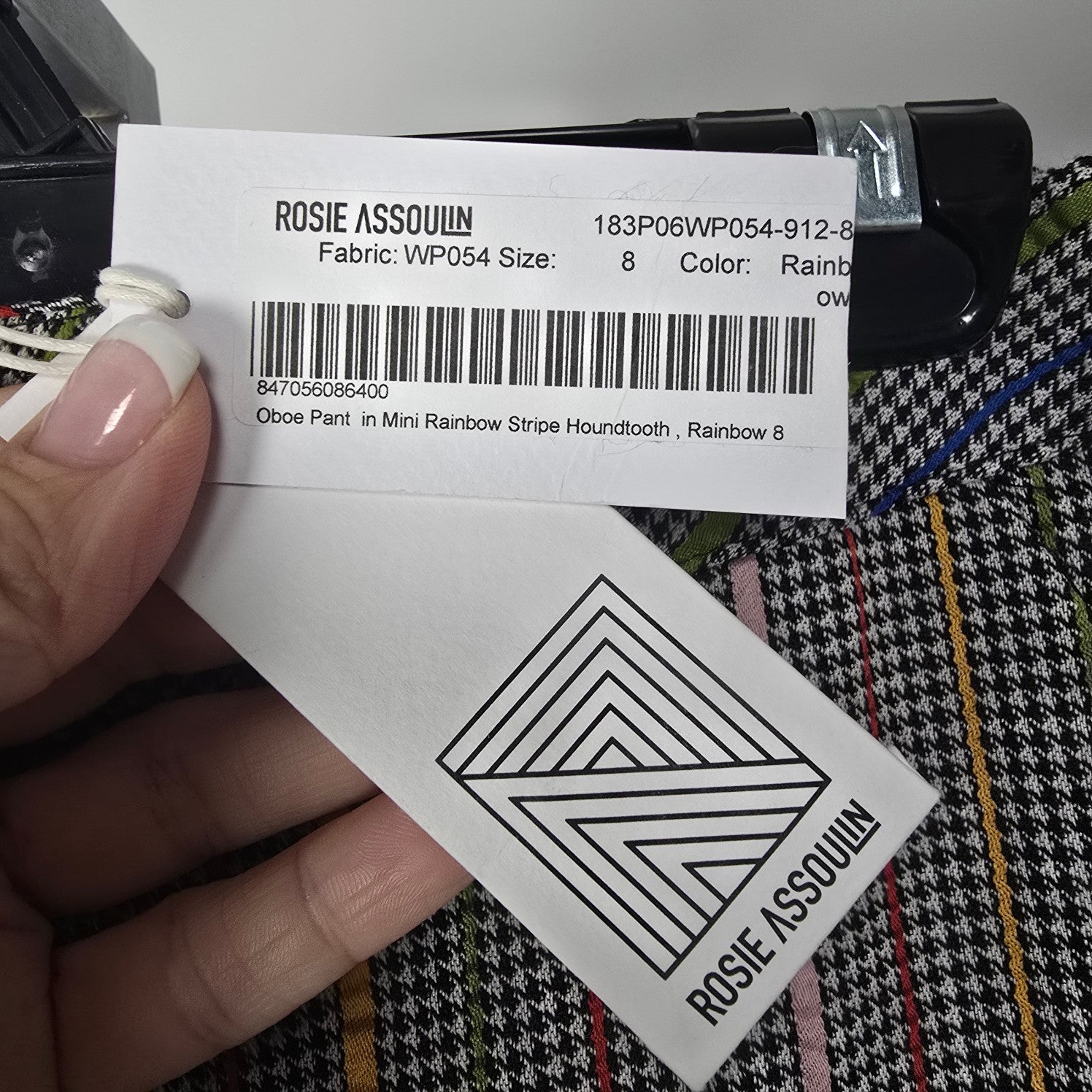 Rosie Assoulin Oboe Mini Rainbow Houndstooth Wool Silk Pants Size 8