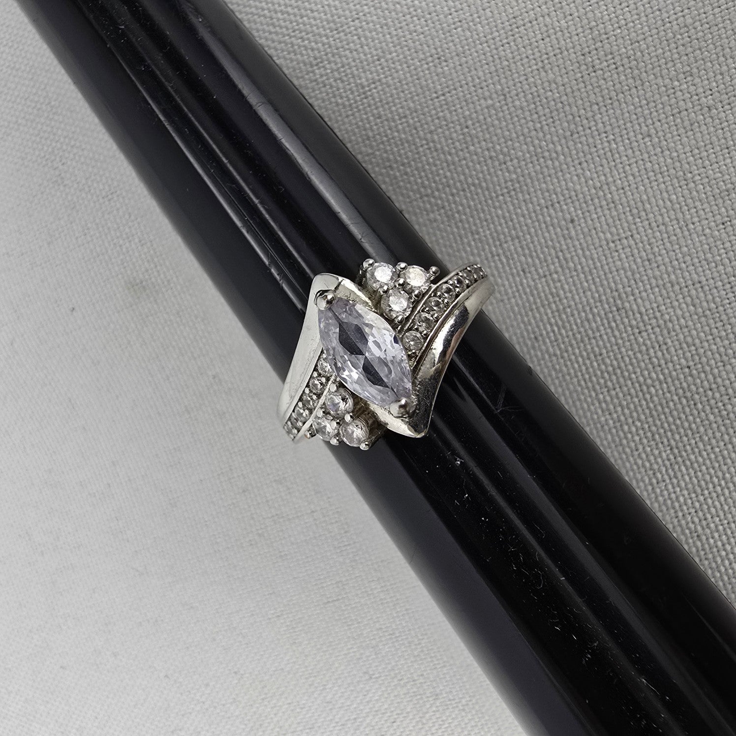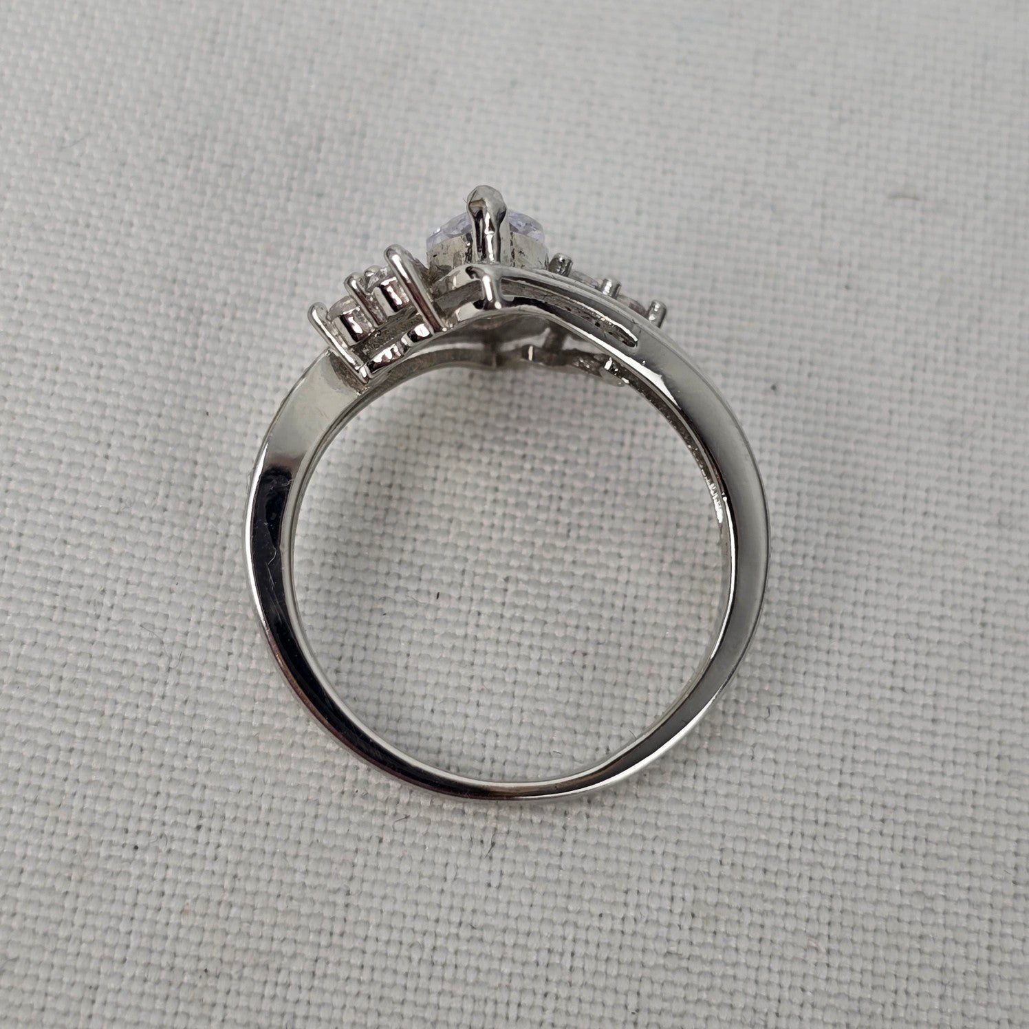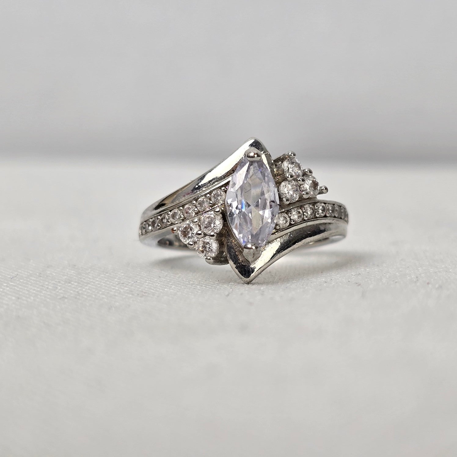 S925 Silver Tone Crystal Statement Ring Size 8