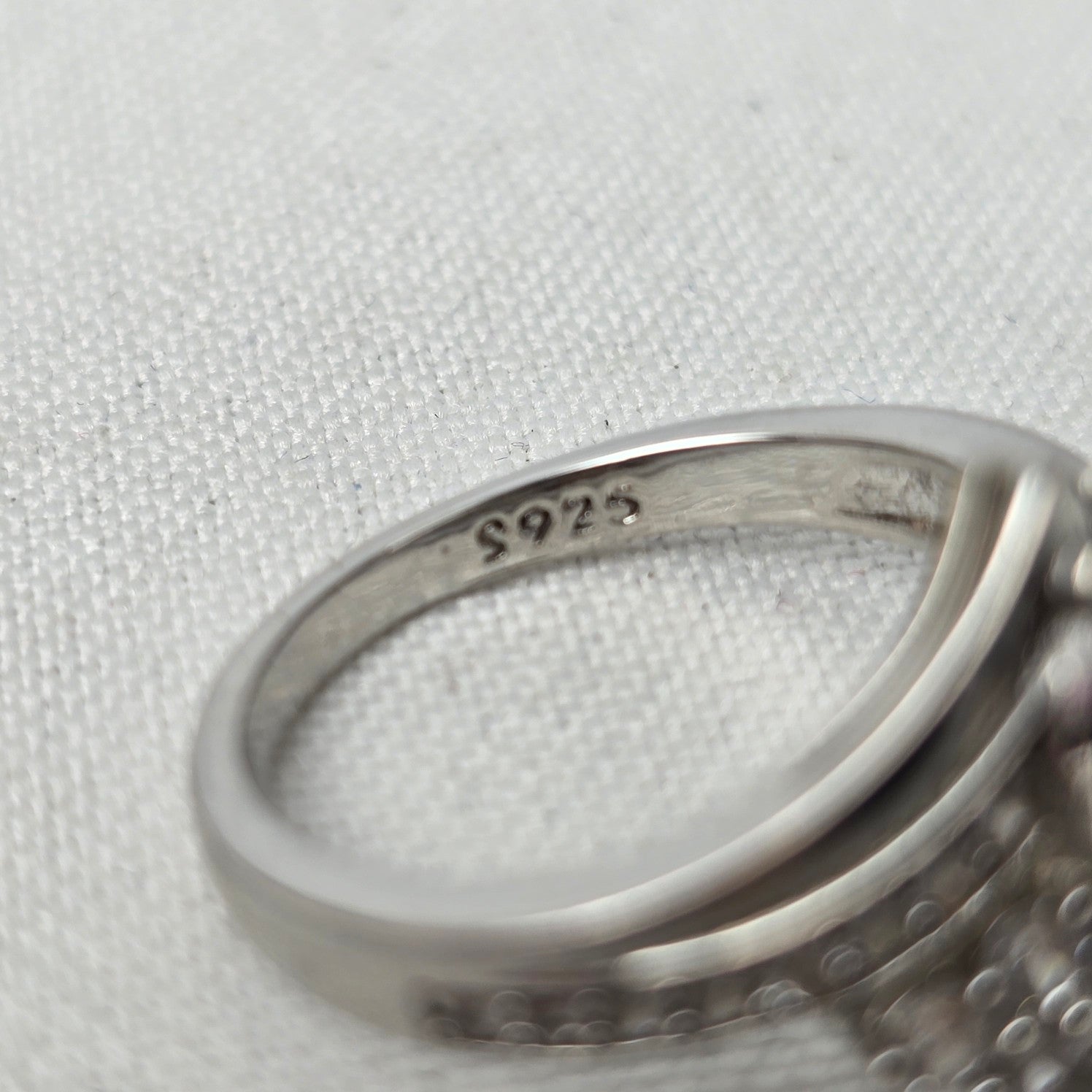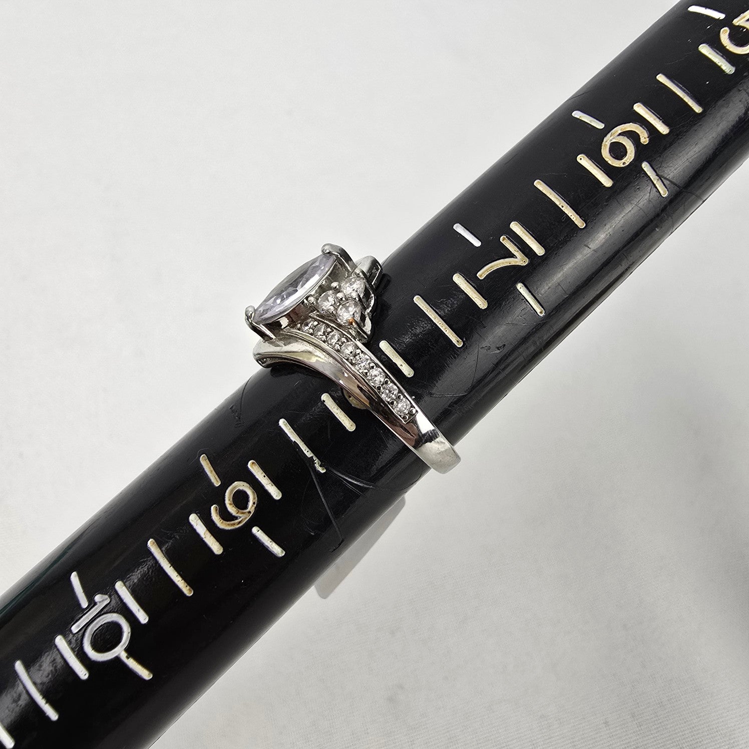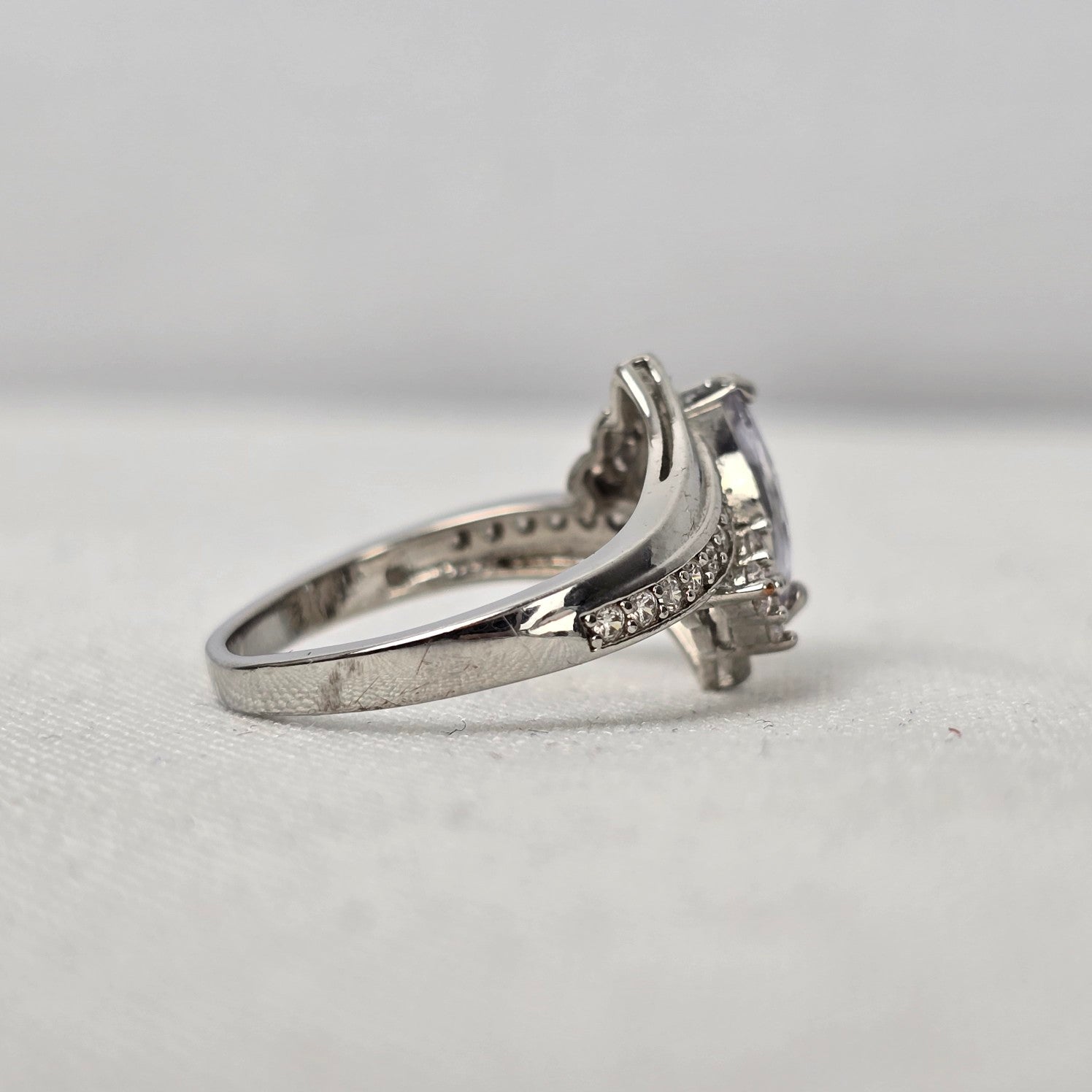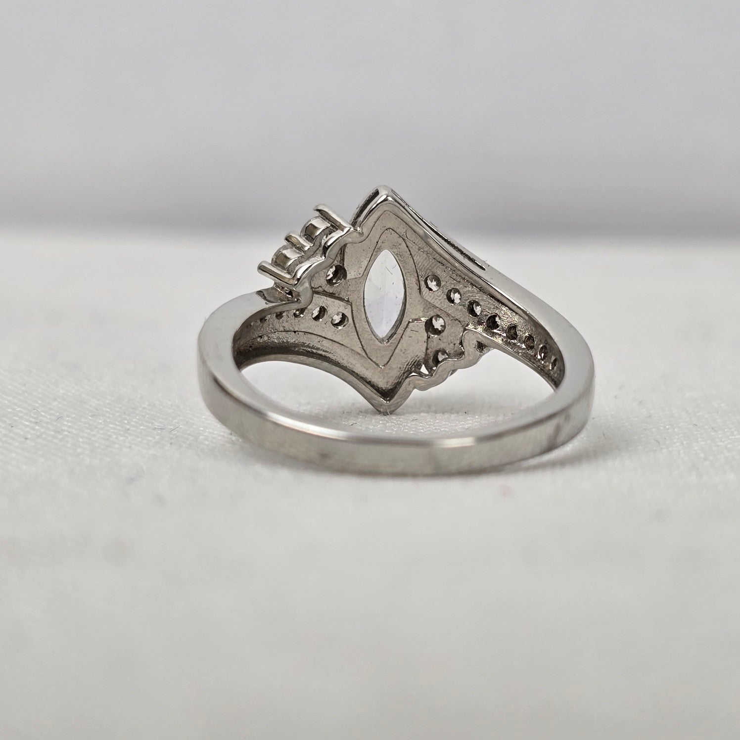S925 Silver Tone Crystal Statement Ring Size 8