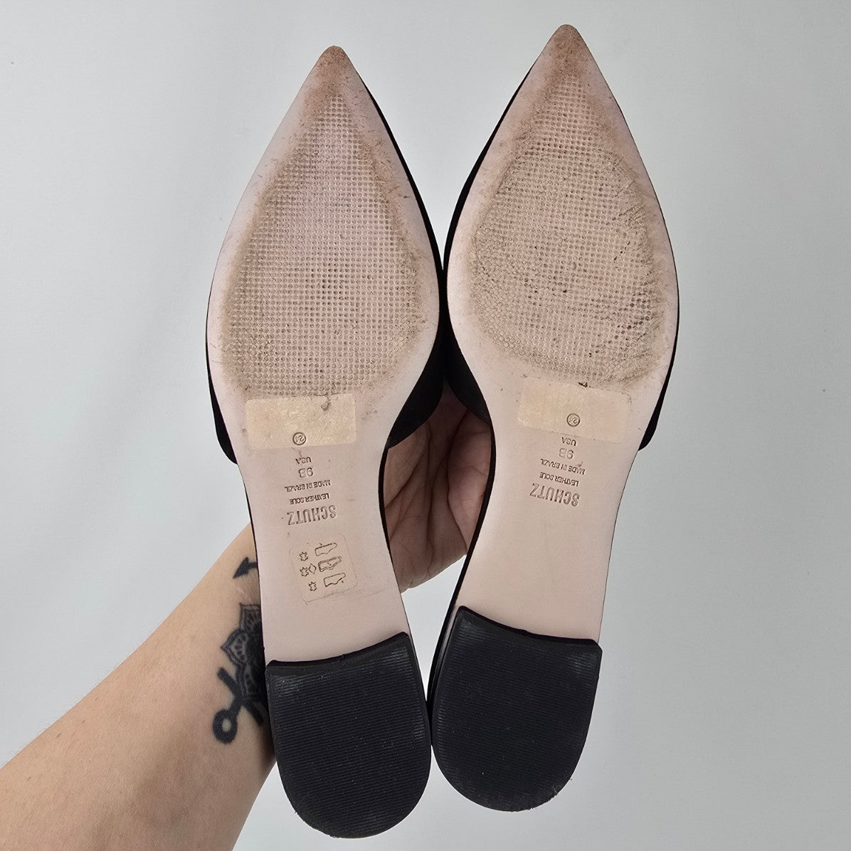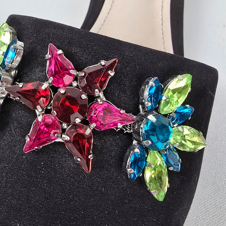 Schutz Black Rhinestone Crystal Flower Mule Shoes Size 9