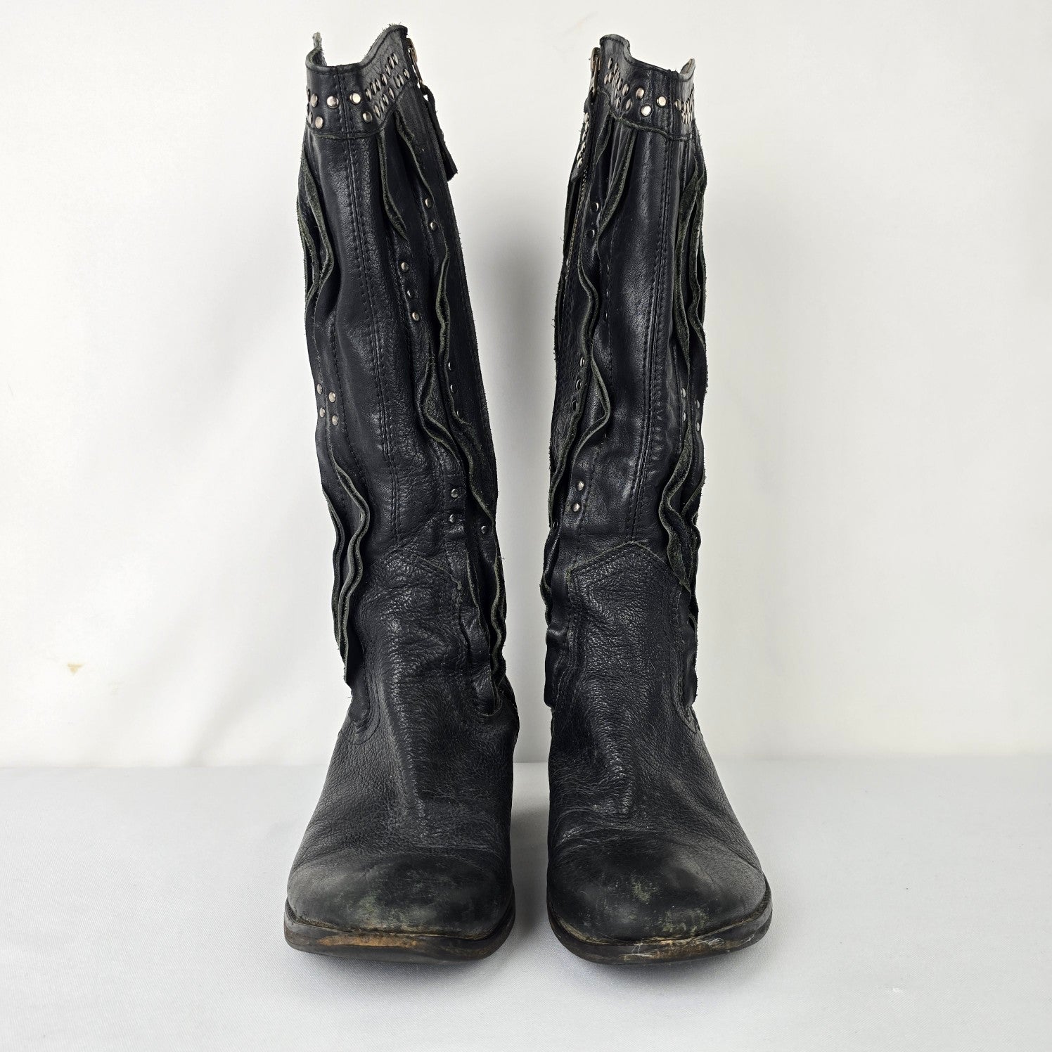 Sheridan Mia Anthropologie Black Leather Studded Cowboy Boots Size 9