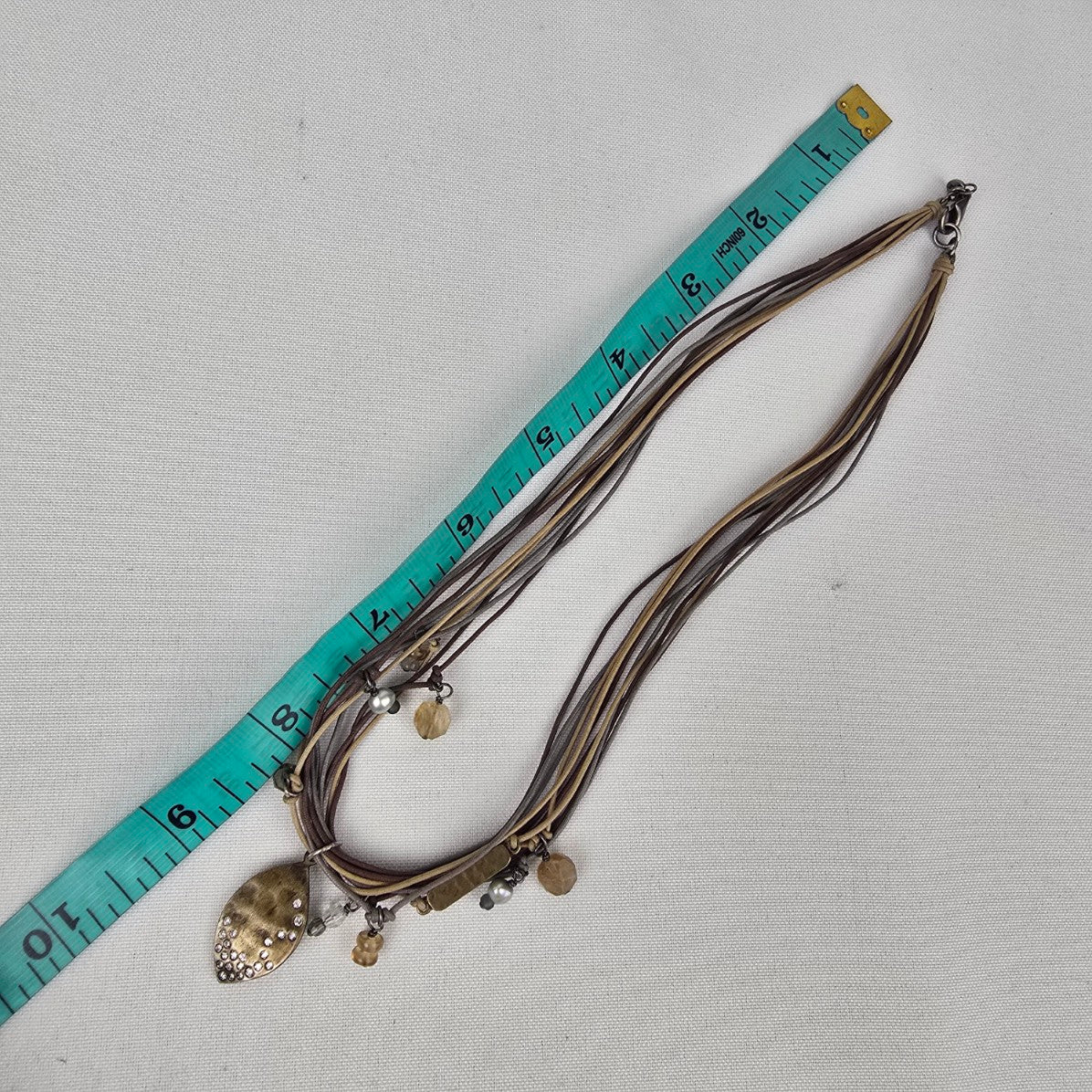 See last photo for length or size measurements, compare our measurements to something in your jewelry box to know if this piece will work for you.