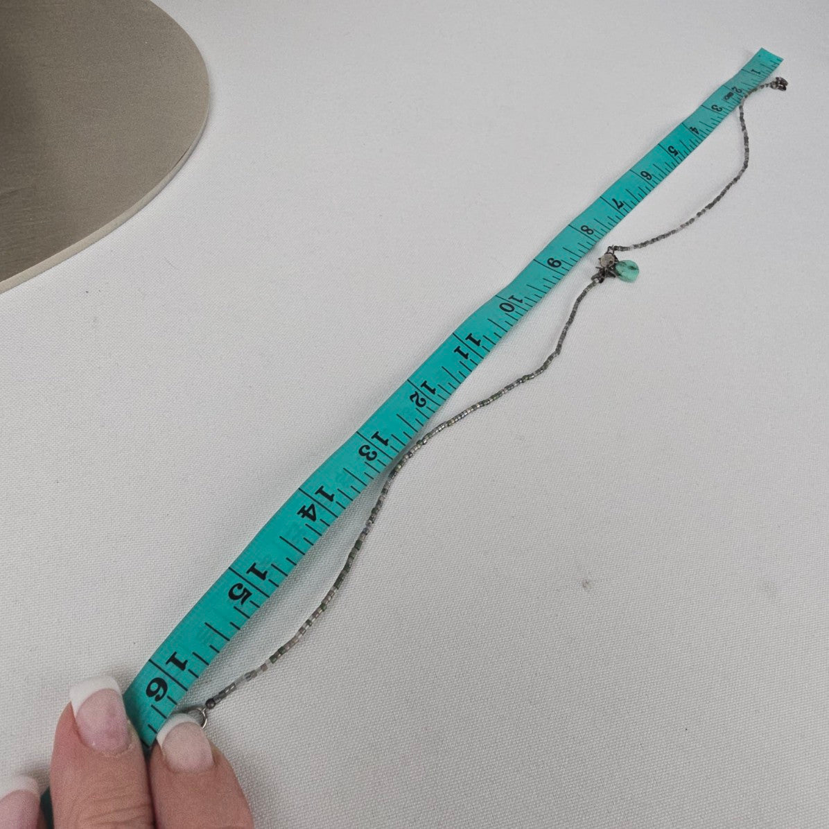 See last photo for length or size measurements, compare our measurements to something in your jewelry box to know if this piece will work for you.