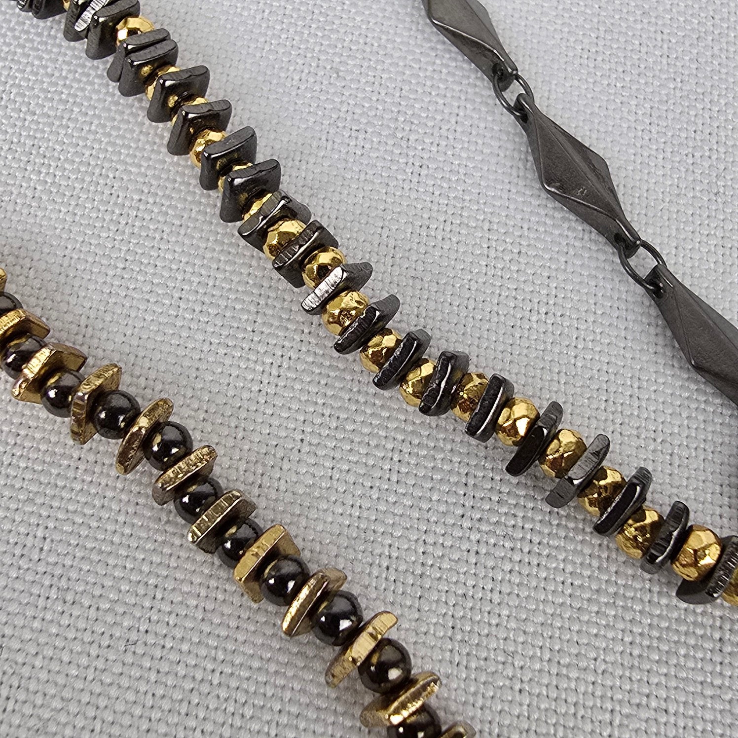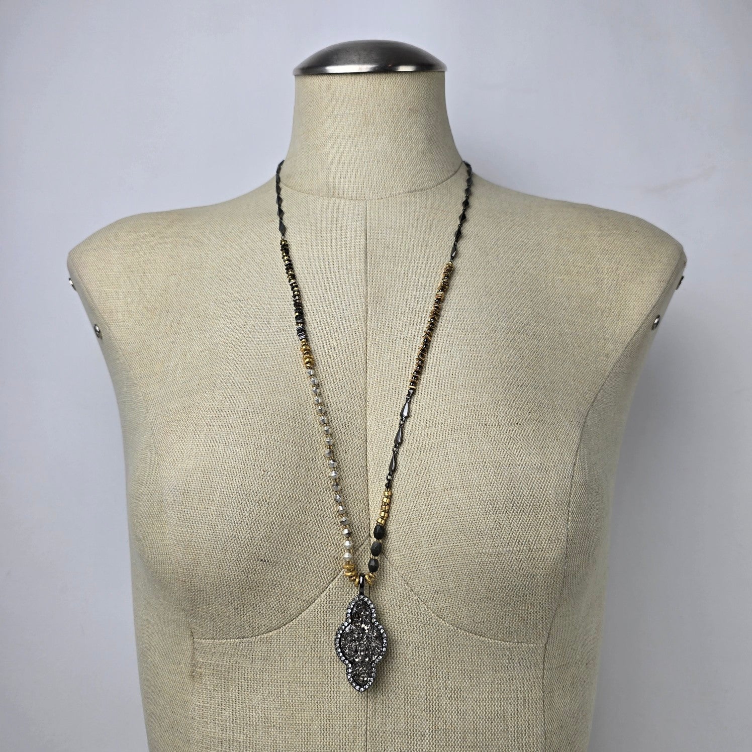 Stella & Dot Relic Hematite & Gold Long Pendant Necklace