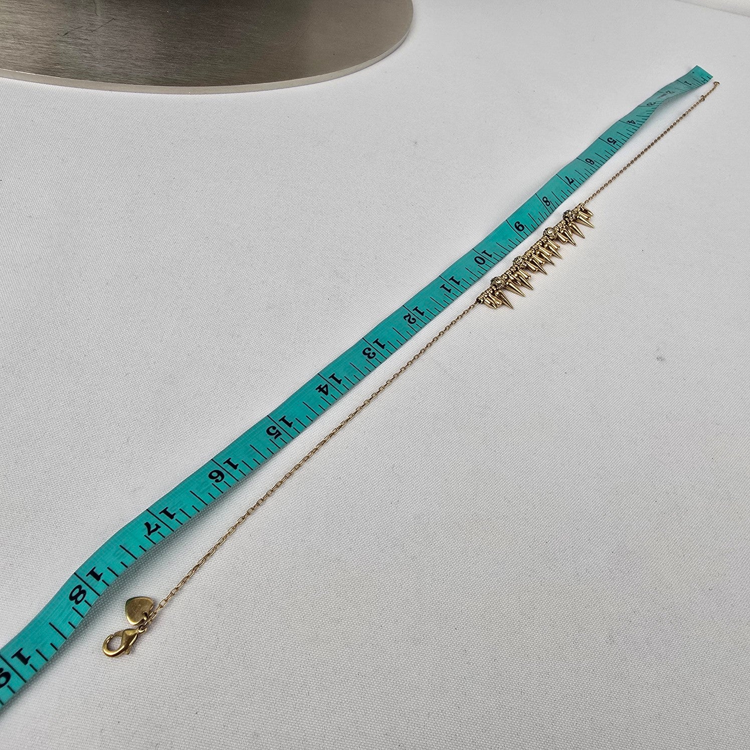 See last photo for length or size measurements, compare our measurements to something in your jewelry box to know if this piece will work for you.
