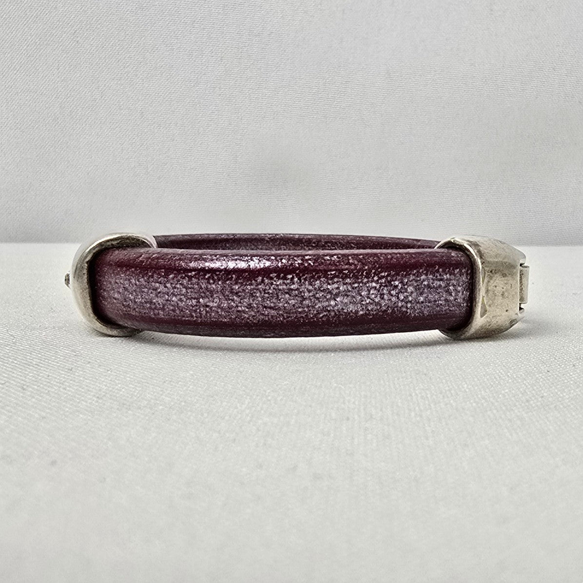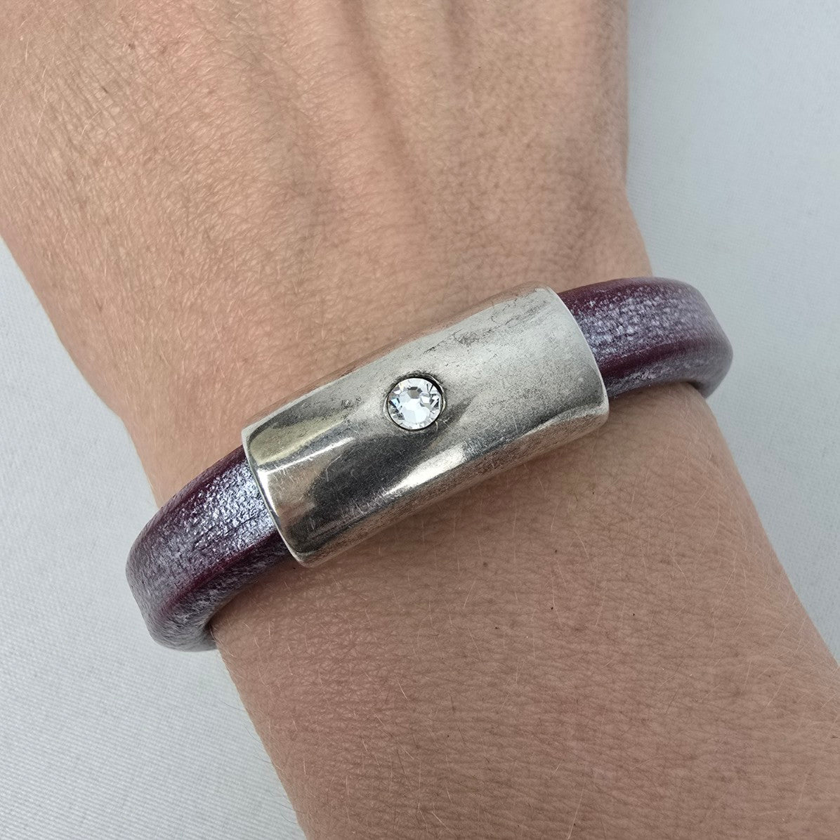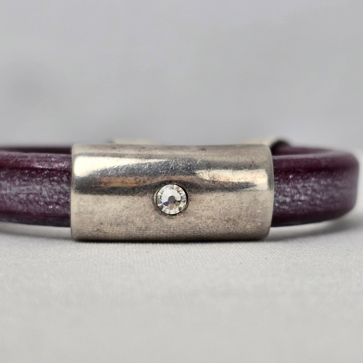 Sterling Silver Crystal Stud Purple Leather Bracelet