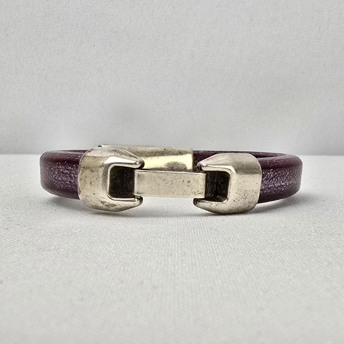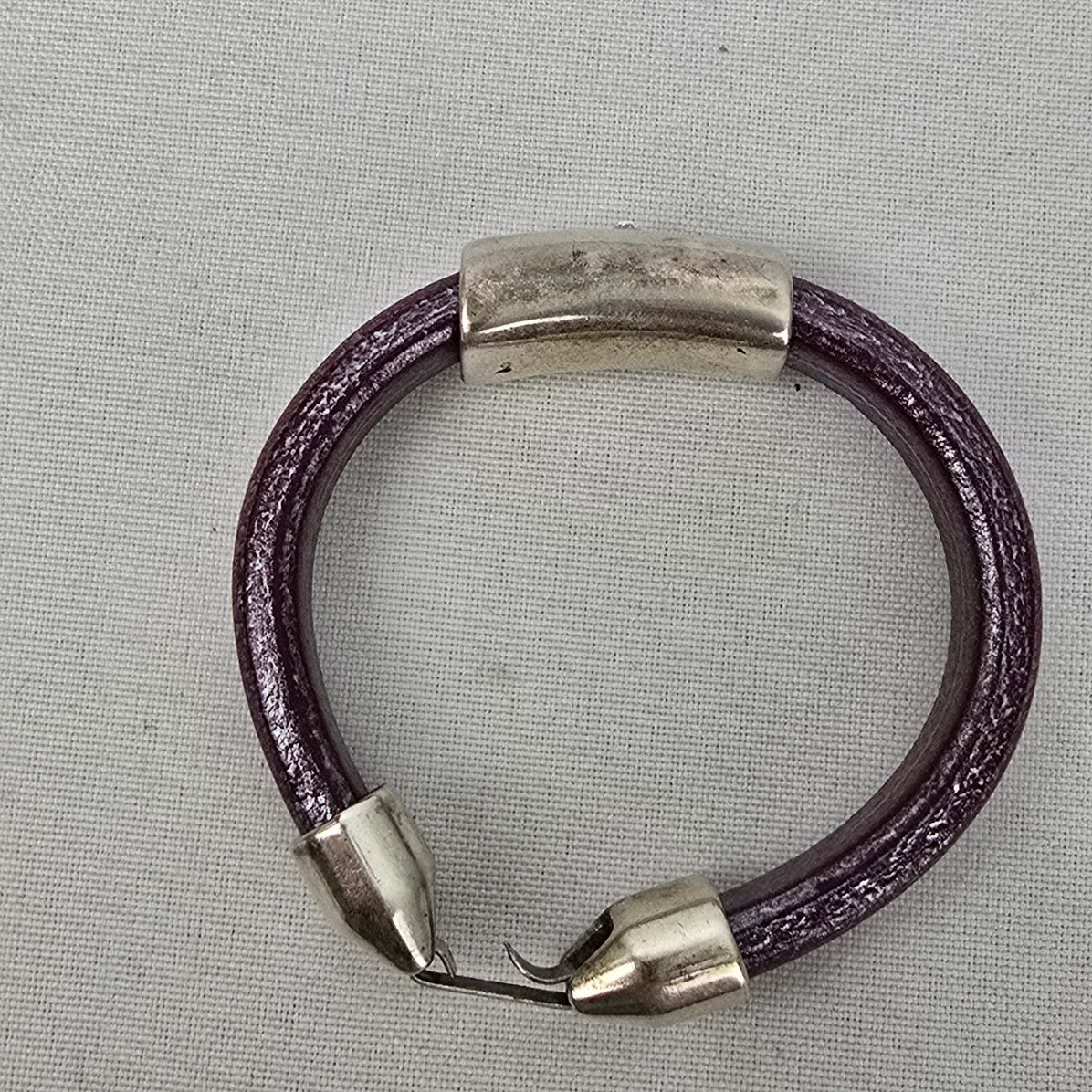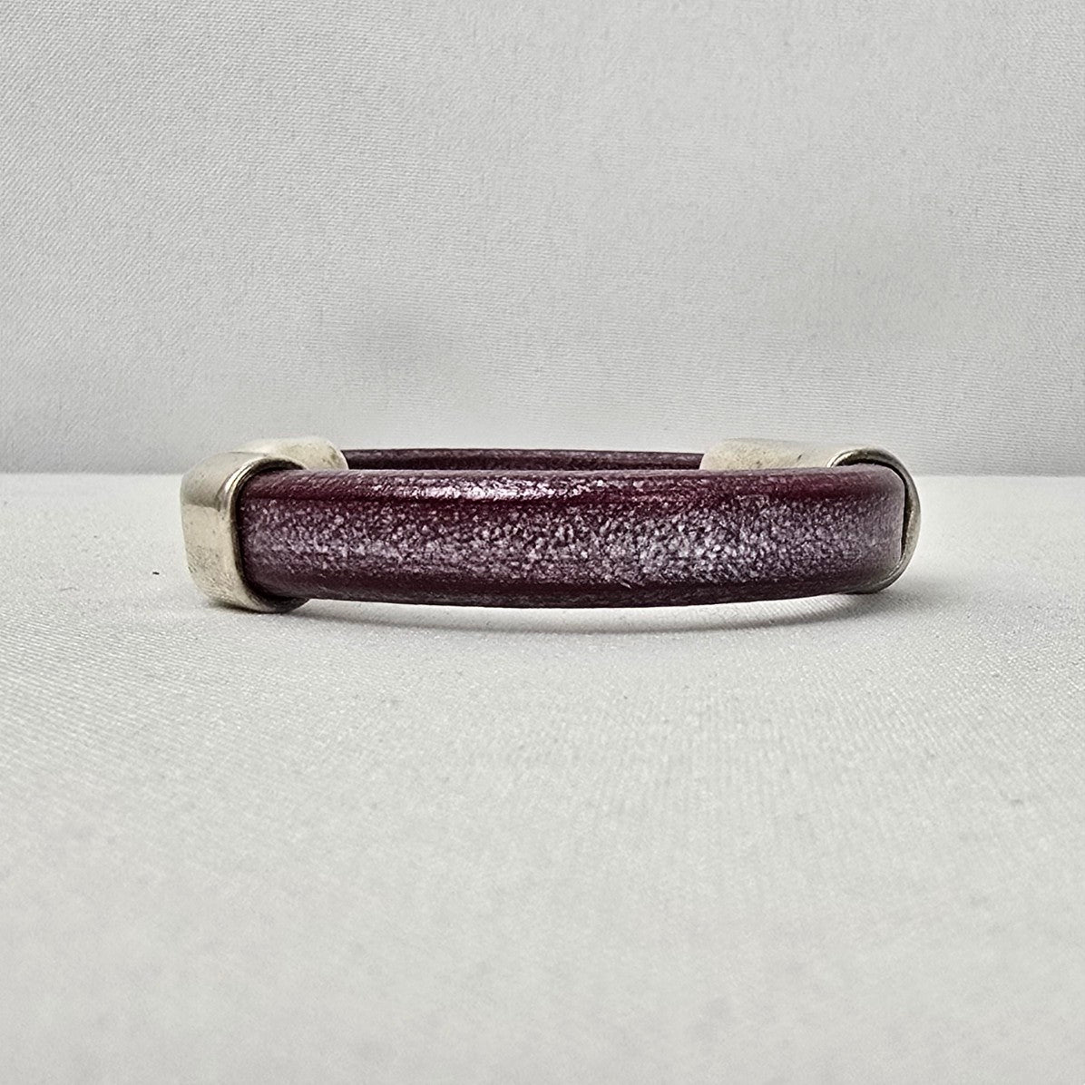 Sterling Silver Crystal Stud Purple Leather Bracelet