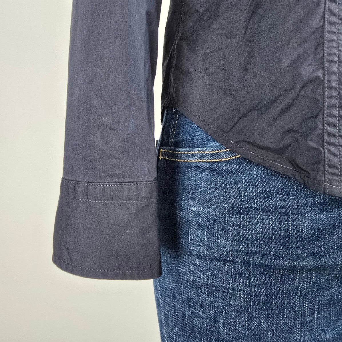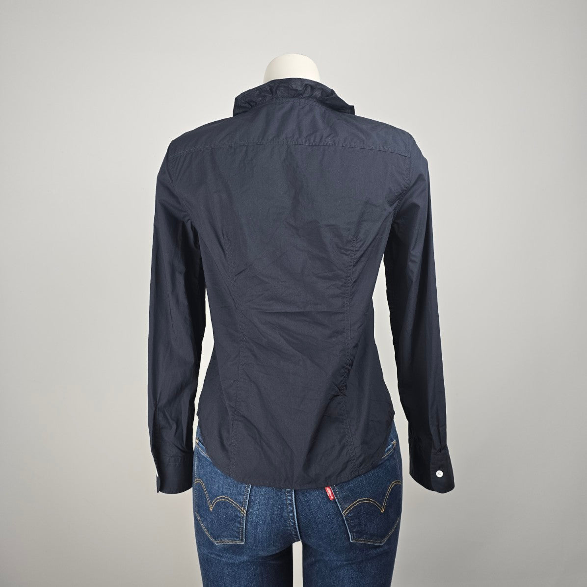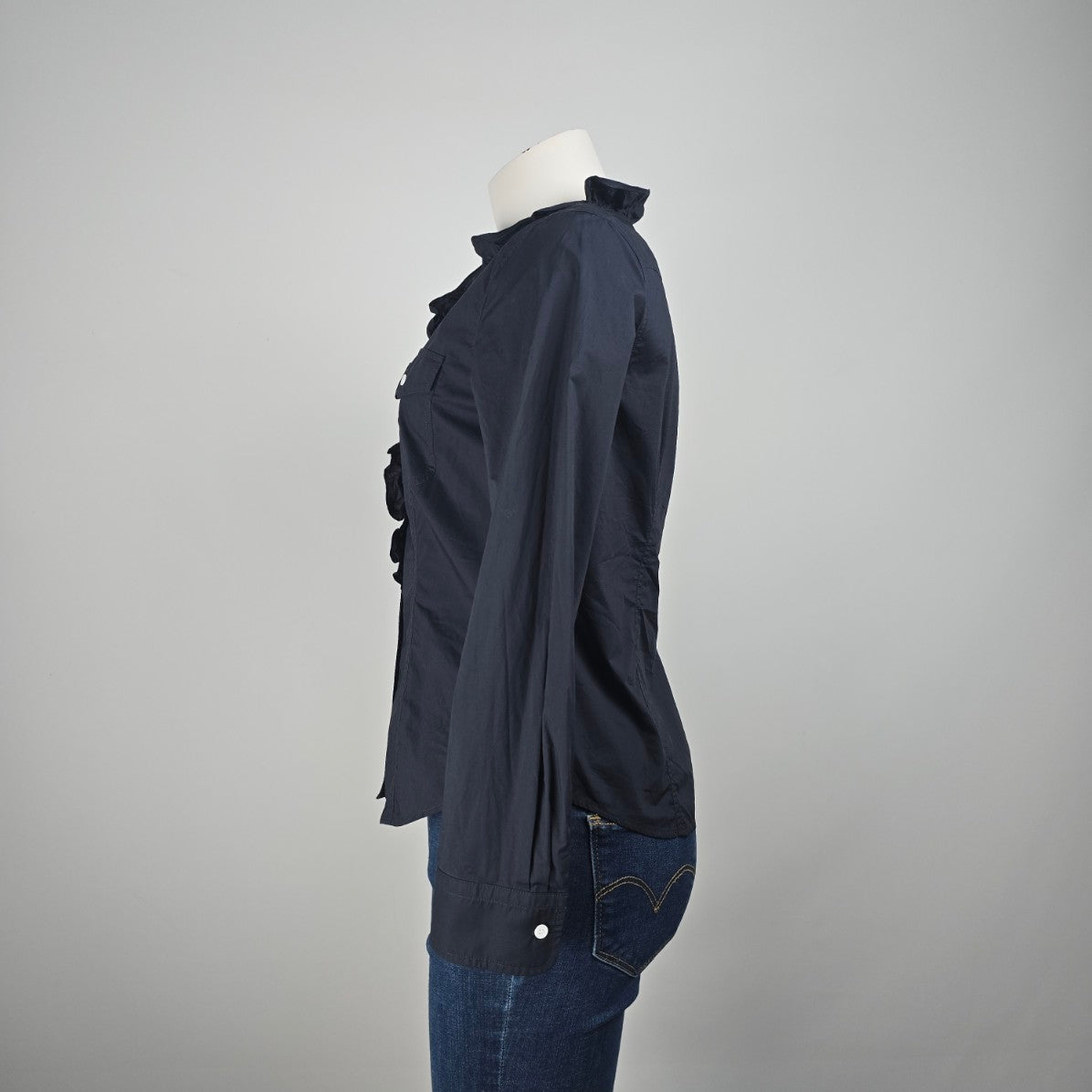 Talbots Petites Navy Blue Cotton Ruffle Detail Button Up Blouse Size 6p