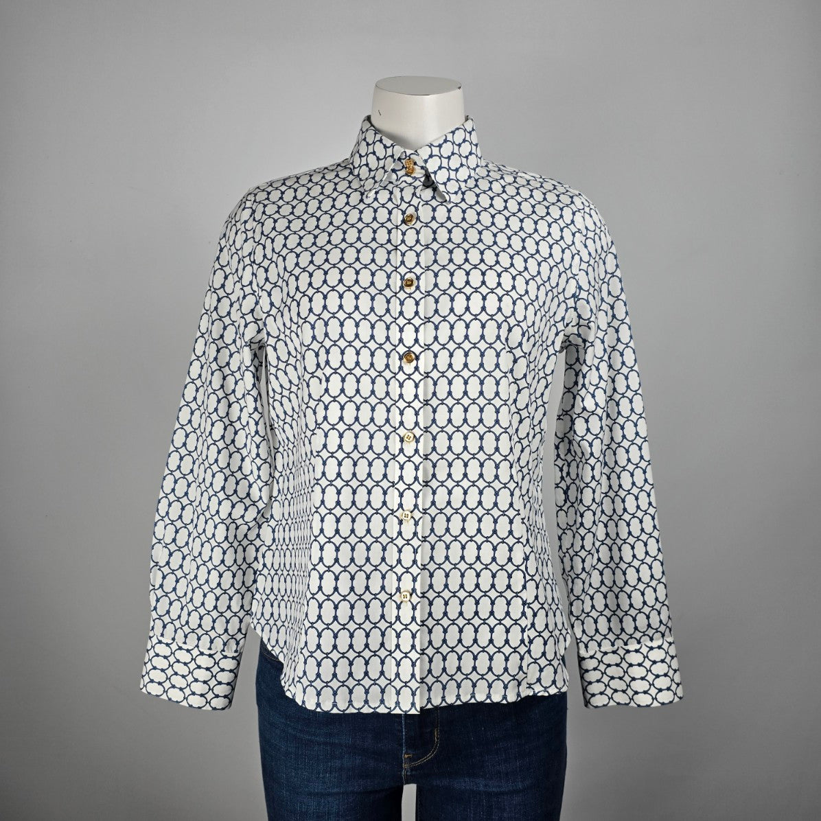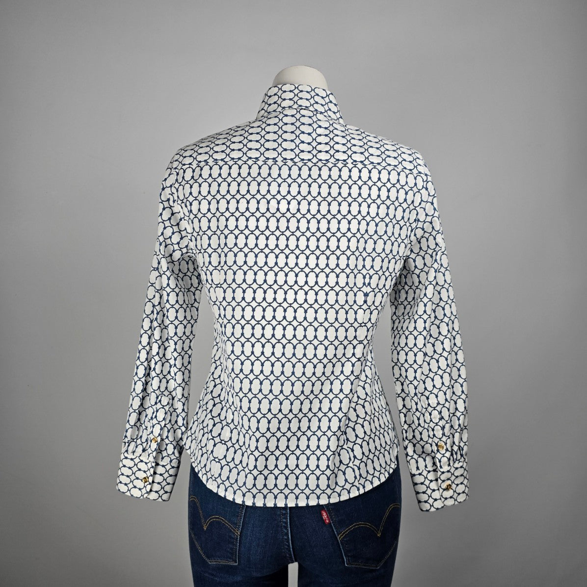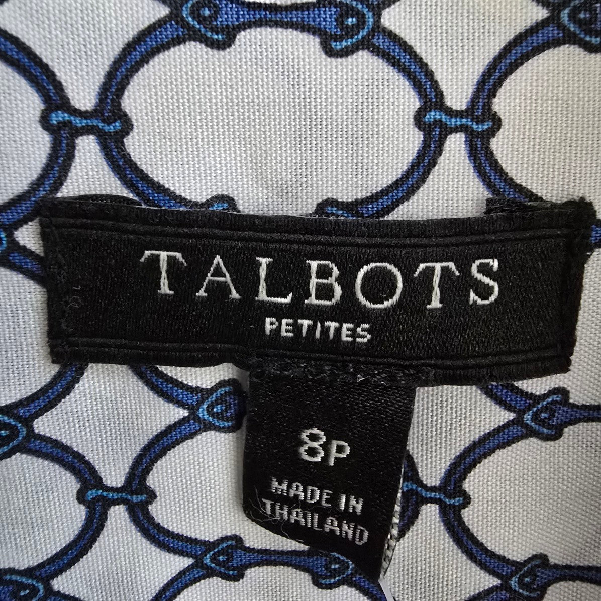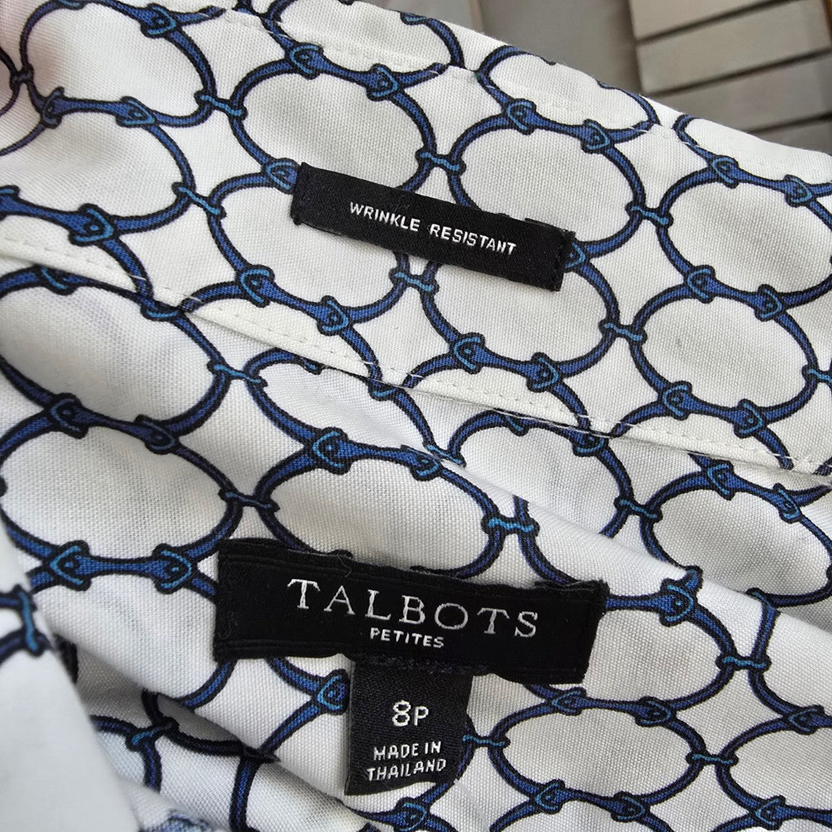 Talbots Petites White Chain Print Cotton Button Up Blouse Top Size 8p
