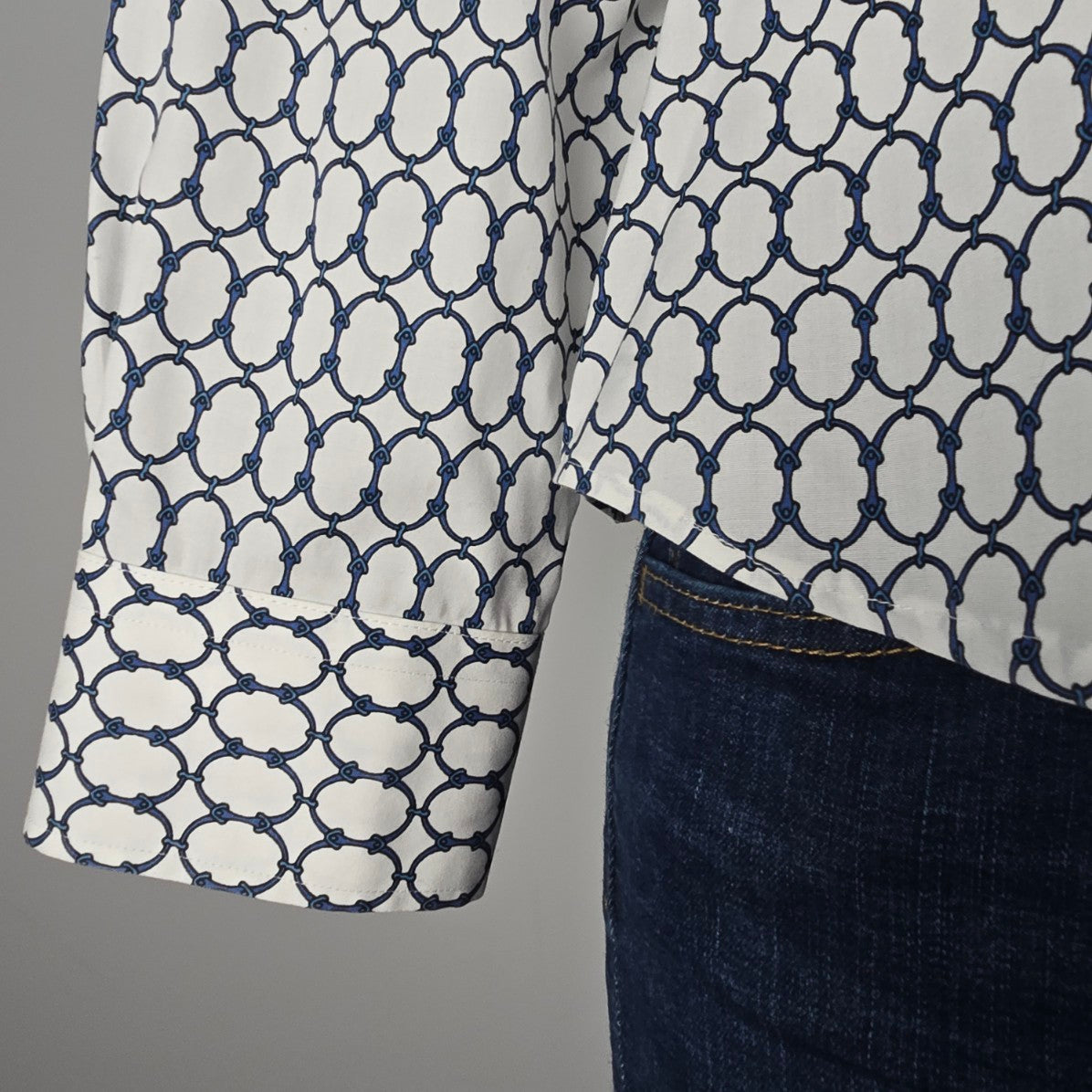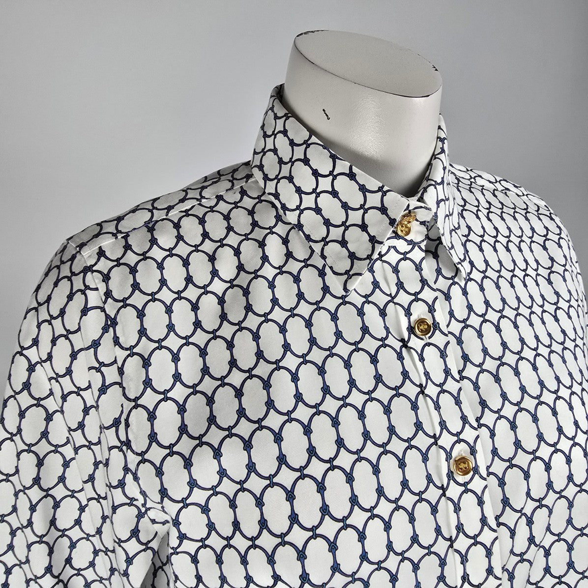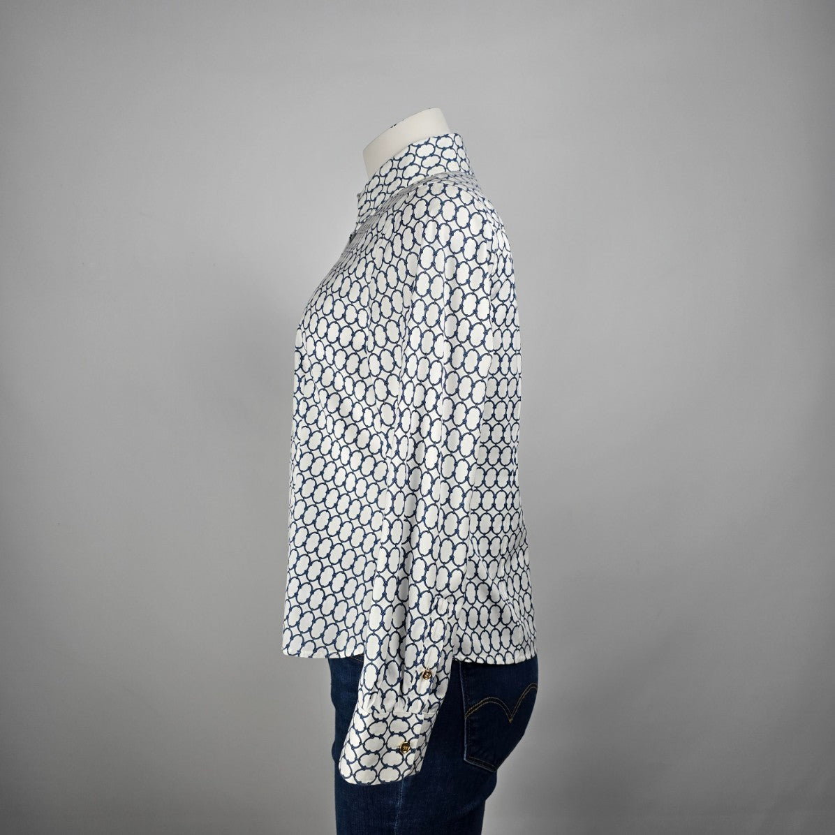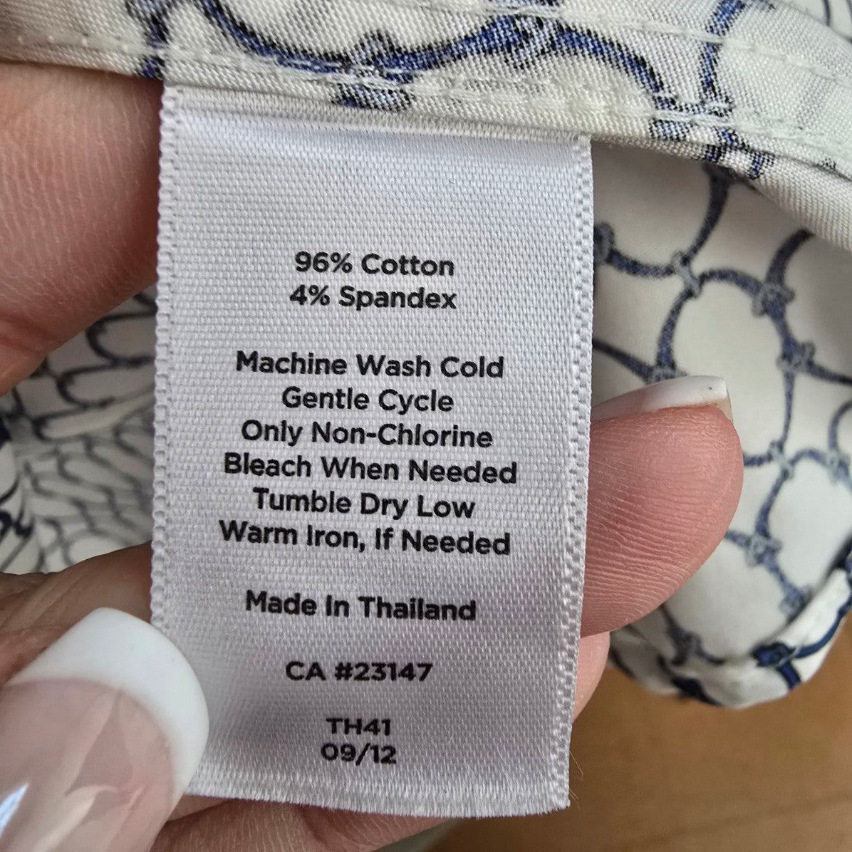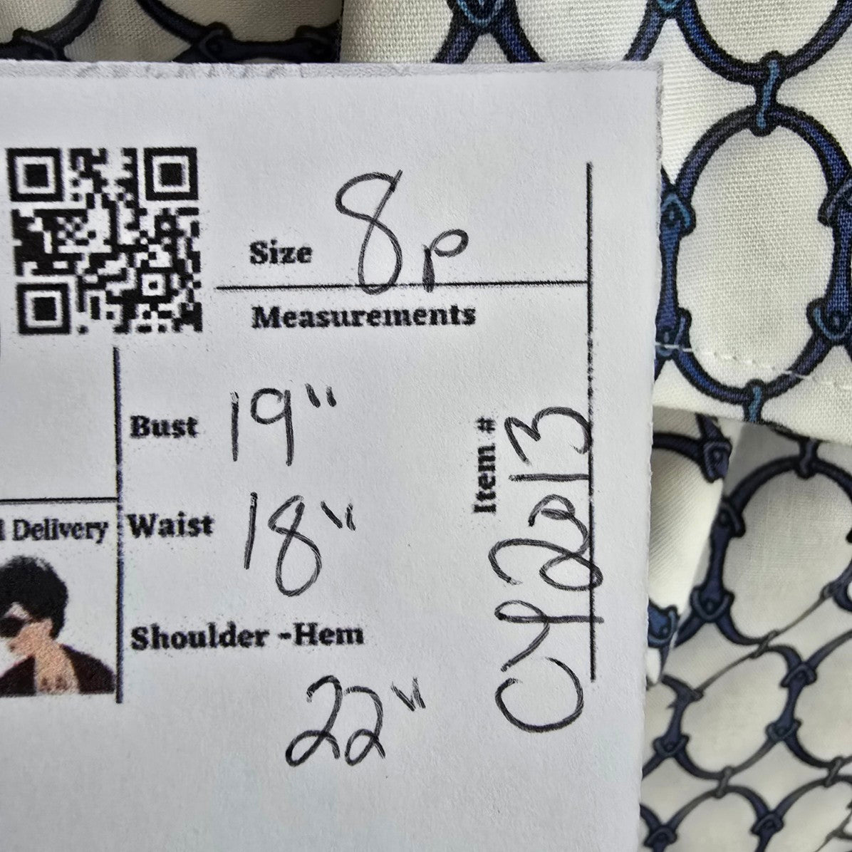 Talbots Petites White Chain Print Cotton Button Up Blouse Top Size 8p