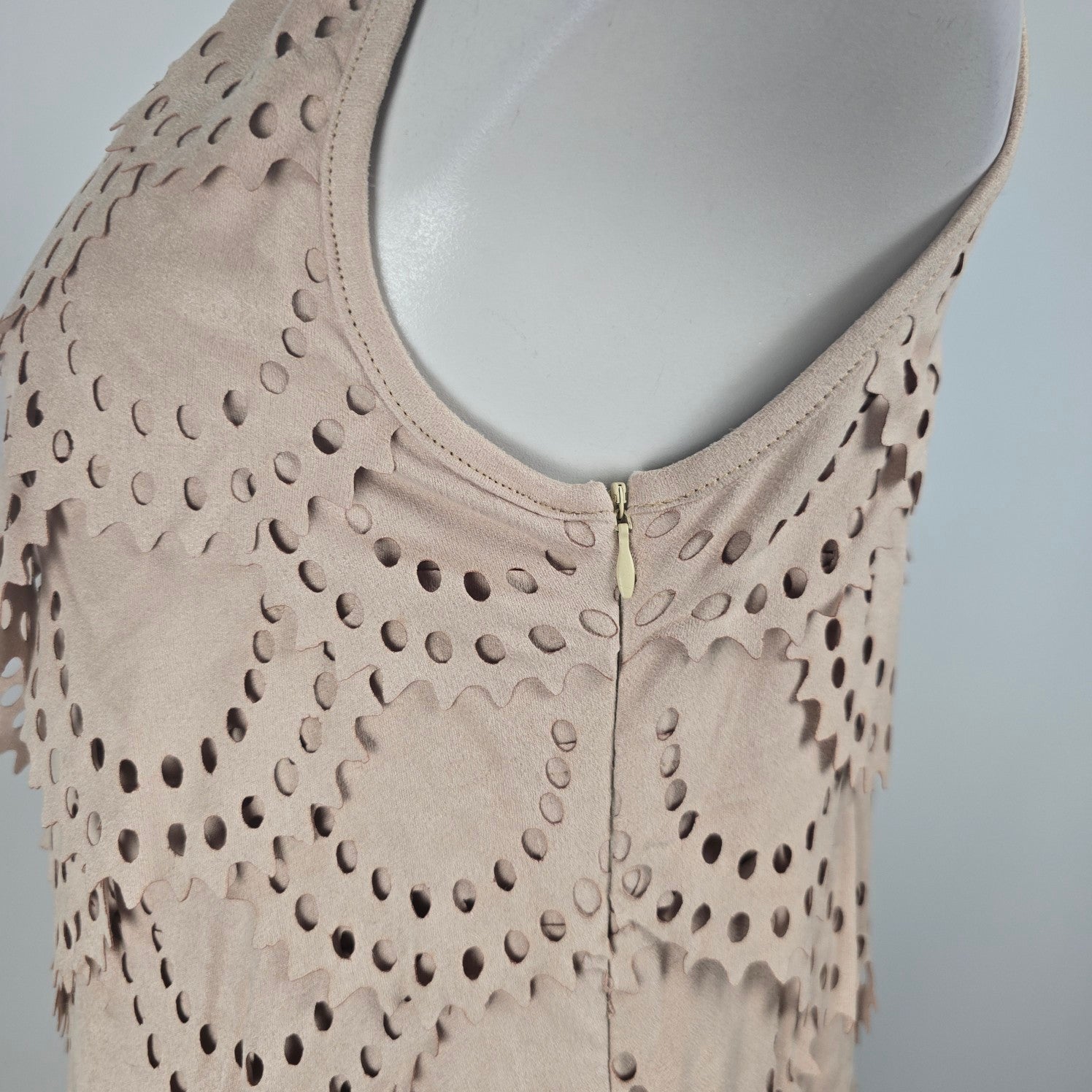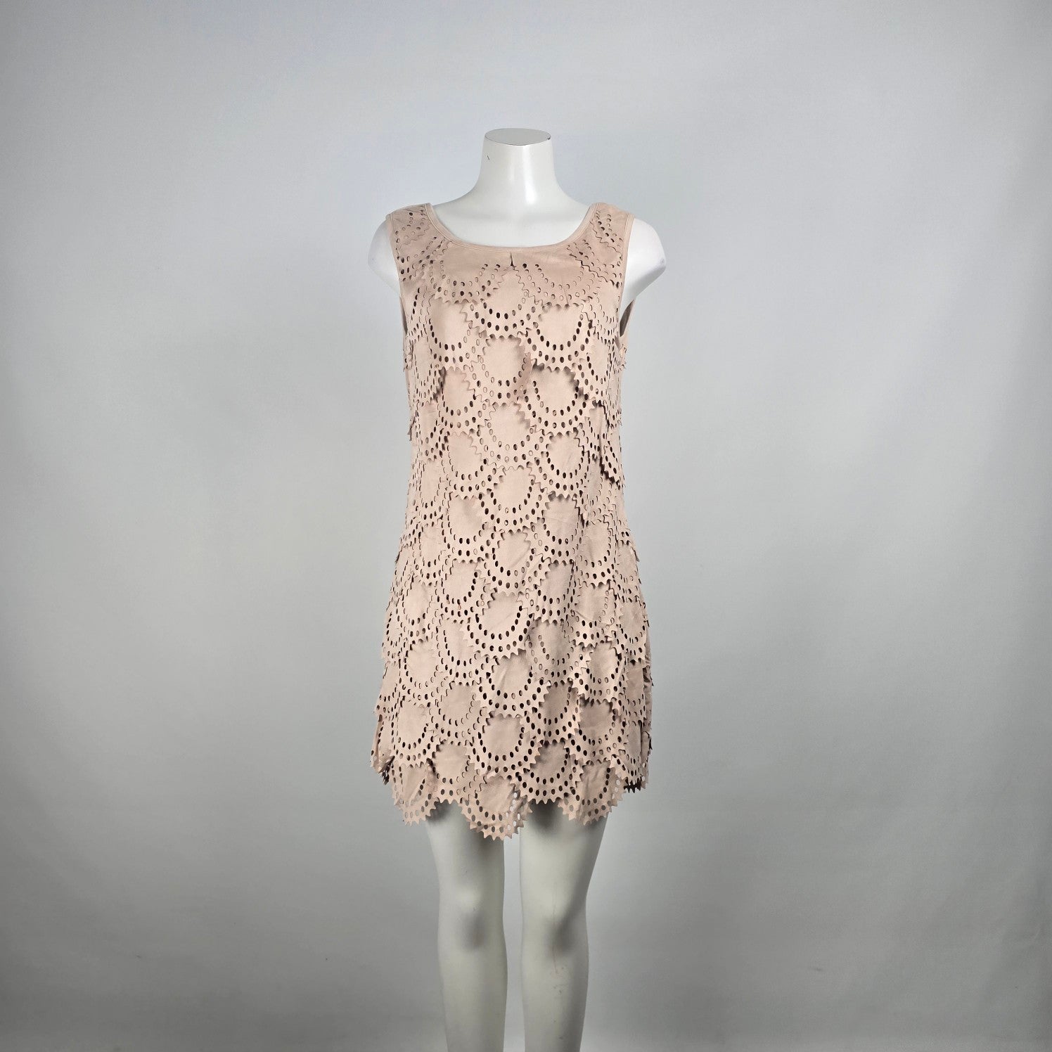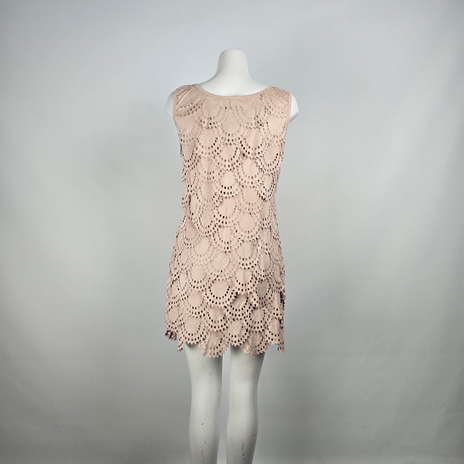 Tata Jolie Cream Faux Suede Laser Cut Scalloped Mini Dress Size L