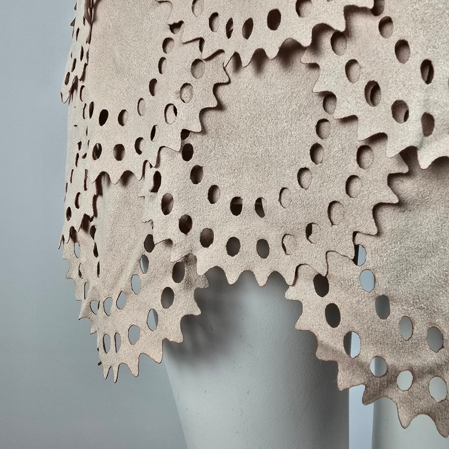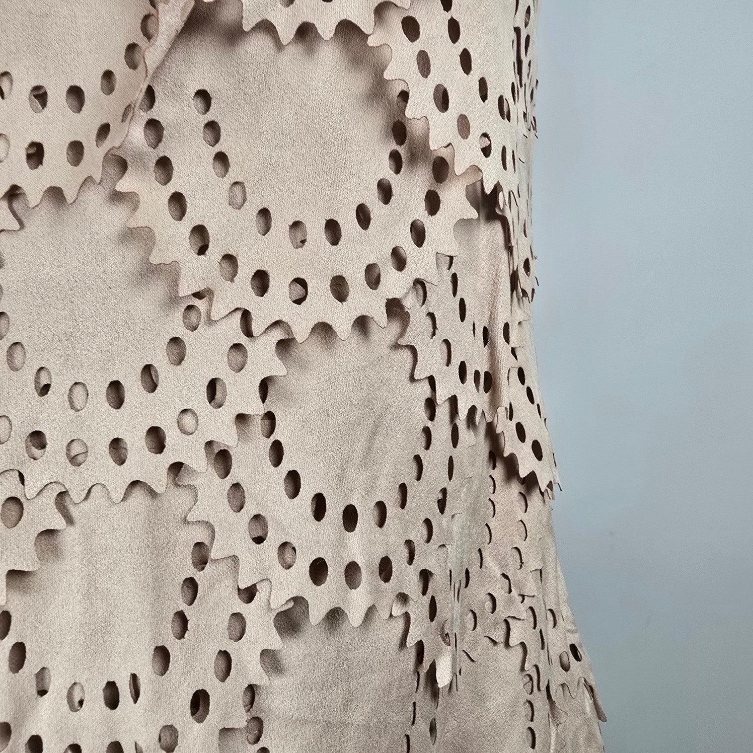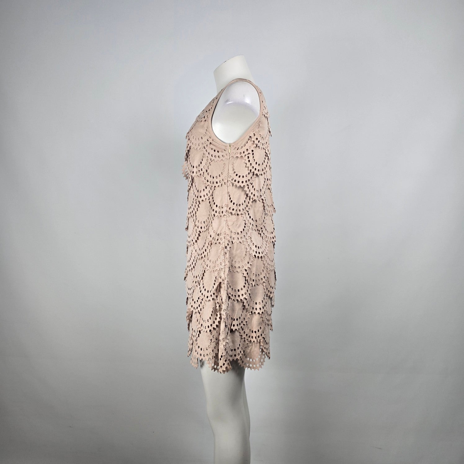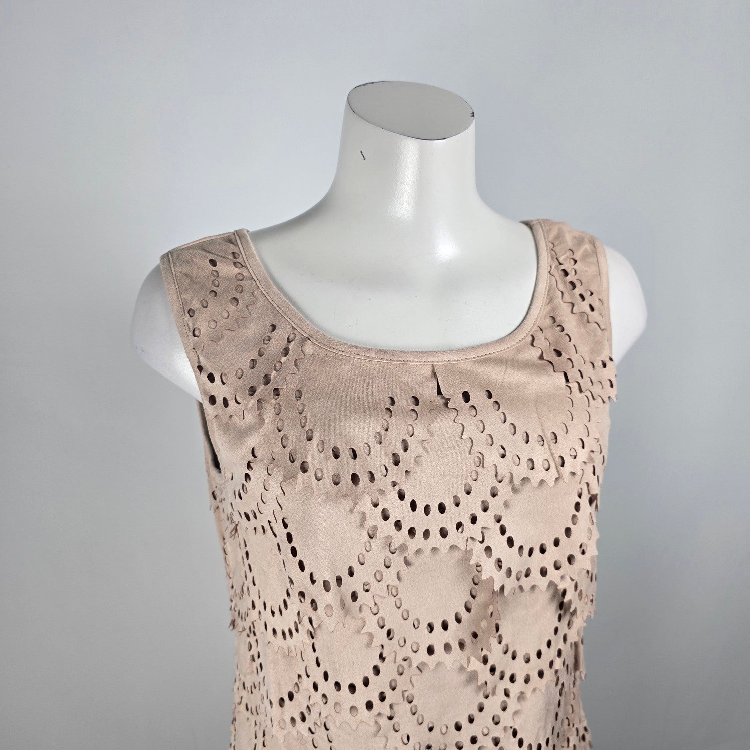 Tata Jolie Cream Faux Suede Laser Cut Scalloped Mini Dress Size L
