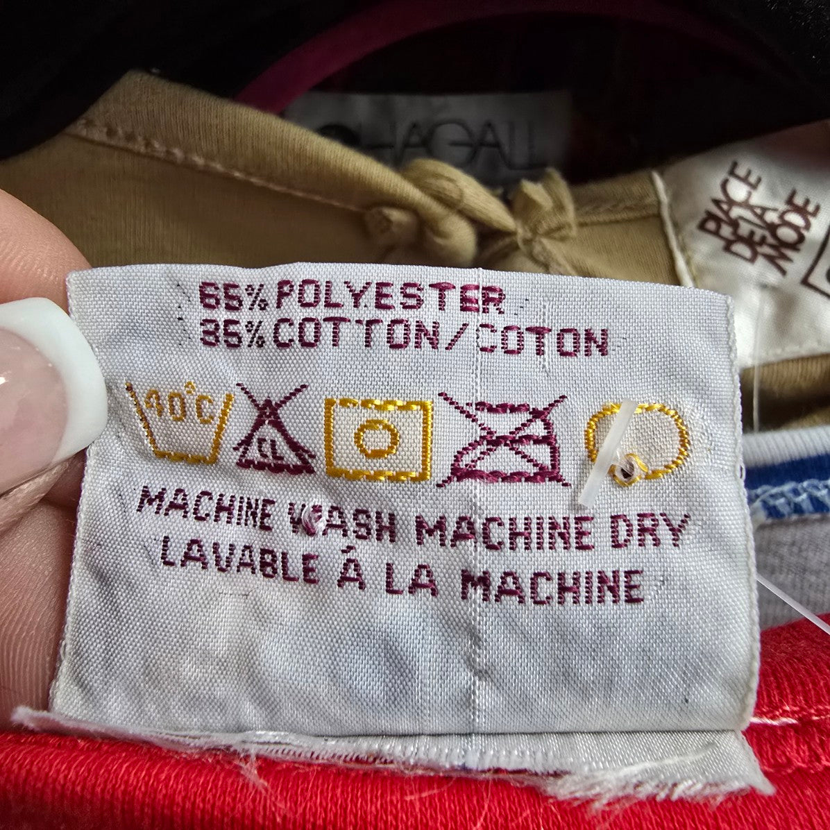 See last photos for fabric content and approximate FLAT measurements, compare our measurements to something in your closet to see if it will fit.
