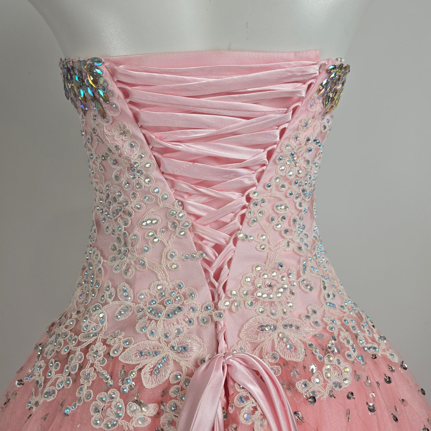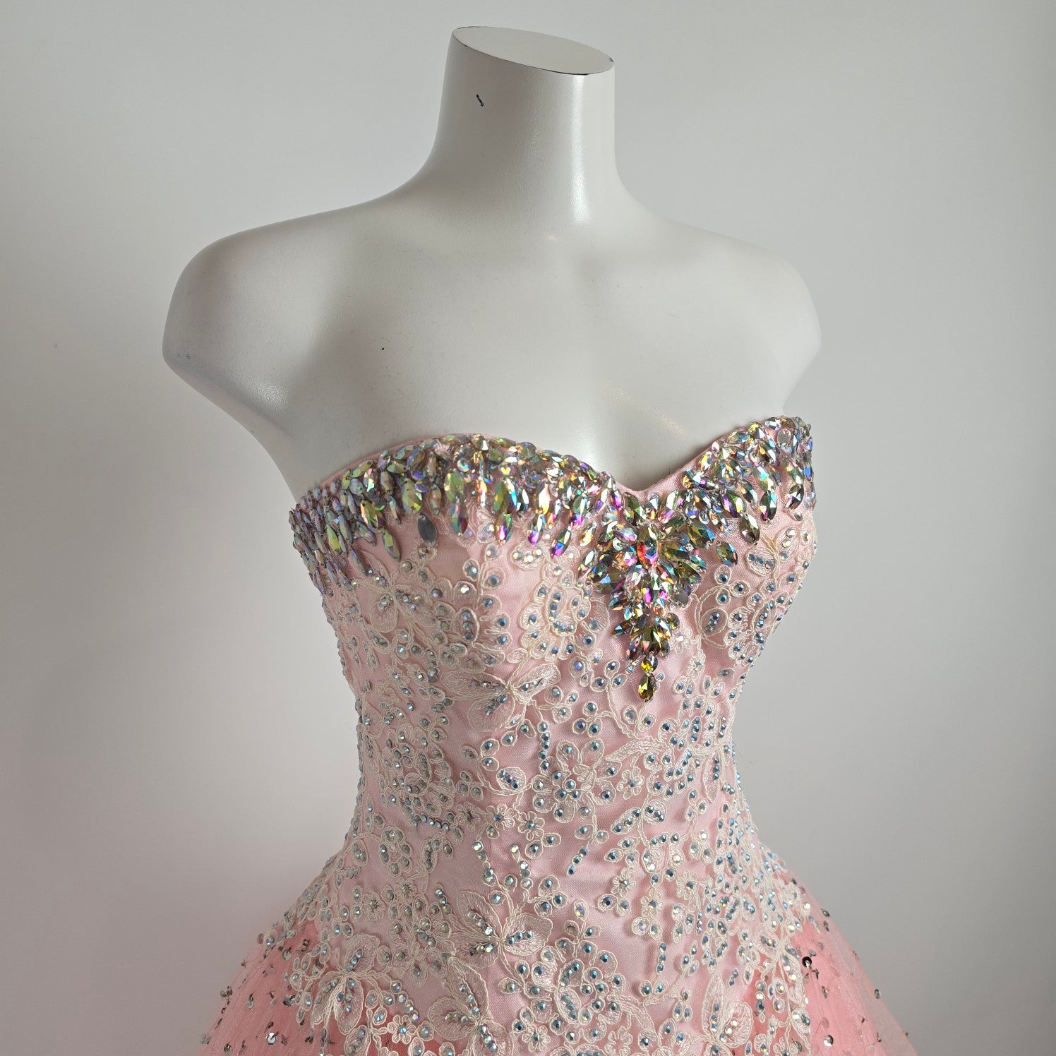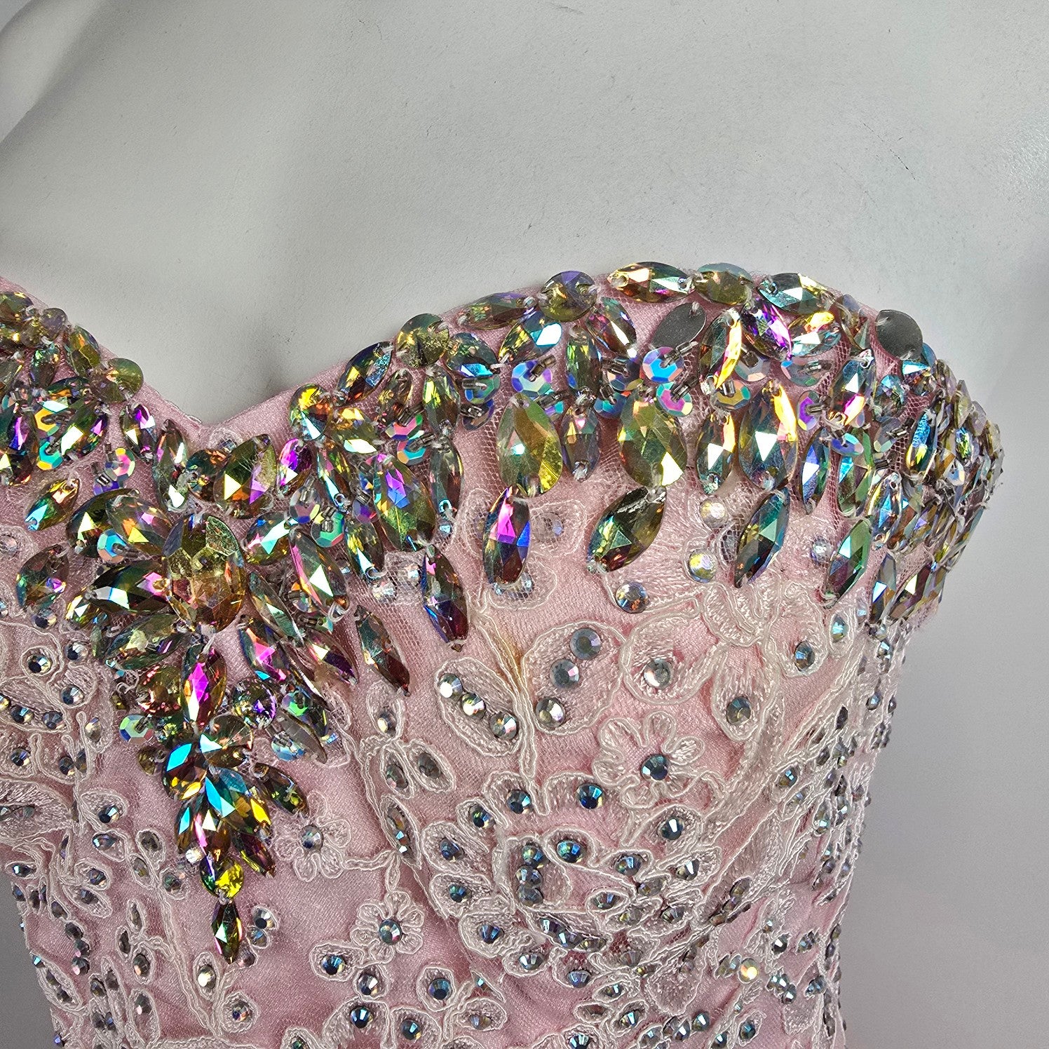 Tiffany Pink Rhinestone Tulle Grad Event Gown Size 4