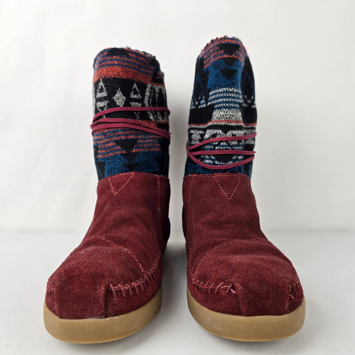 TOMS Nepal Burgundy Suede Aztec Print mid-calf Boots Size 8.5