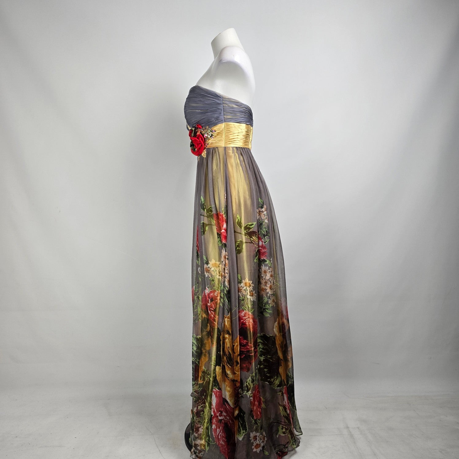Tony Bowls Evening Grey Floral Grad Event Gown Size 12