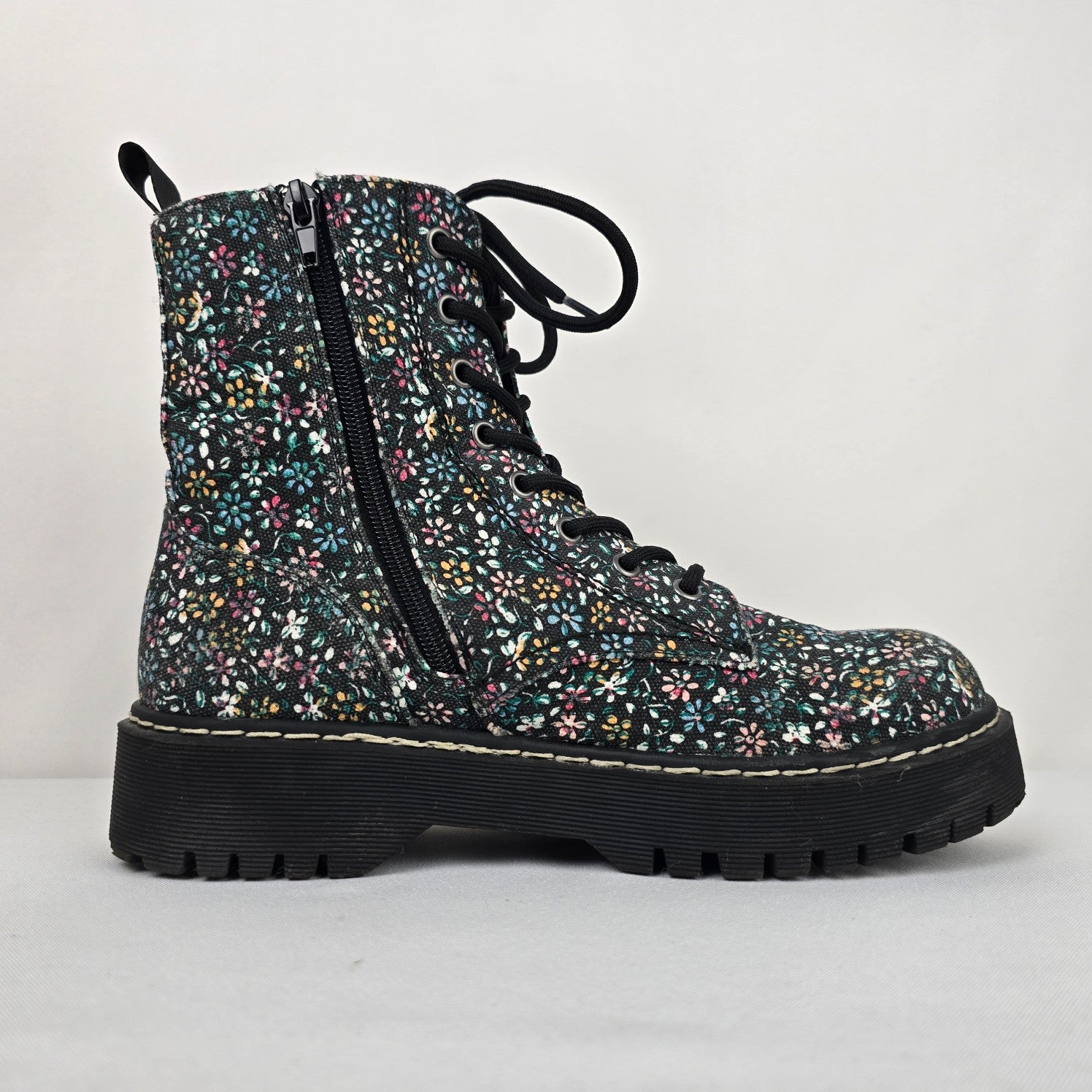 Union Bay Floral Lace Up Military Inspired Boots Size 8