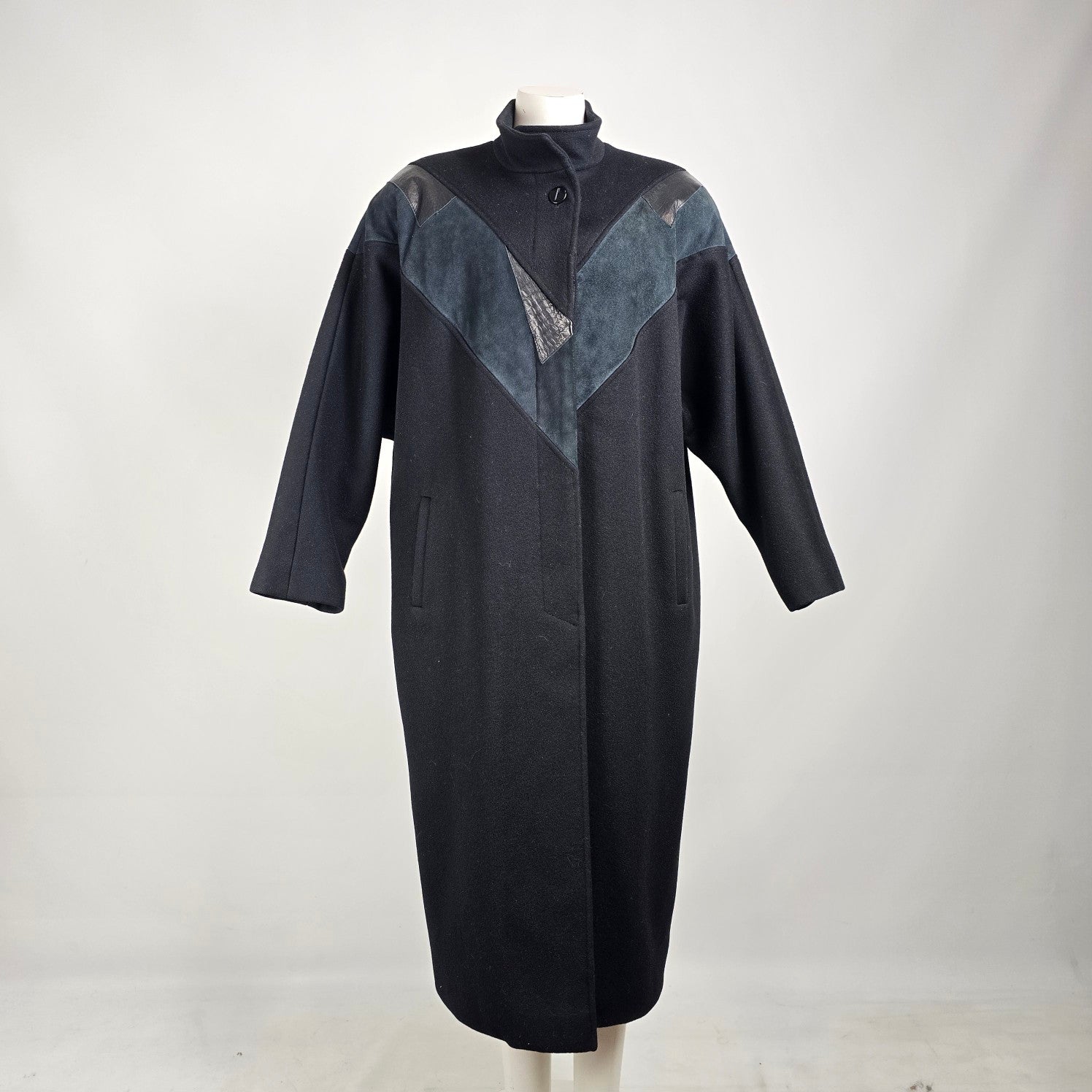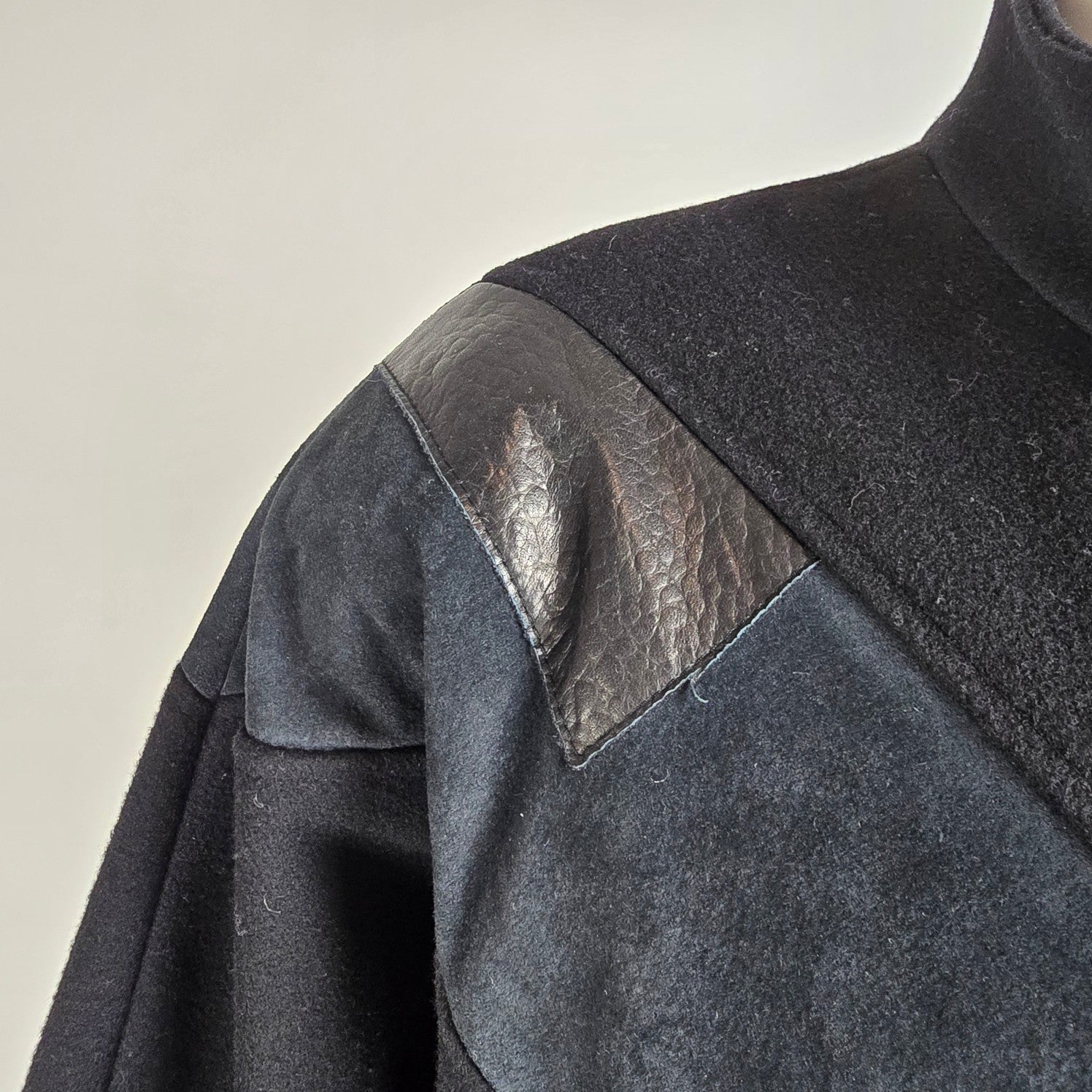 Vintage 80s Black & Grey Wool Suede Button Up Jacket Size XL