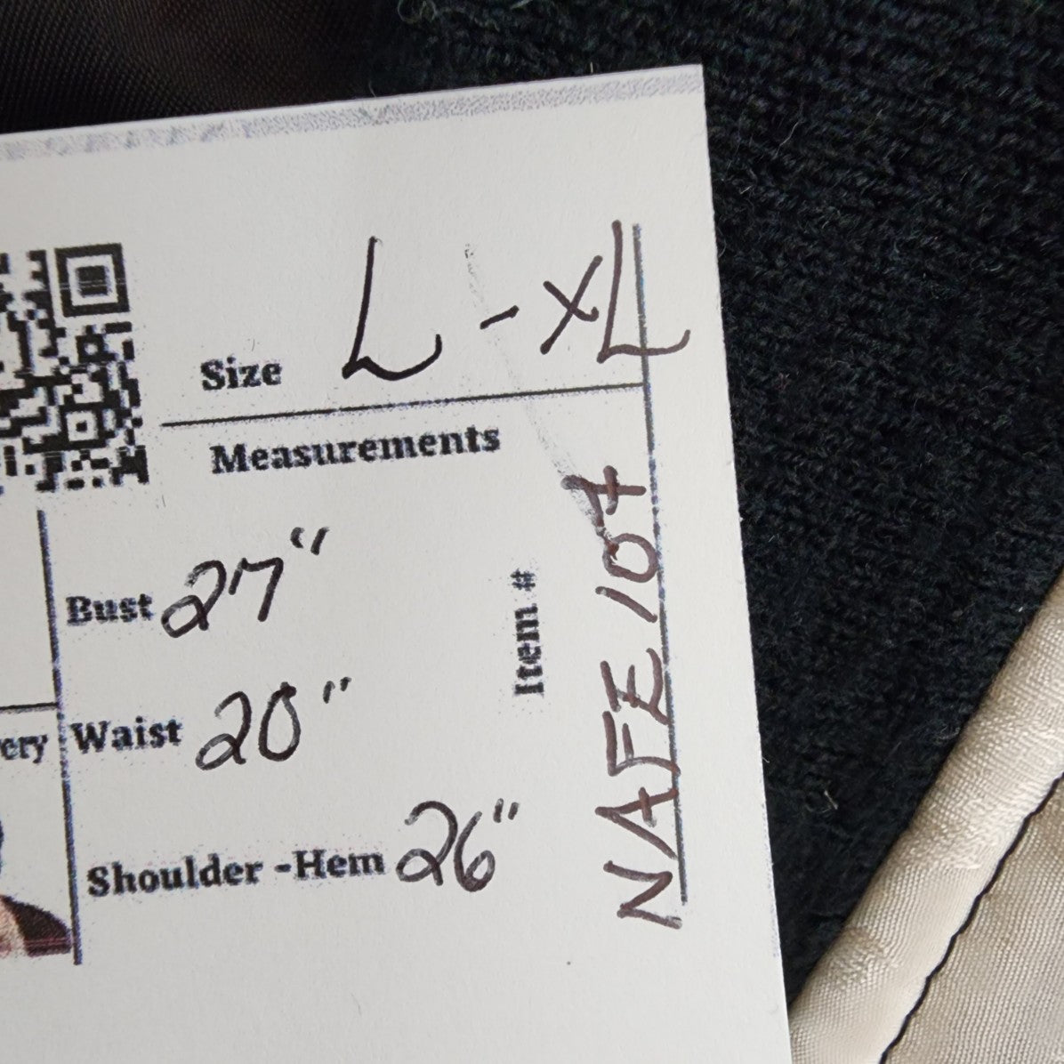 See last photos for fabric content and approximate FLAT measurements, compare our measurements to something in your closet to see if it will fit.
