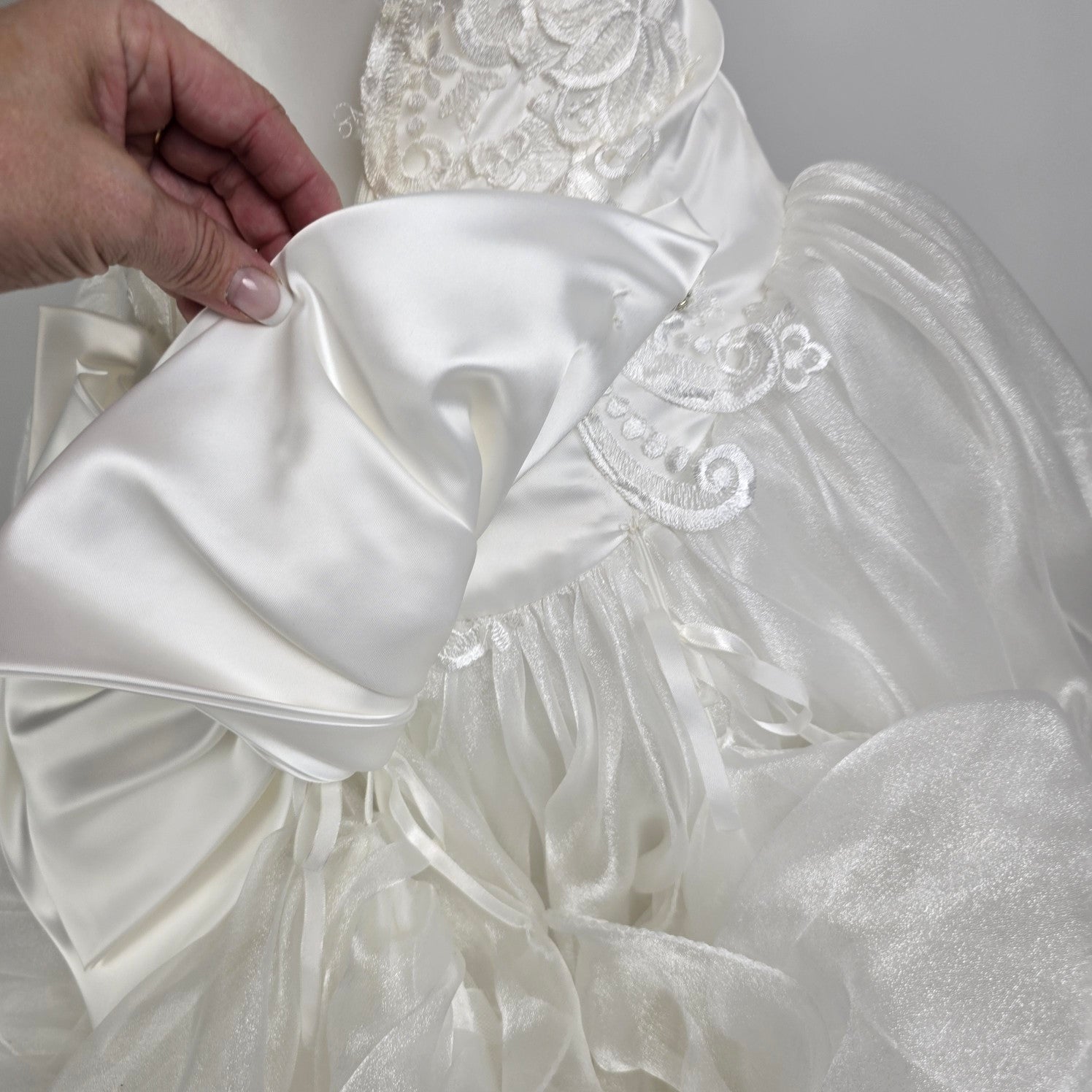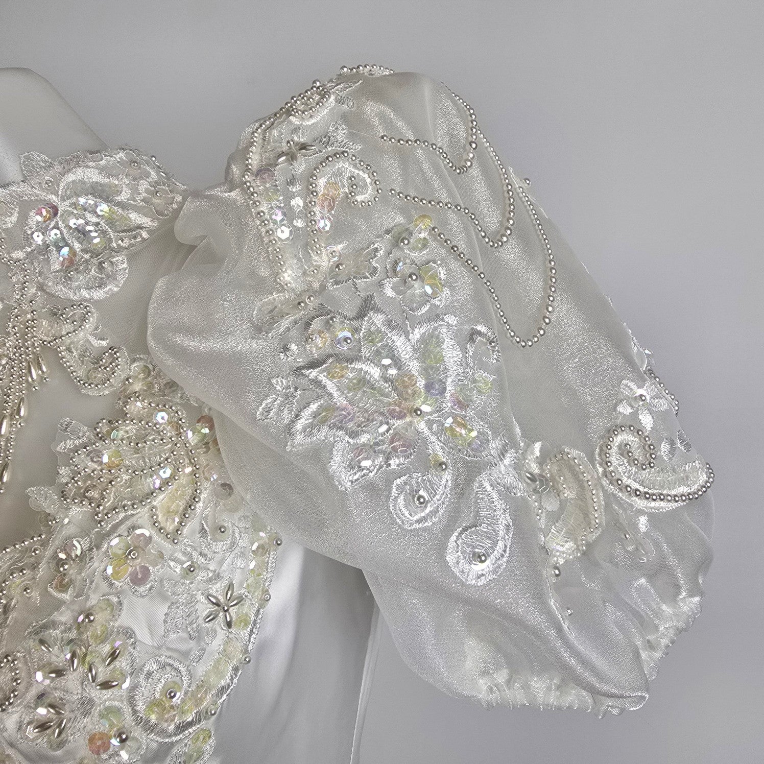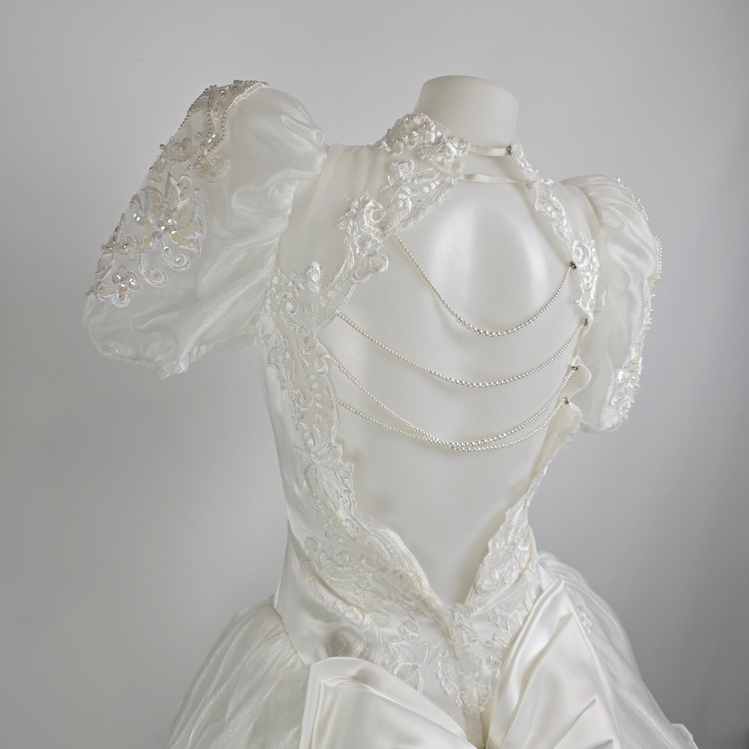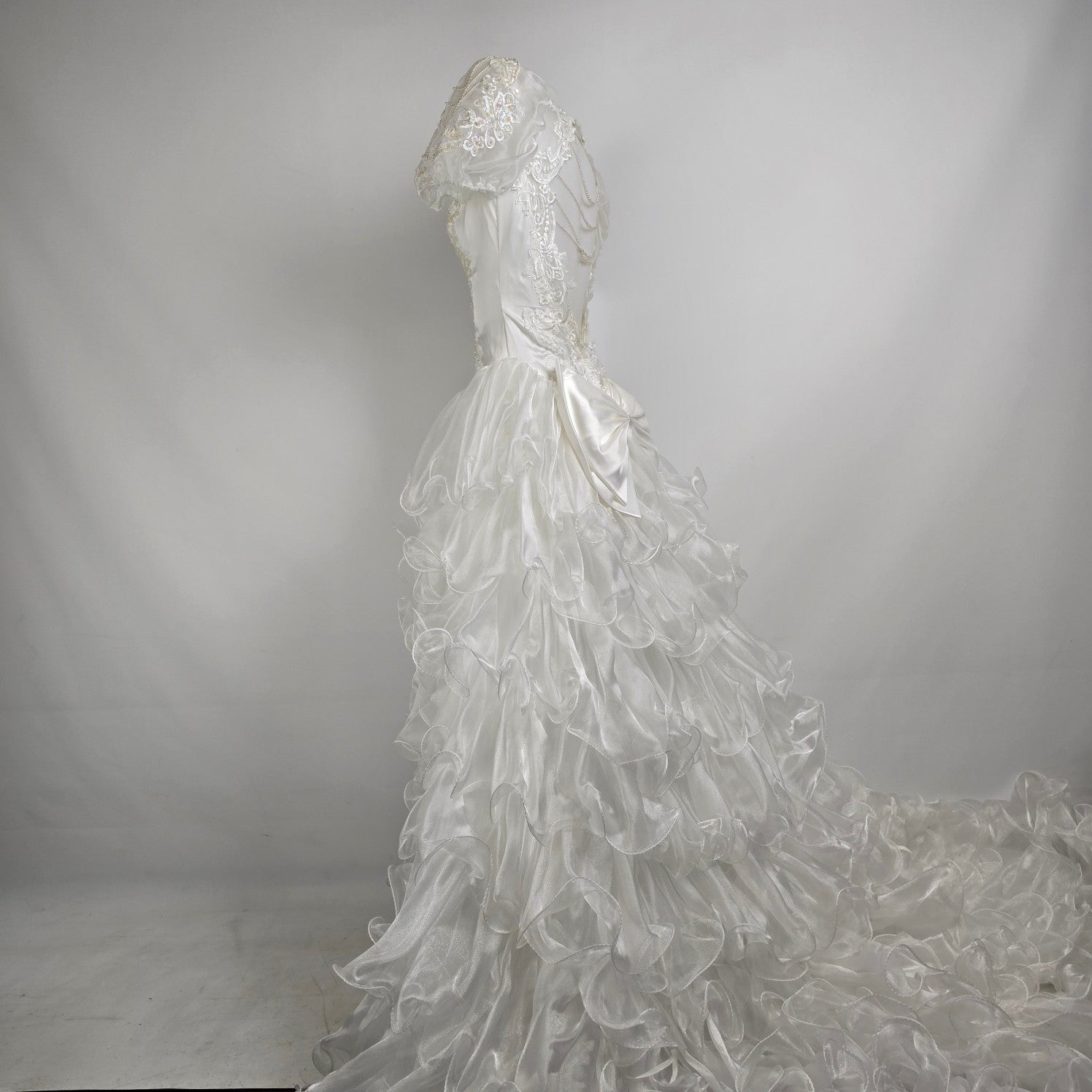Vintage 80s White Lace Ruffle Skirt Beaded Wedding Gown Size XS