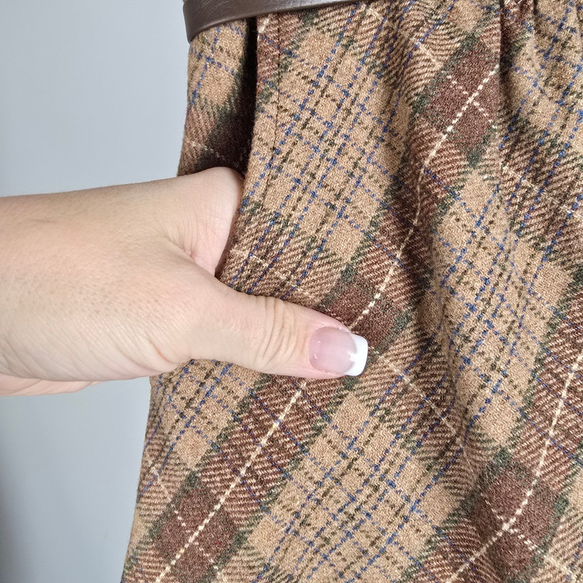 Vintage Act lll Brown Plaid Belted Midi Skirt Size M