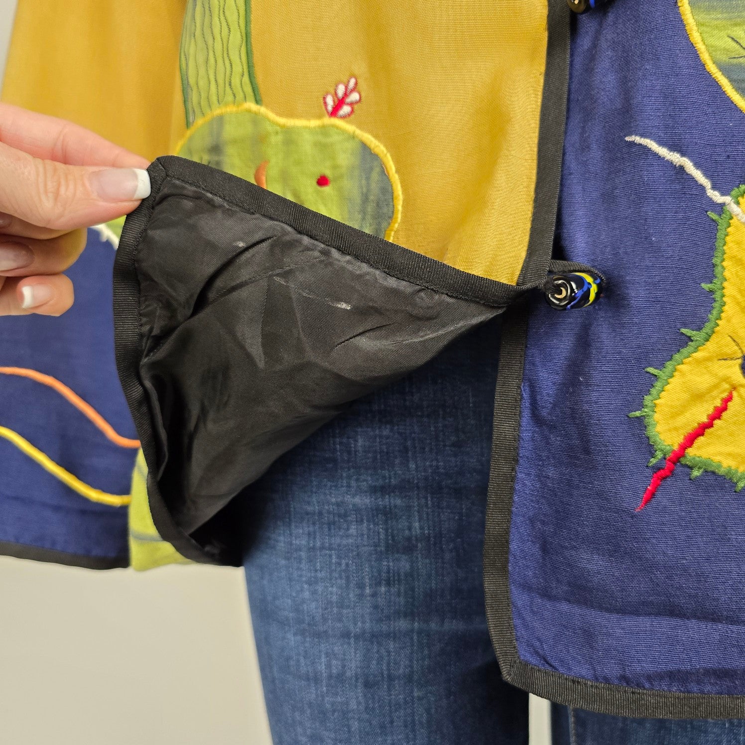 Vintage Allure Cactus Embroidered Glass Buttons Light Jacket Size M/L