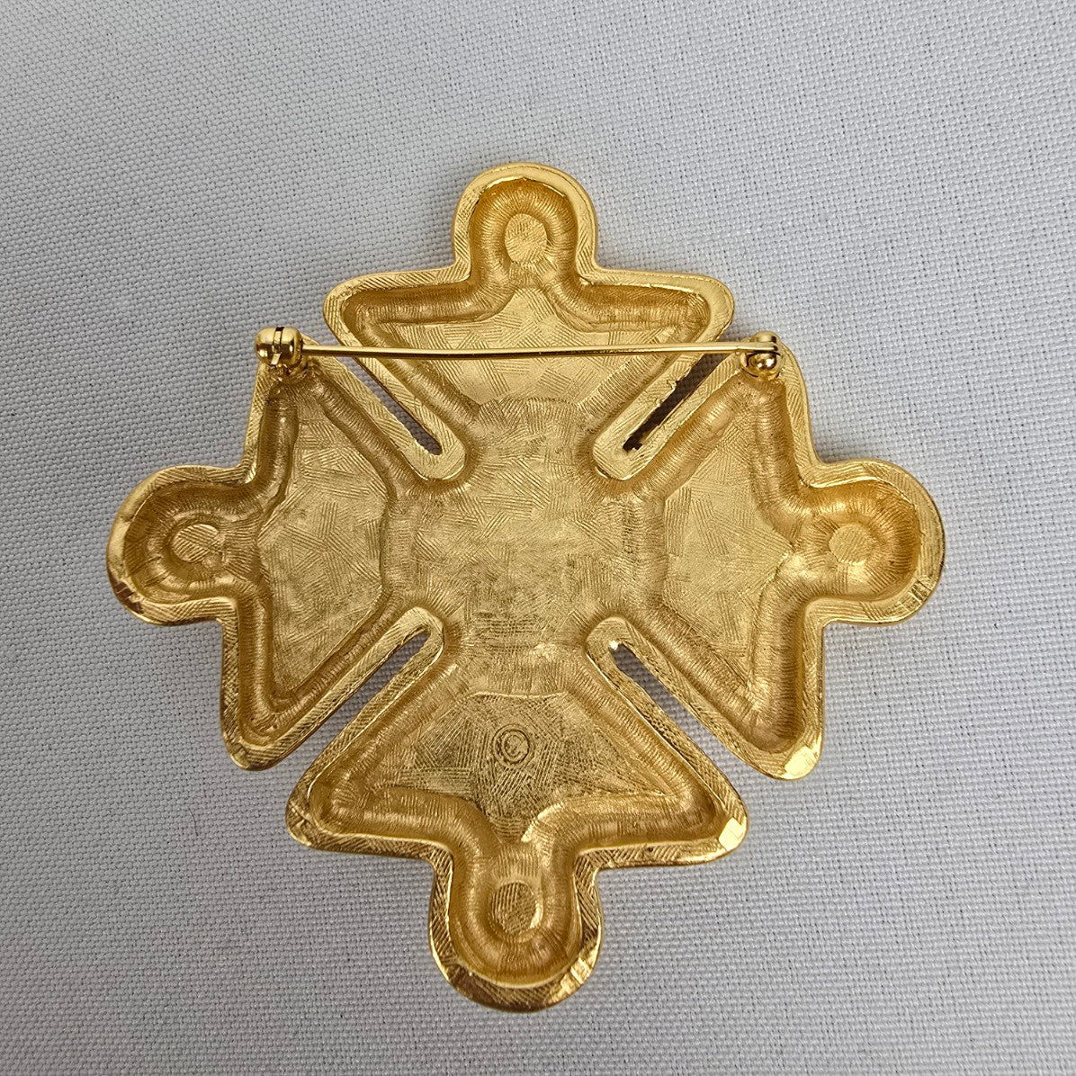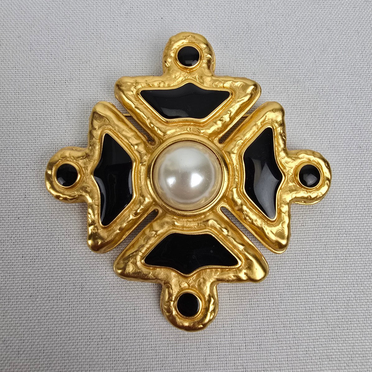 Vintage Anne Klein Maltese Cross Black Enamel And Pearl Brooch