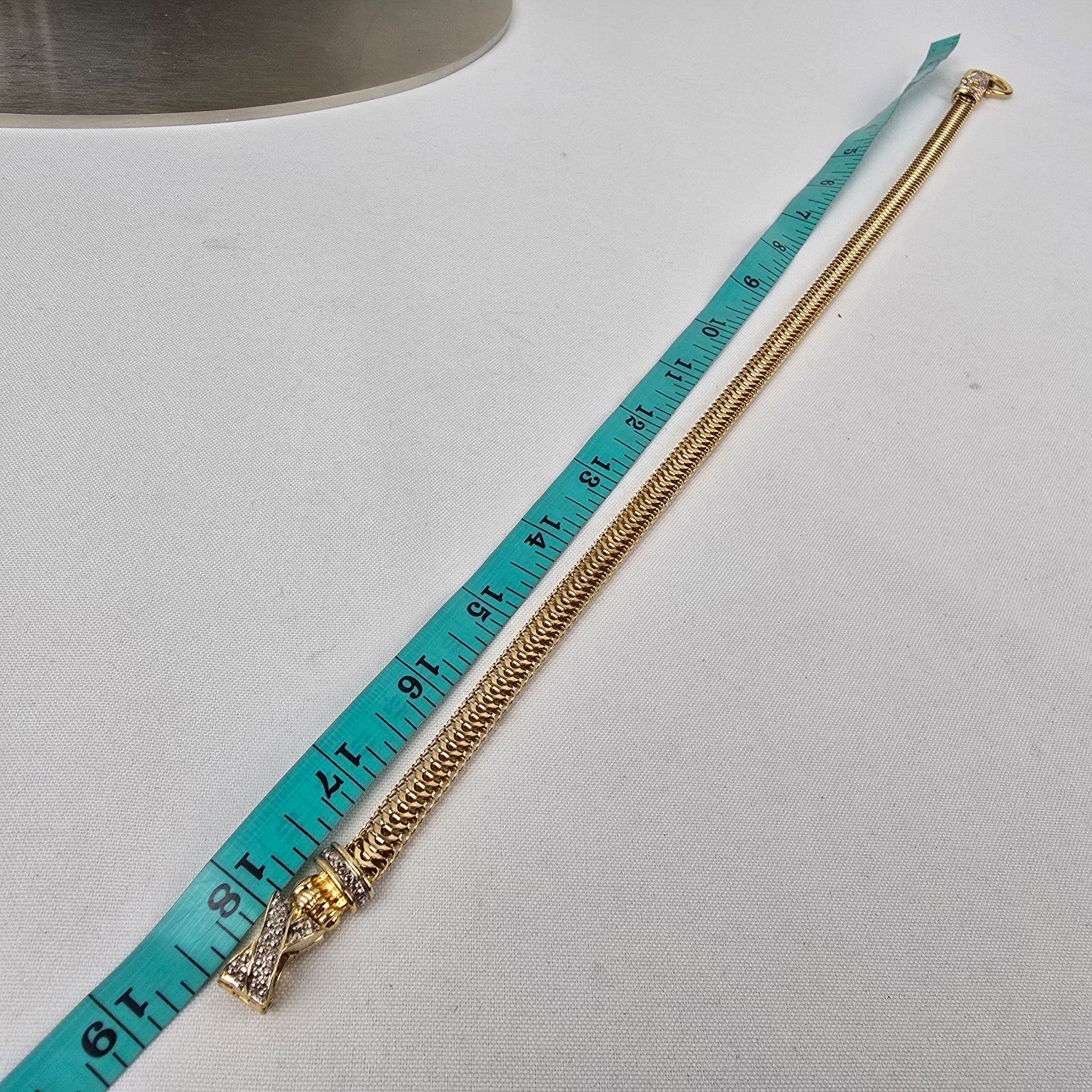 See last photo for length or size measurements, compare our measurements to something in your jewelry box to know if this piece will work for you.