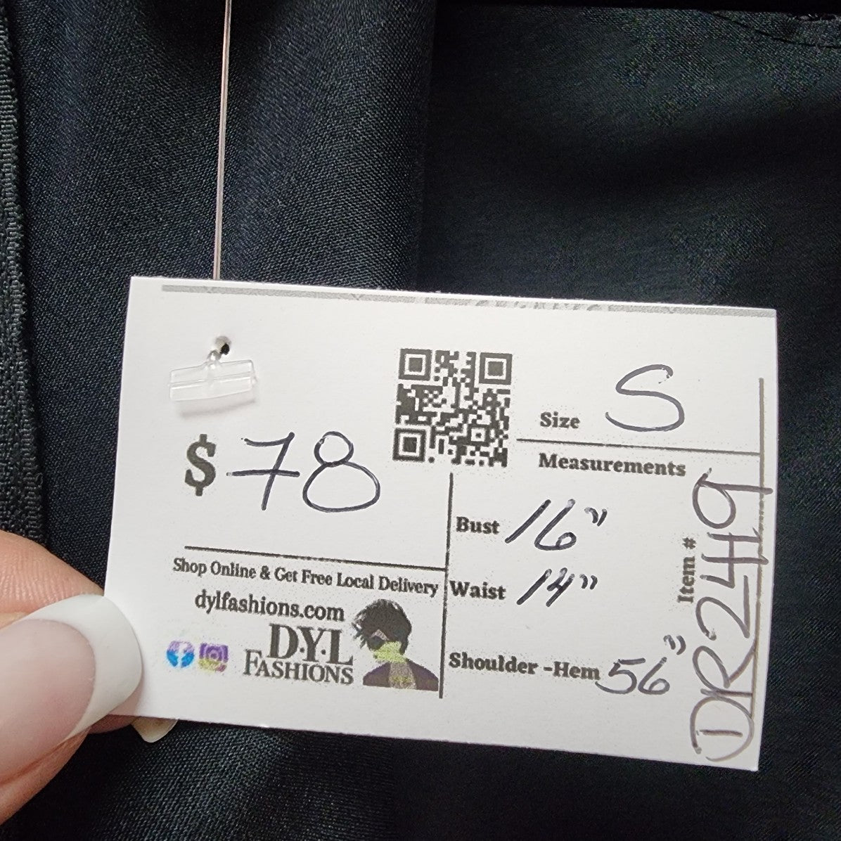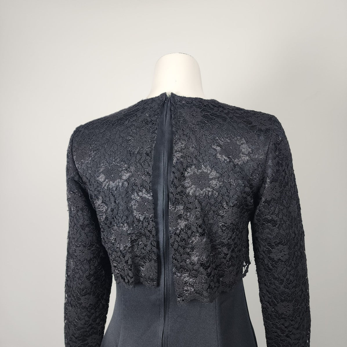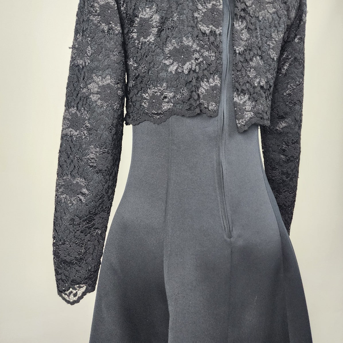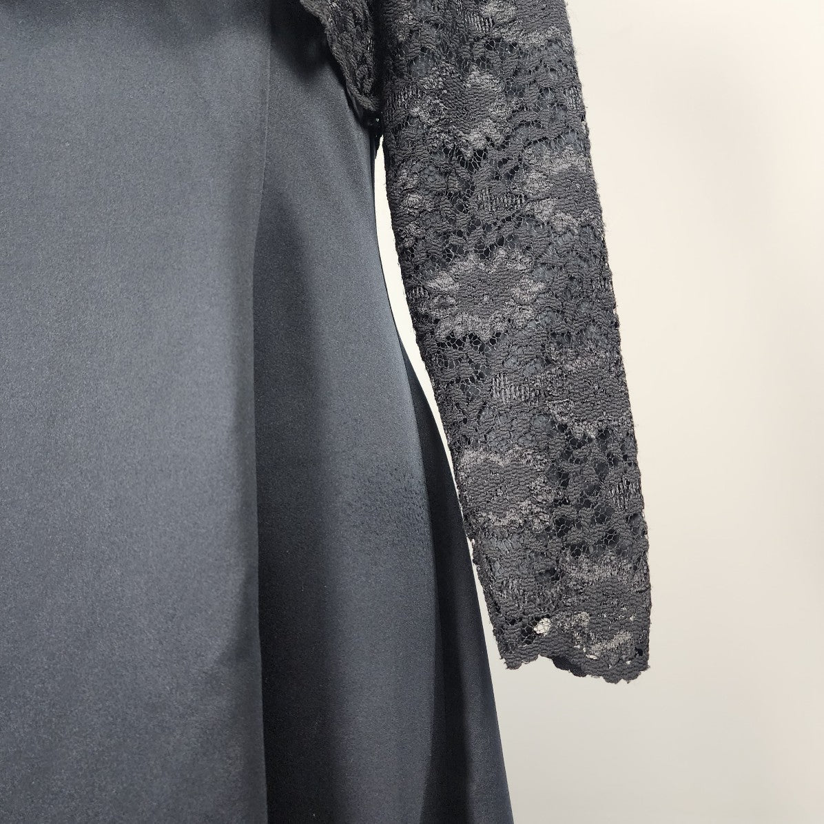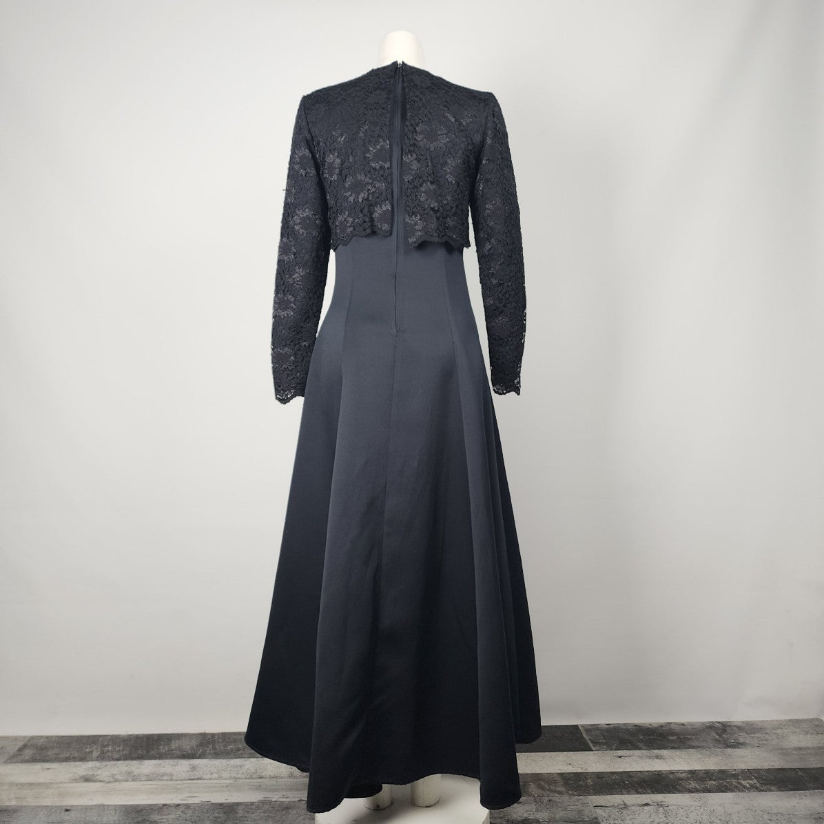 Vintage Black Satin Lace Overlay Long Sleeve Gown Size S