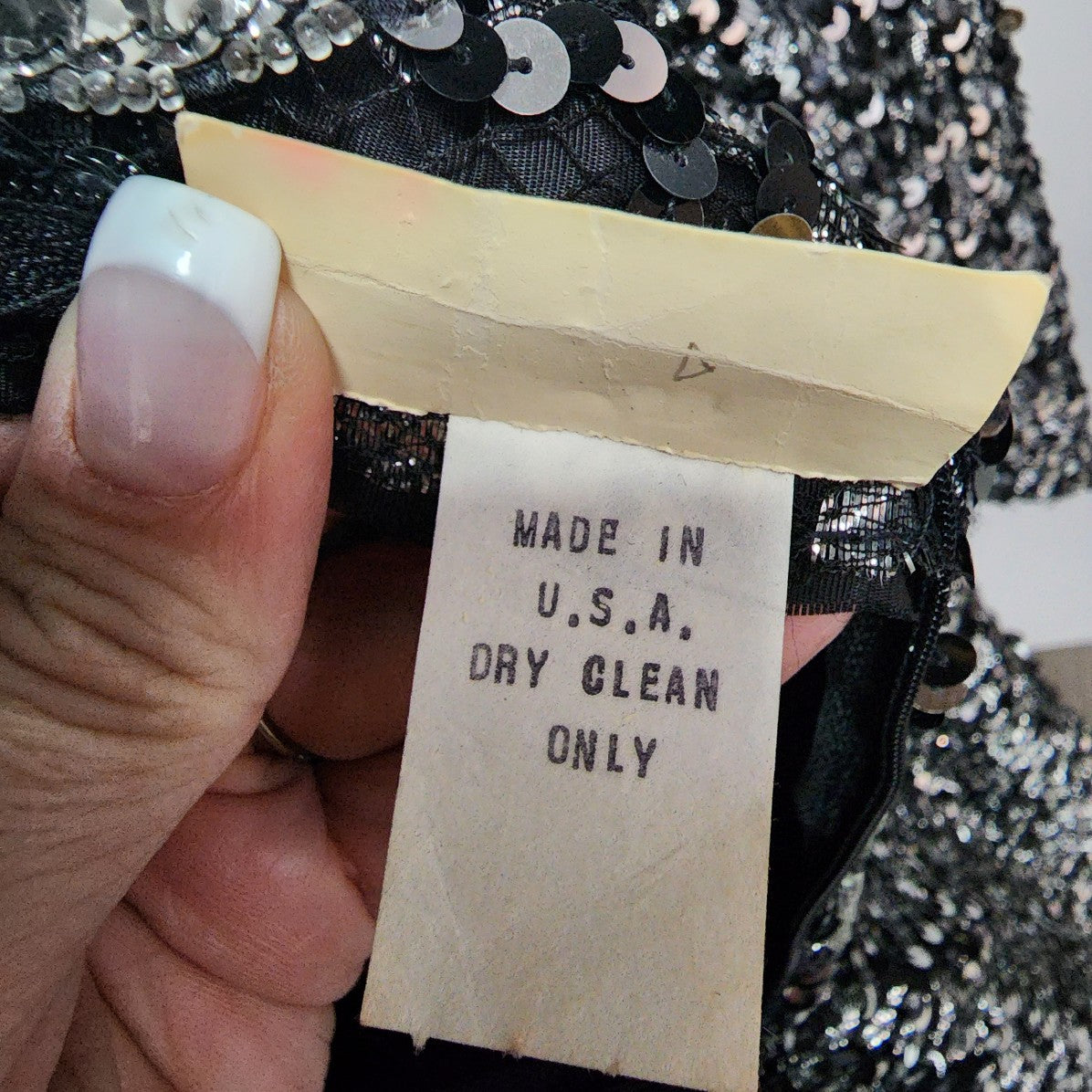 Vintage Black & Silver Metallic Sequined Long Gown Size S Worn At Billy Martin's Wedding 1988