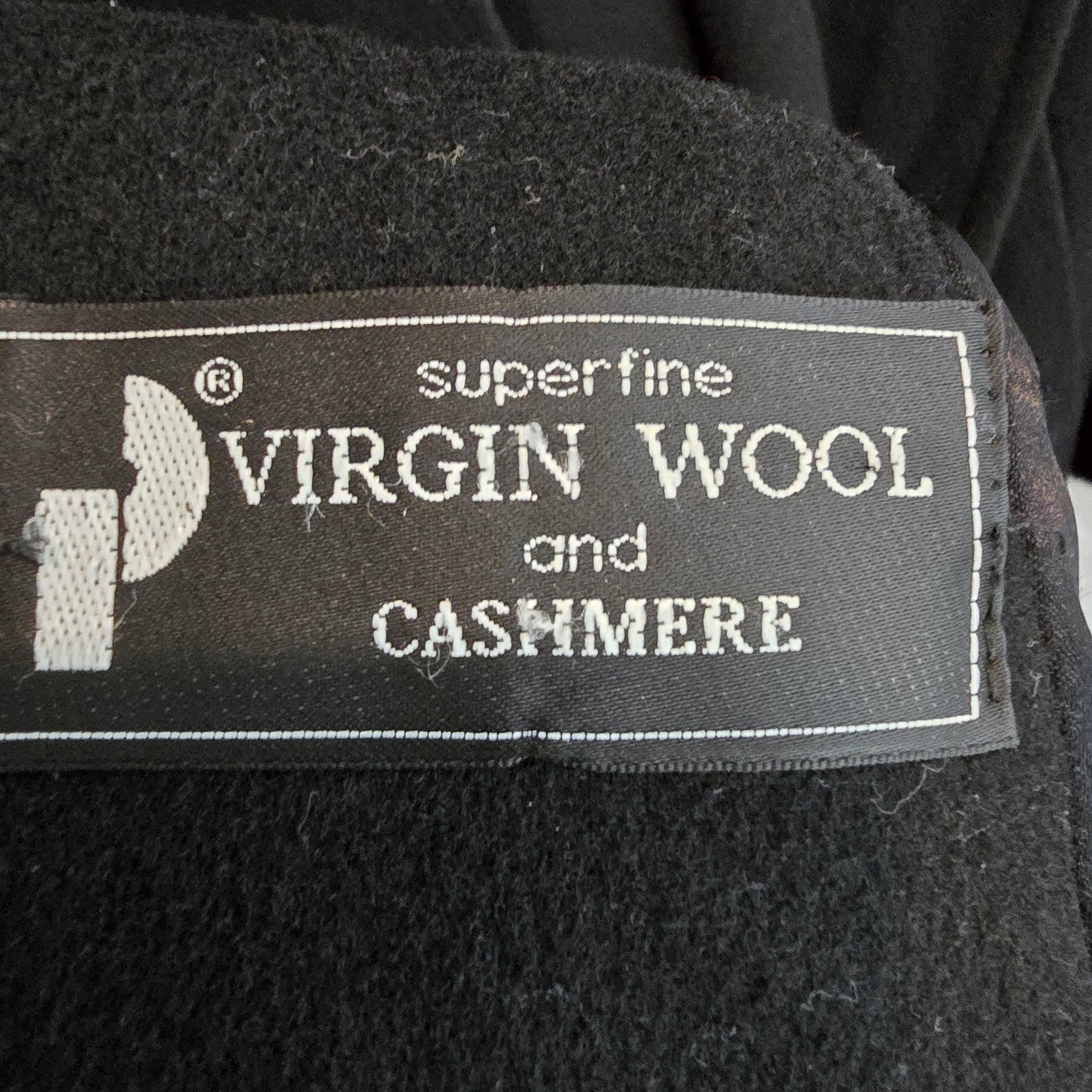Vintage Black Wool & Cashmere Long Hooded Jacket Size L/XL