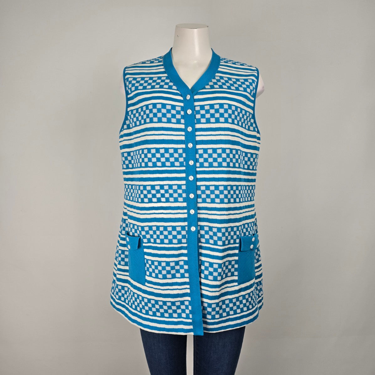 Vintage Blue Knit Button Up Vest Size L/XL