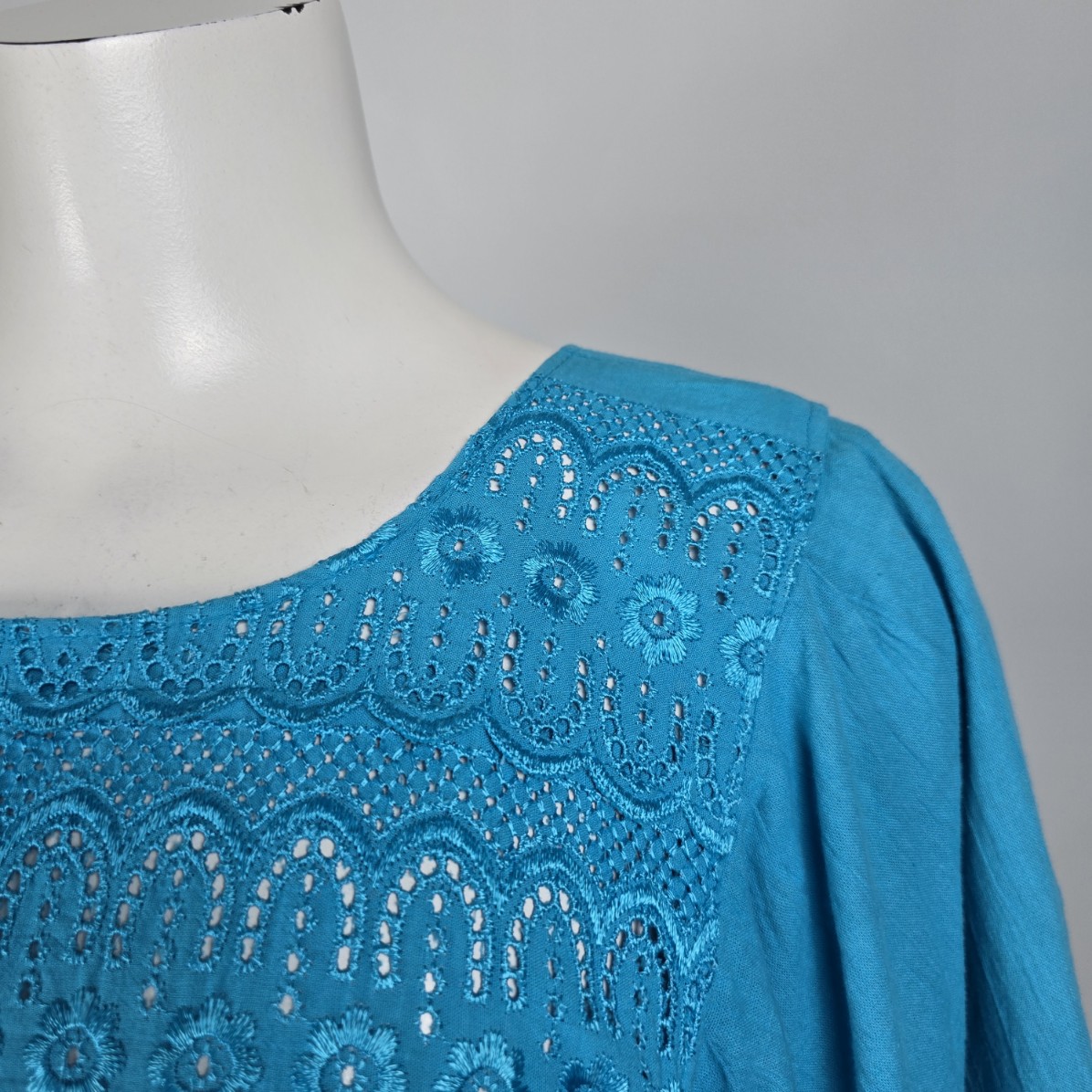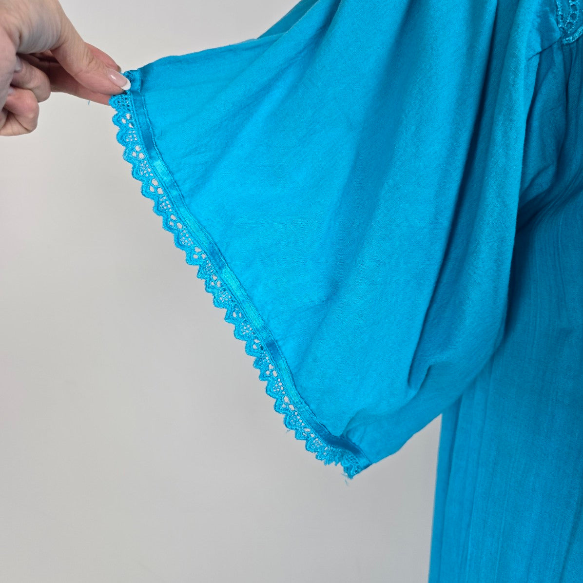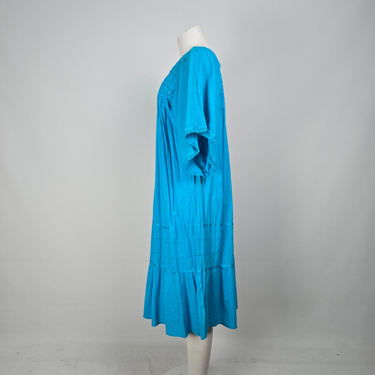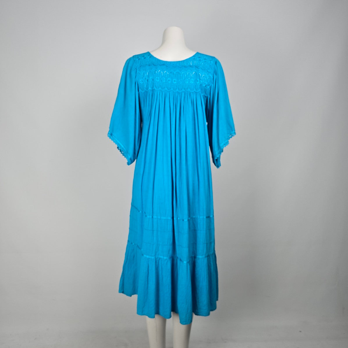 Vintage Blue Lace Detail Flare Sleeve Midi Dress Size L/XL
