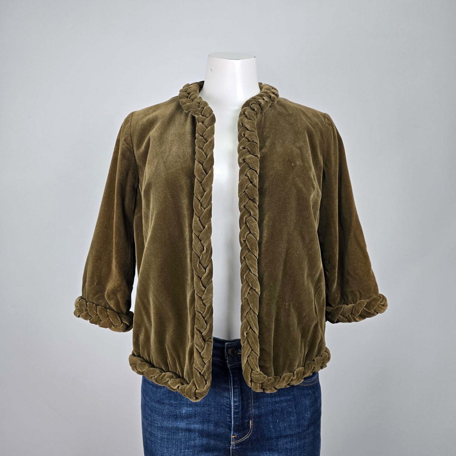 Vintage Bonwit Teller Nan Herzlinger Green Velvet Blazer Size S/M